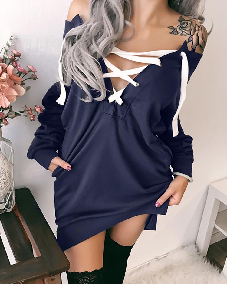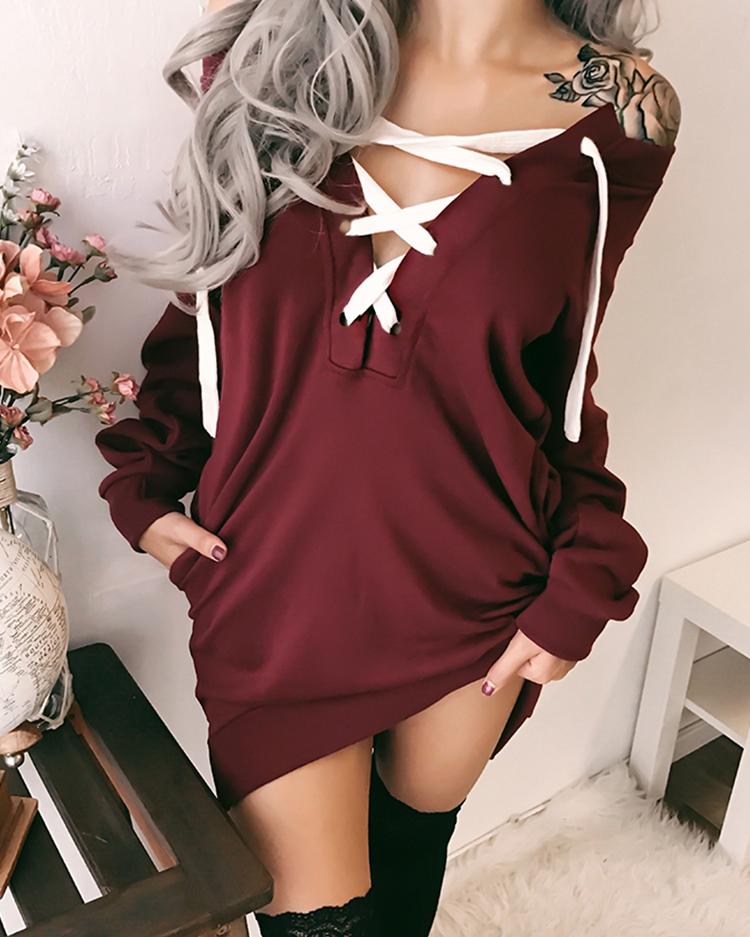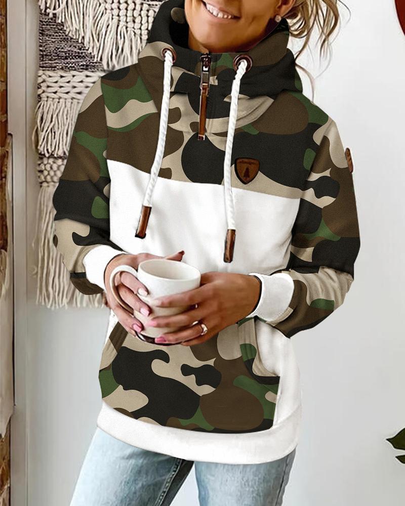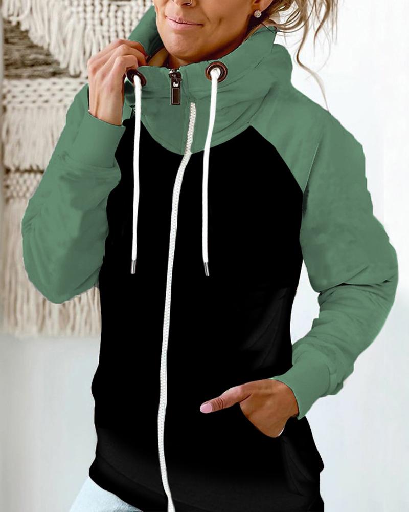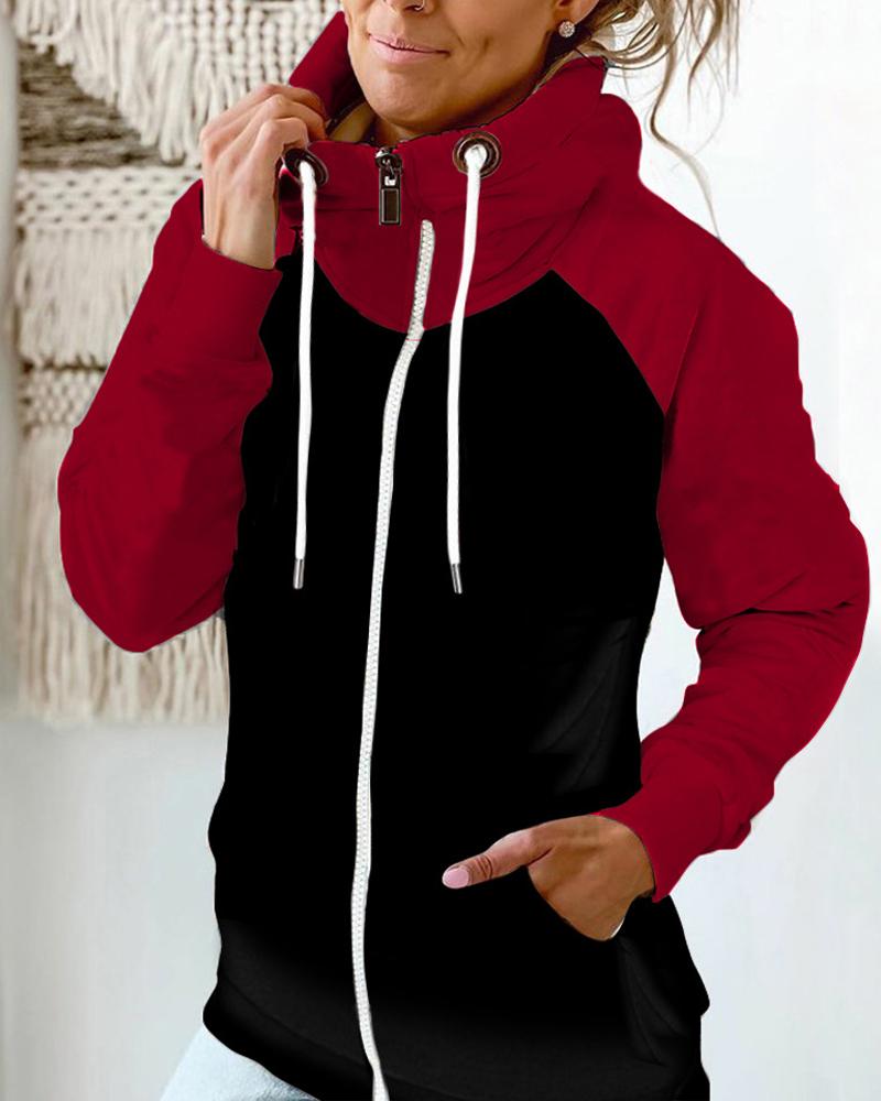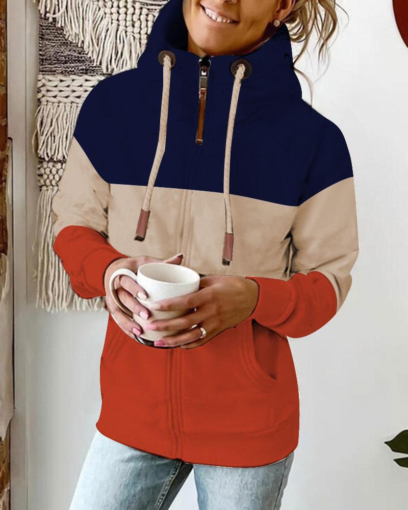 Colorblock Long Sleeve Zip Up Drawstring Sweatshirt |