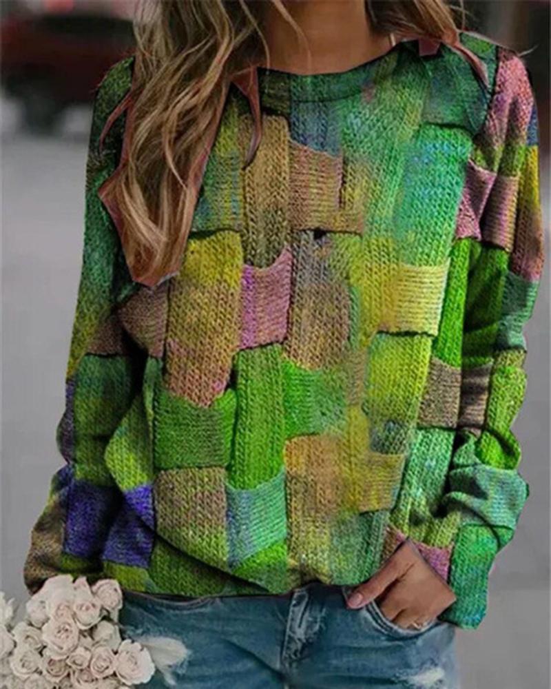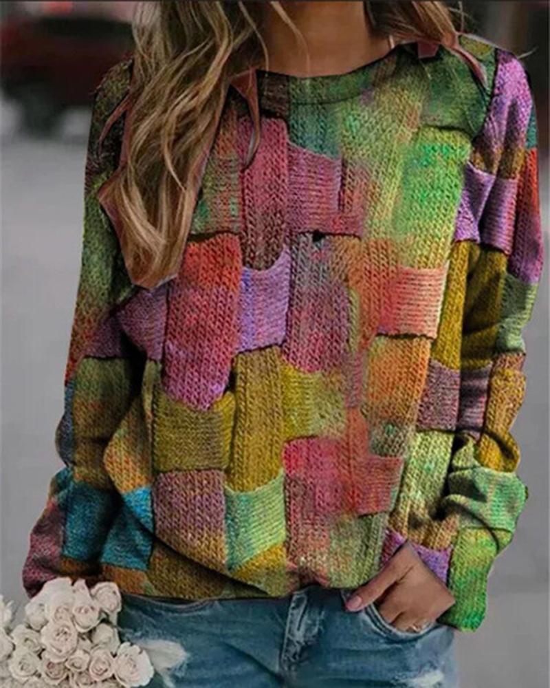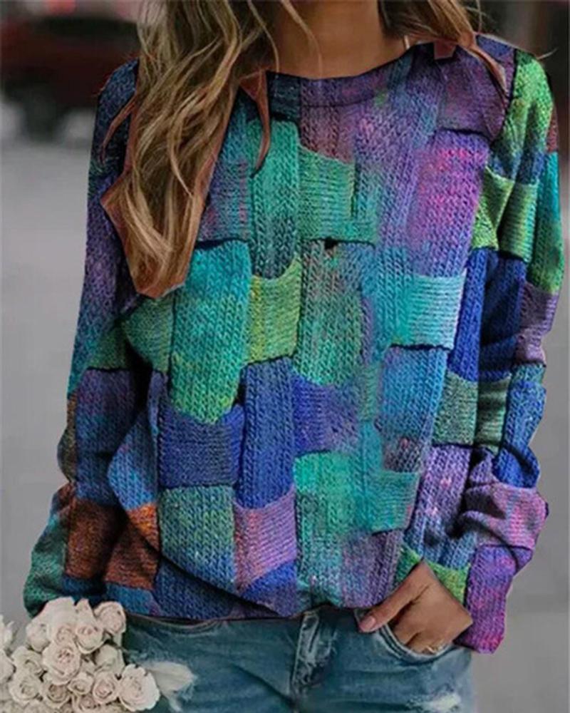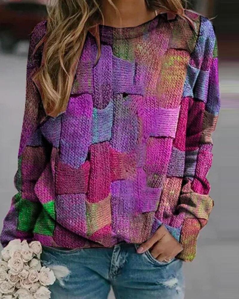 Allover Print Round Neck Long Sleeve Sweatshirt |