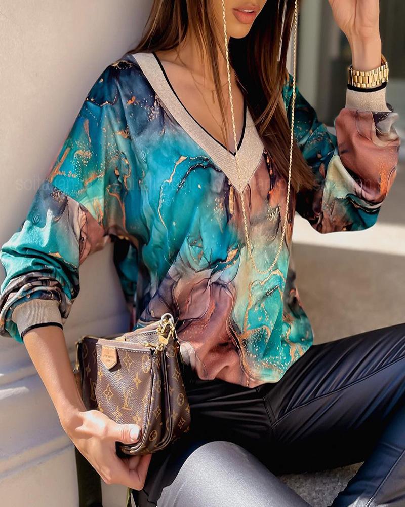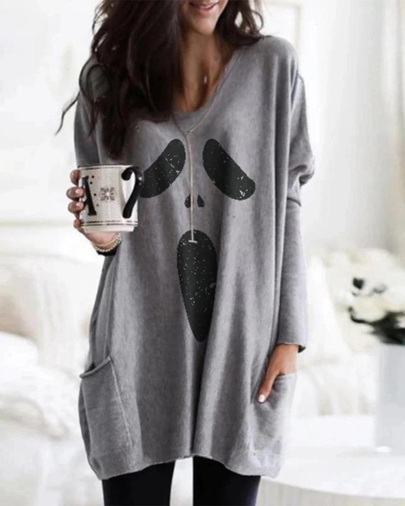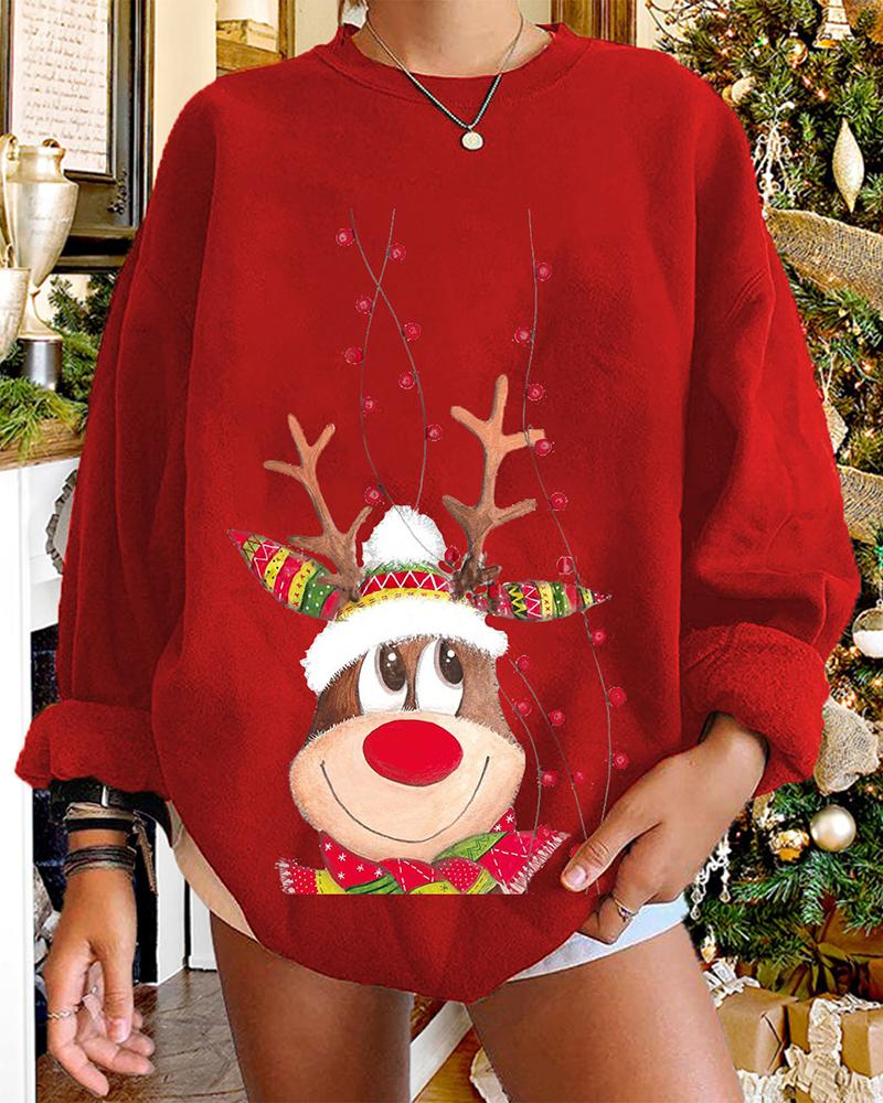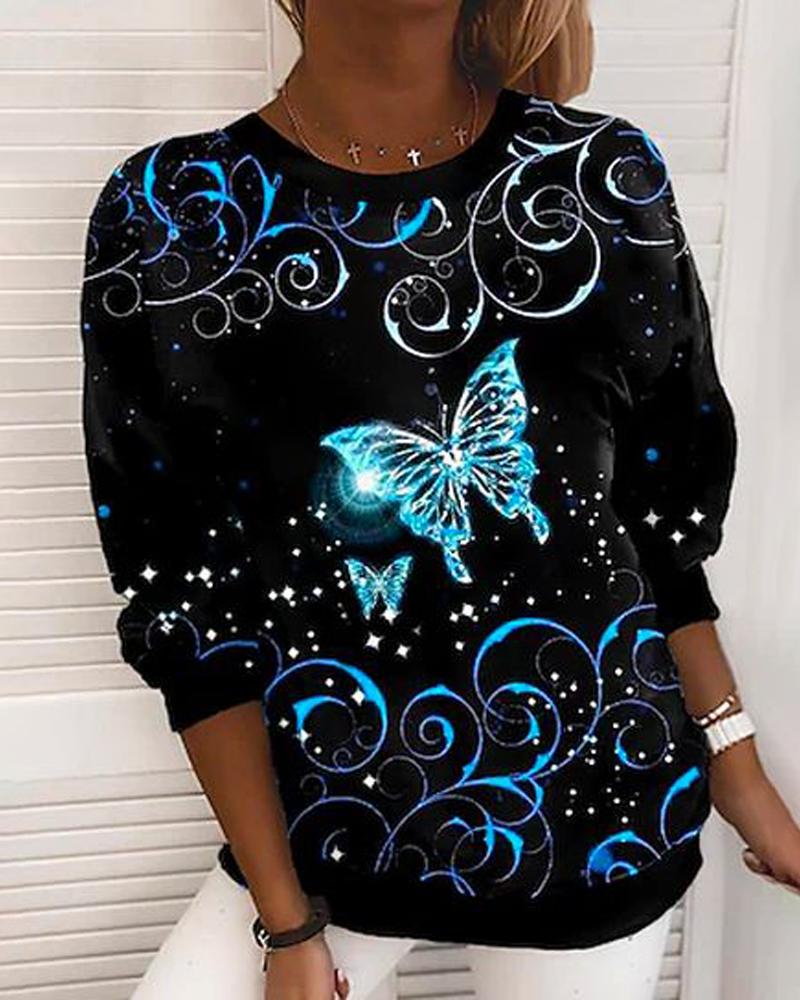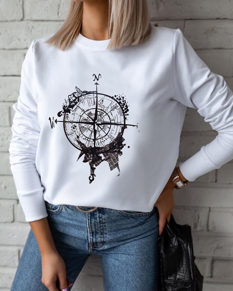 Allover Print Round Neck Long Sleeve Sweatshirt |