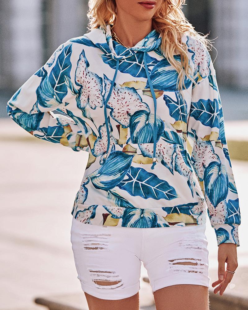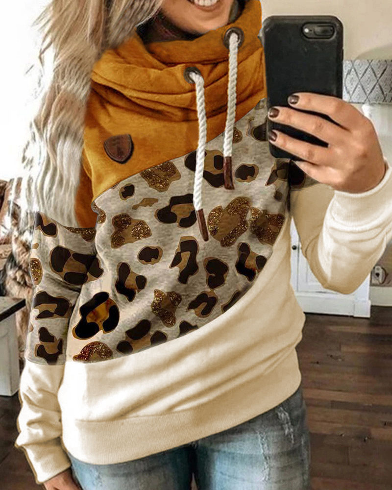 Lantern Sleeve Colorblock Leopard Print Hooded Top |