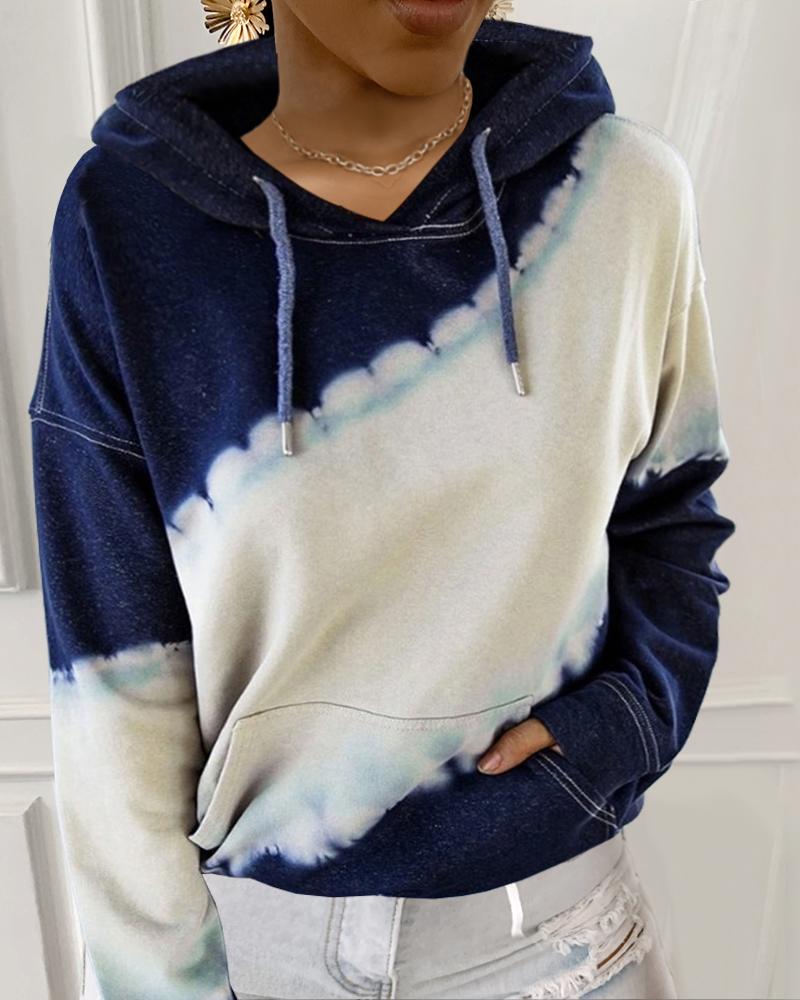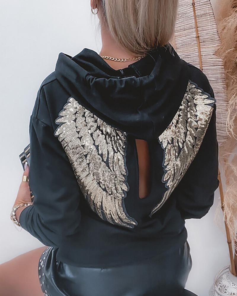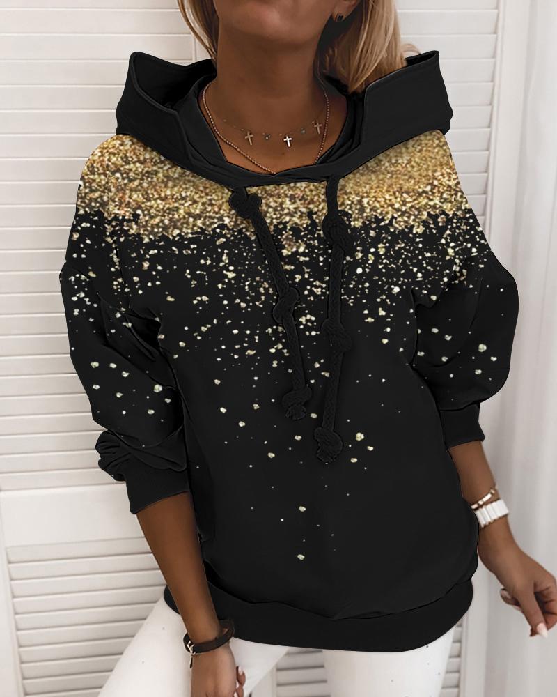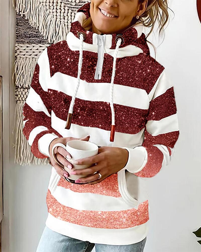 Glitter Striped Ombre Pocket Design Hooded Sweatshirt |
