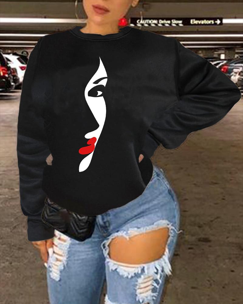 Plus Size Abstract Figure Print Long Sleeve Sweatshirt |