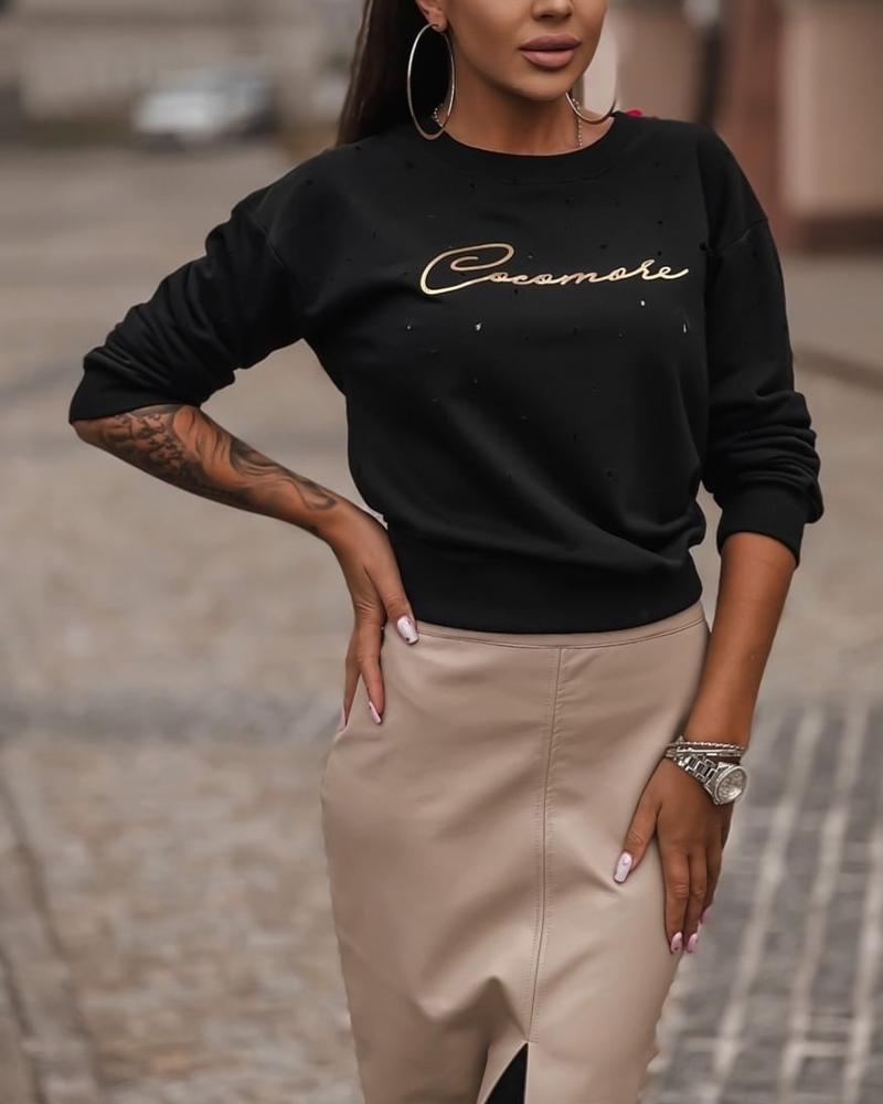 Rhinestone Letter Pattern Long Sleeve Sweatshirt |