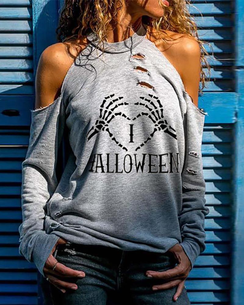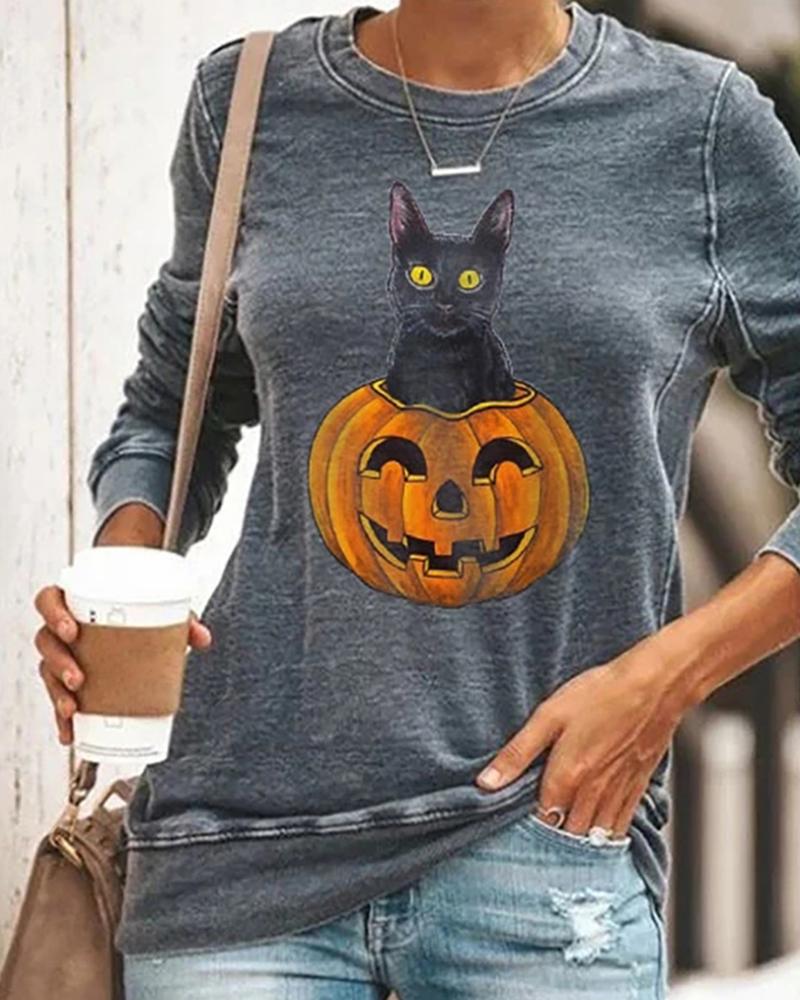 Plus Size Halloween Graphic Print Long Sleeve Top |