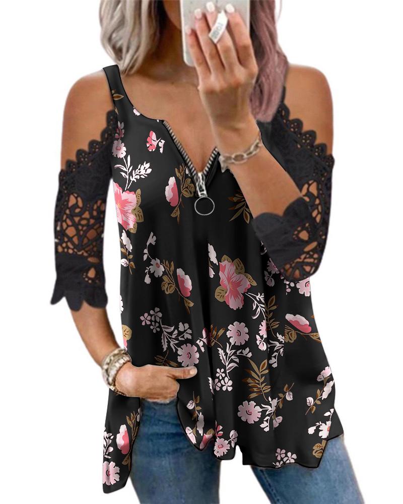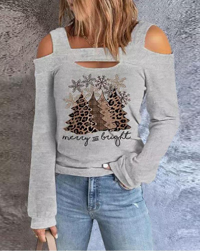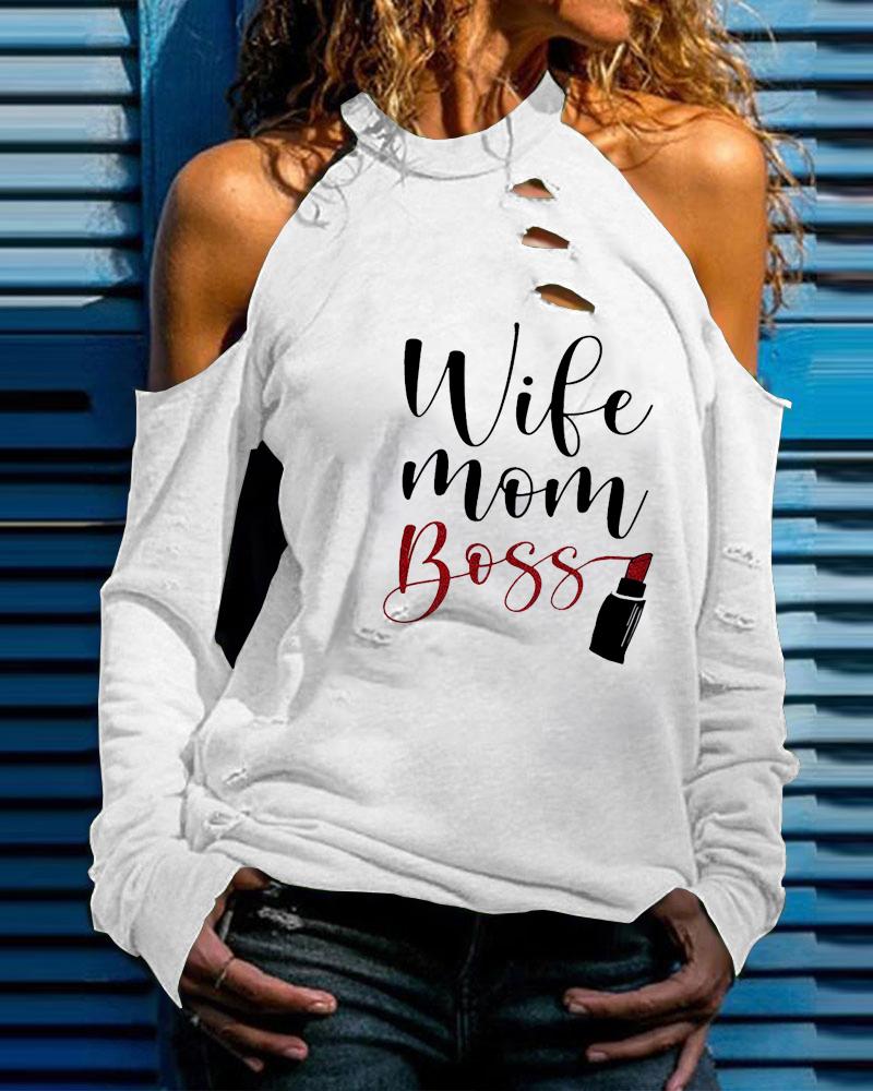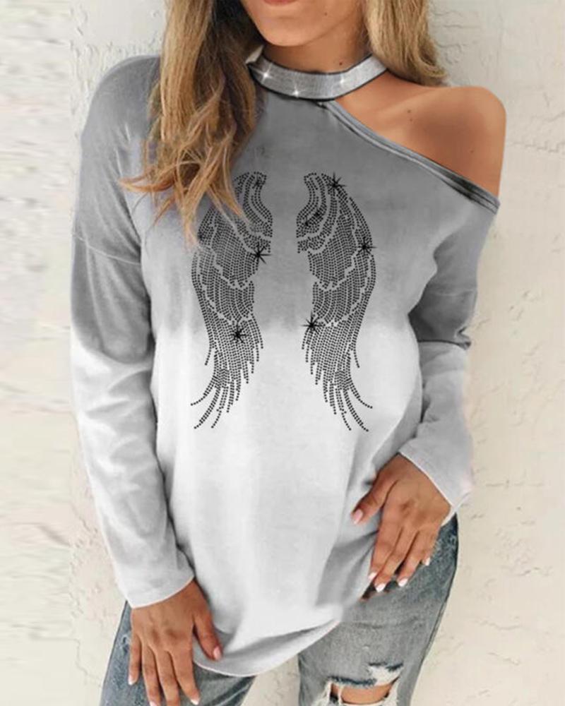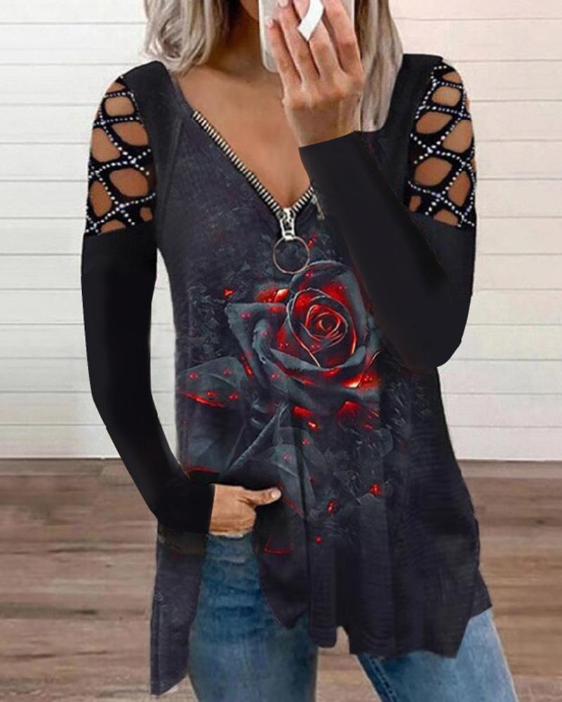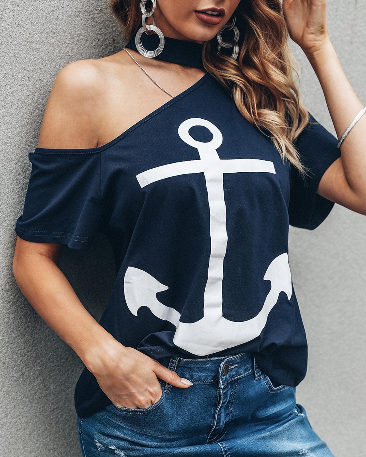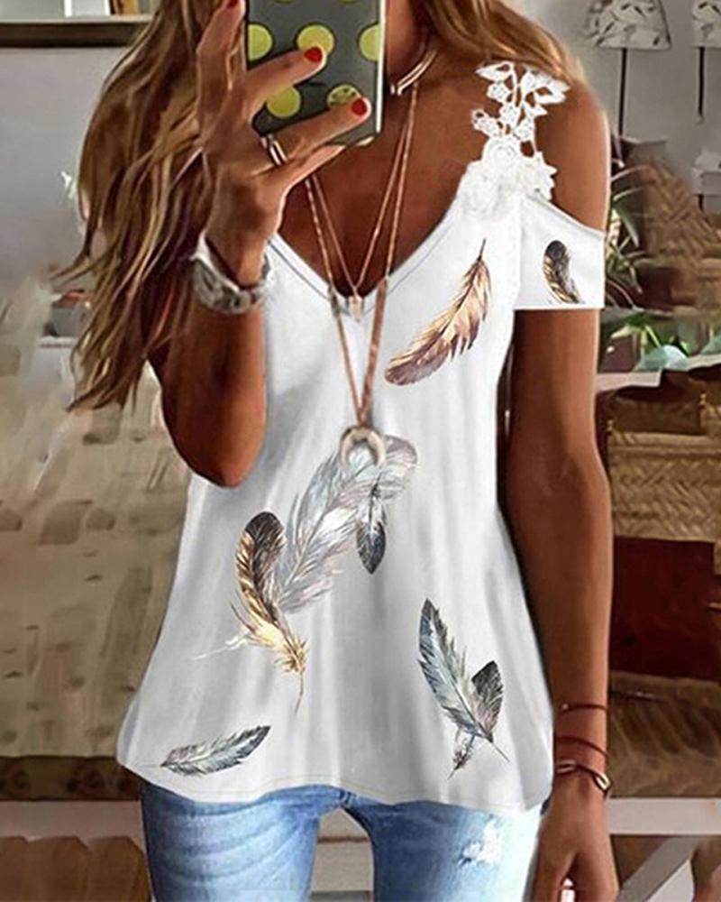 Figure Print Hollow-out Cold Shoulder Top |