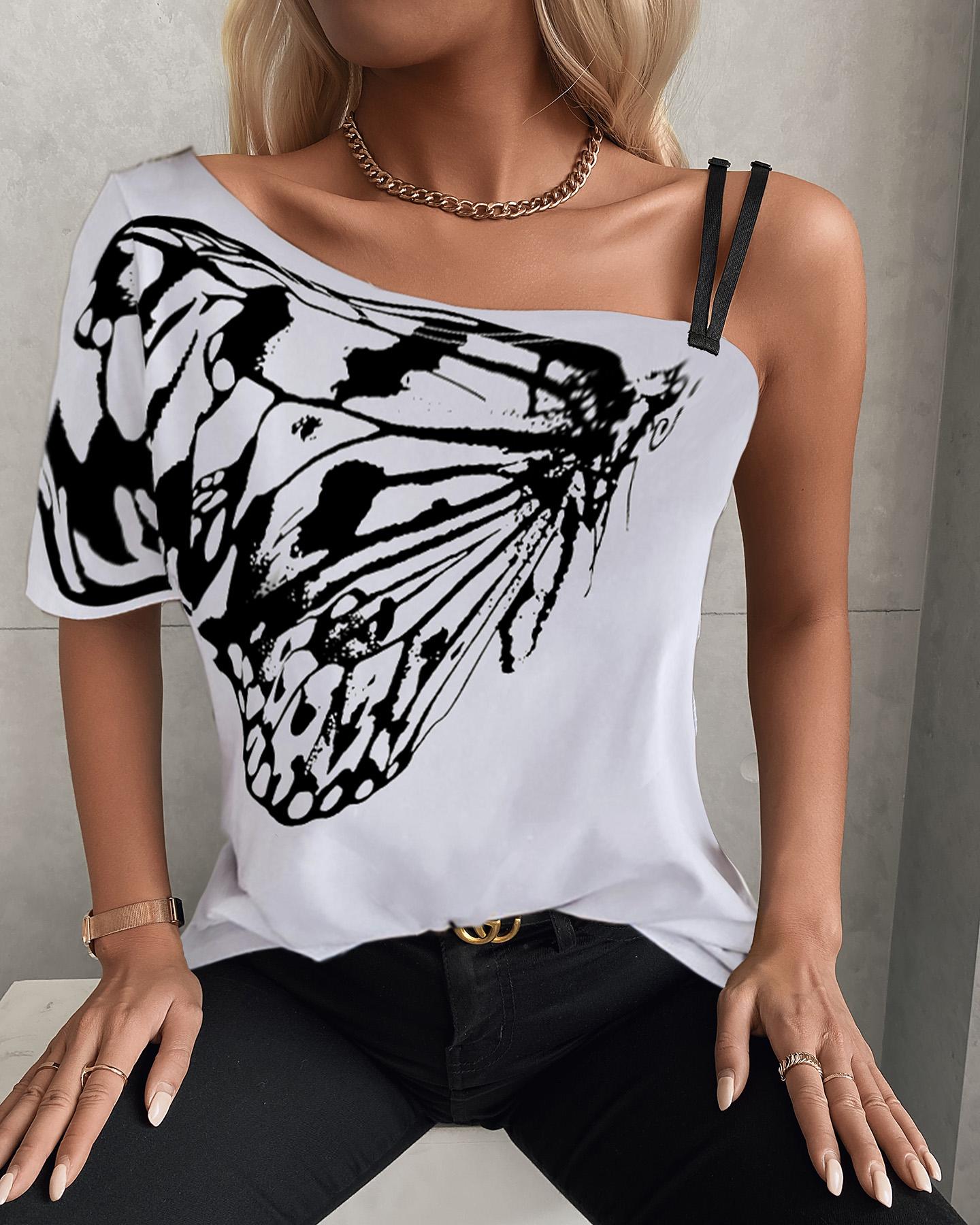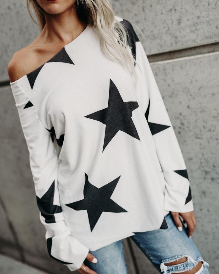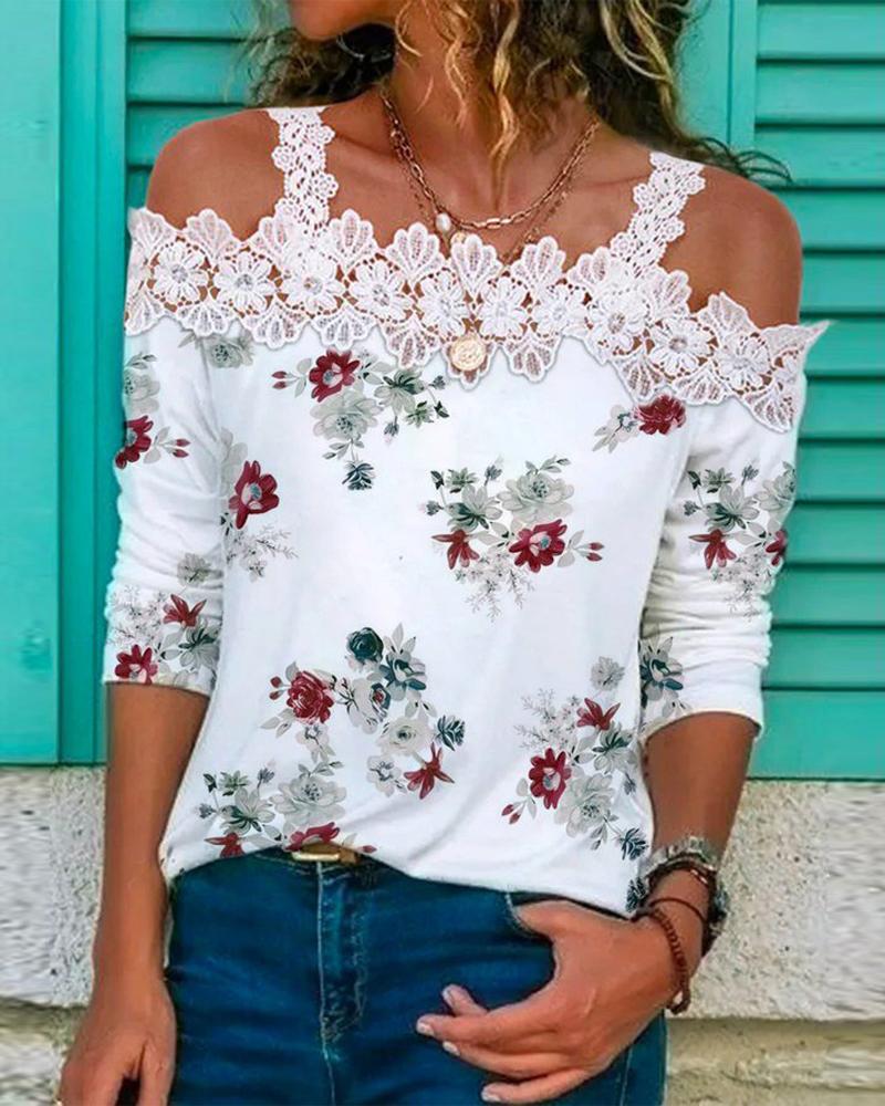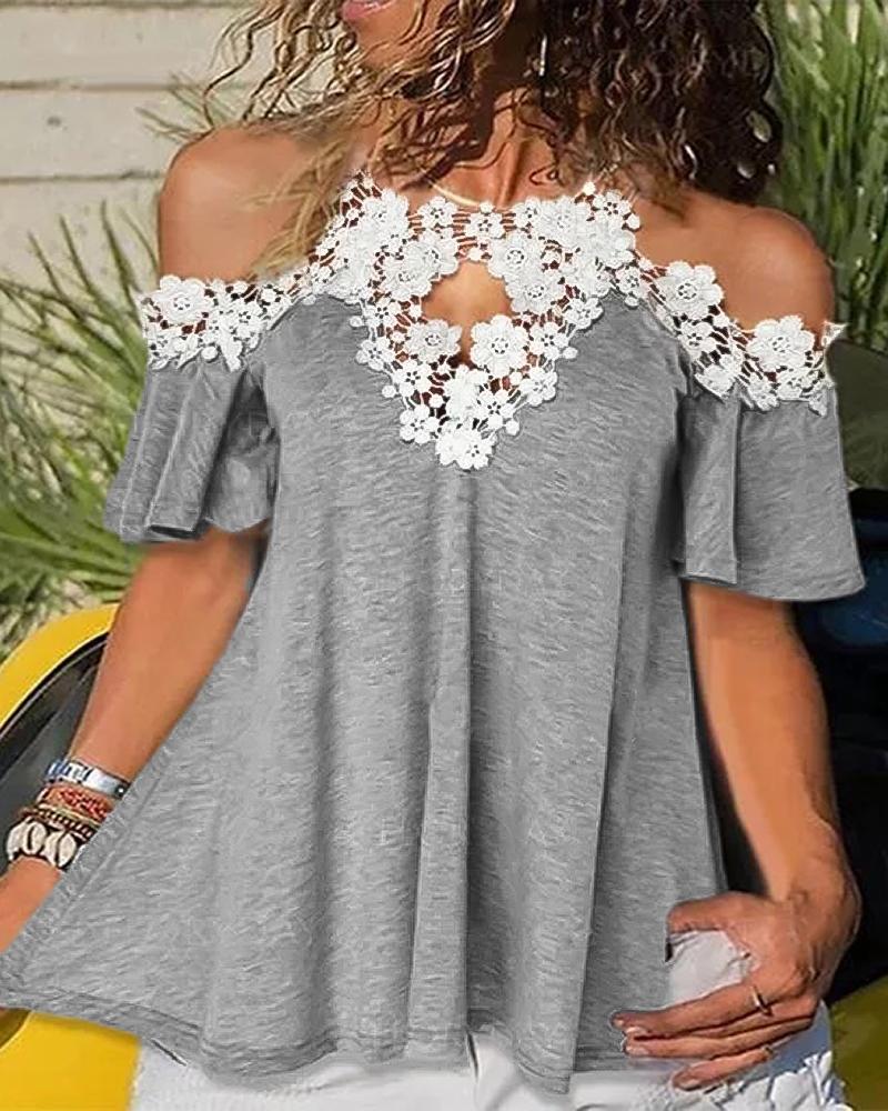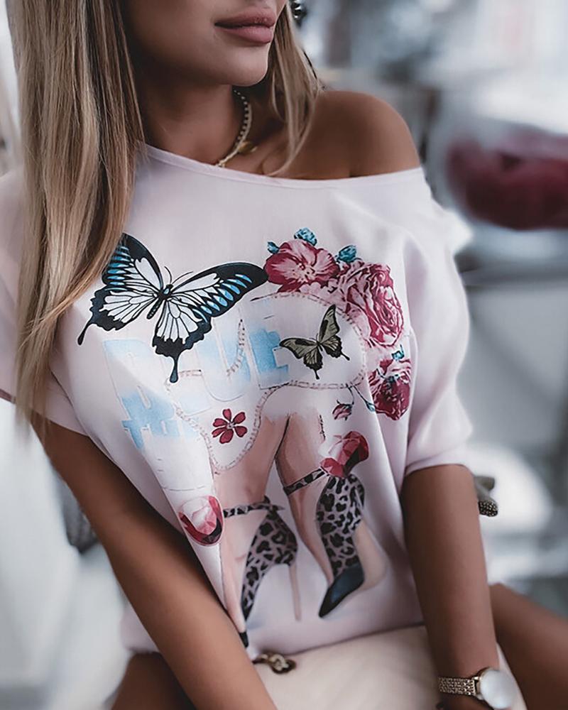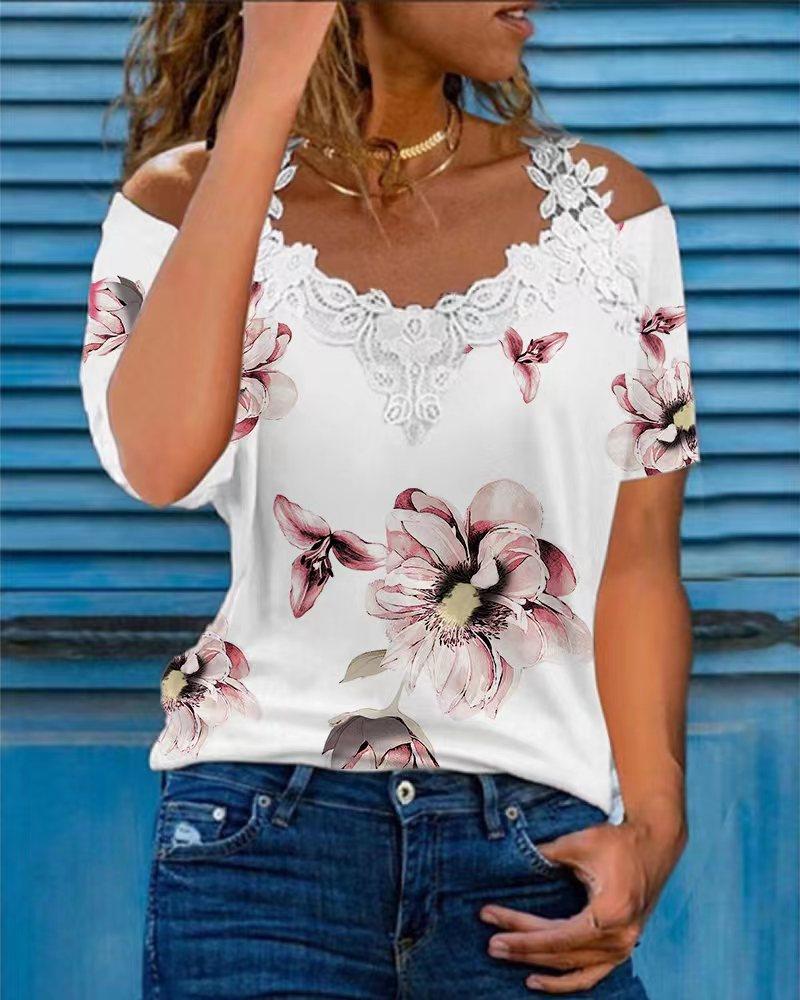 Figure Print Hollow-out Cold Shoulder Top |