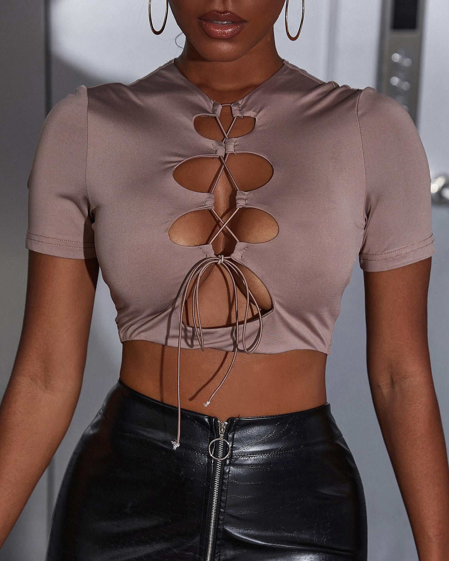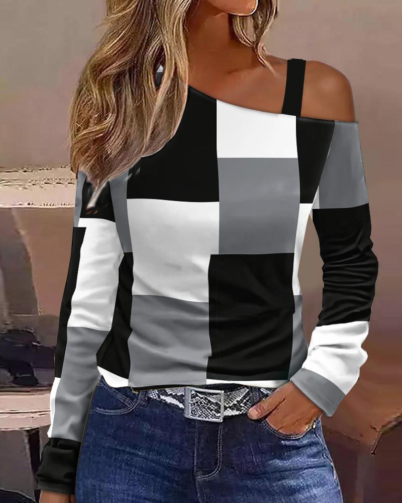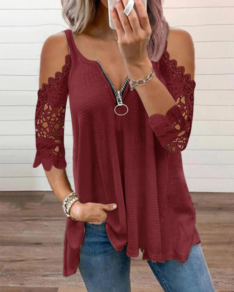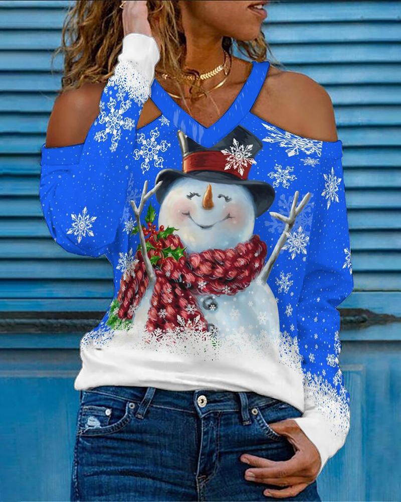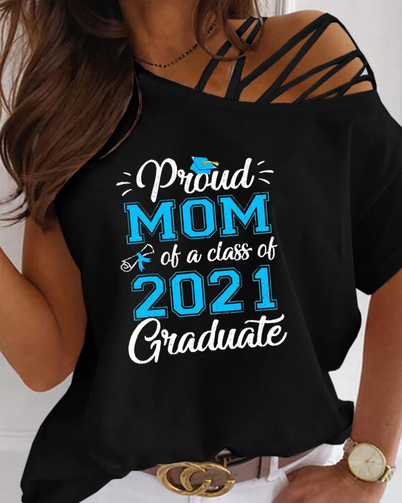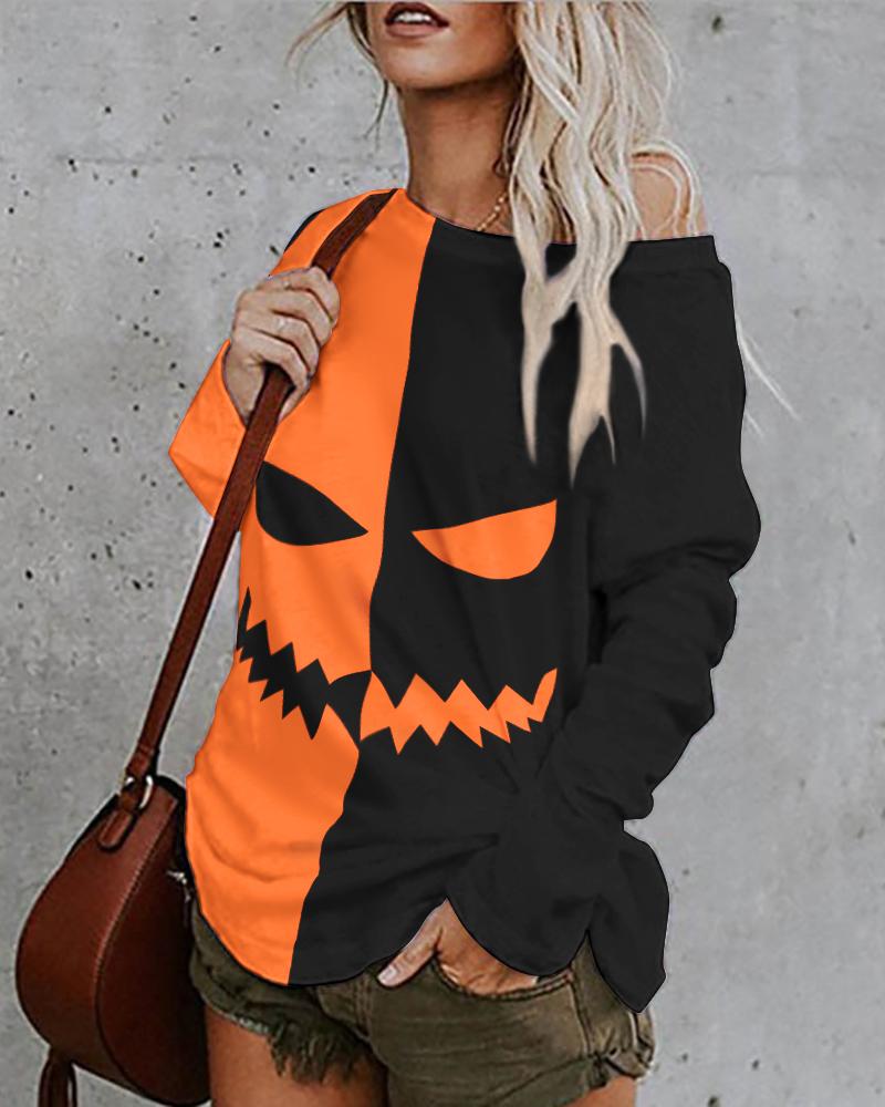 Figure Print Hollow-out Cold Shoulder Top |