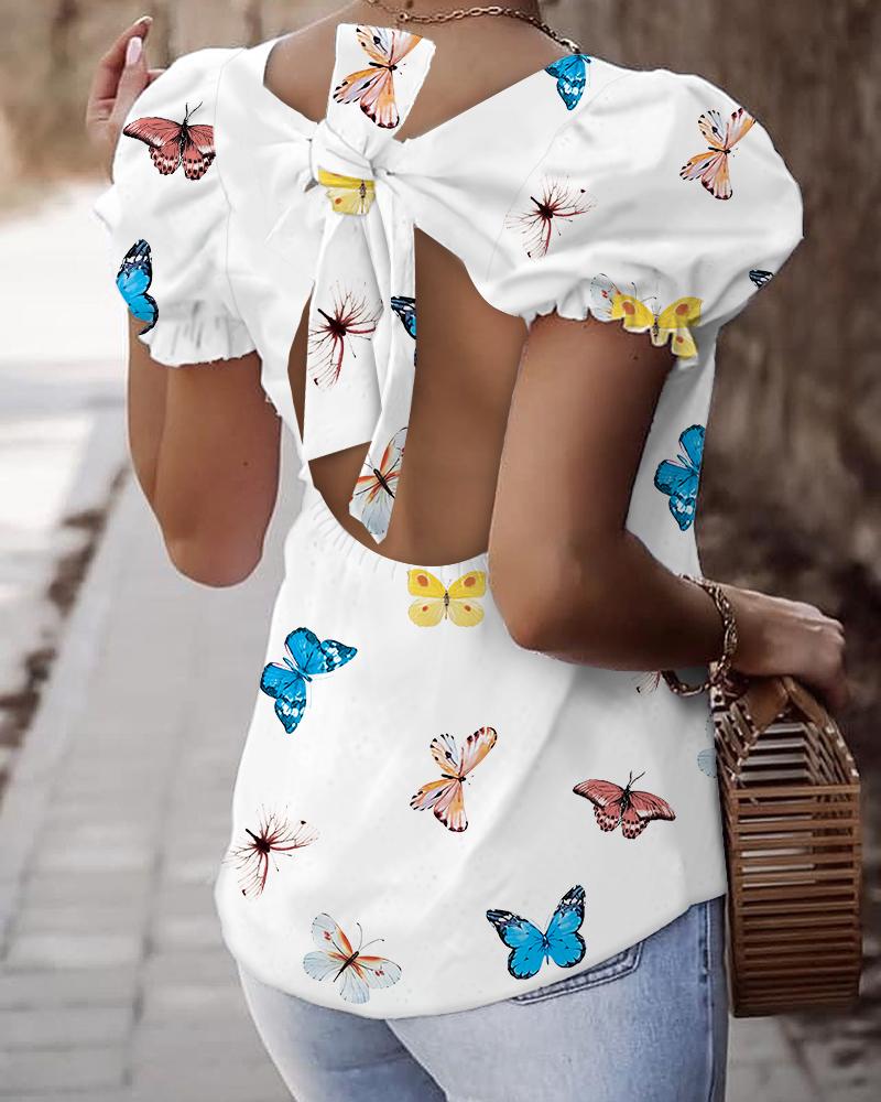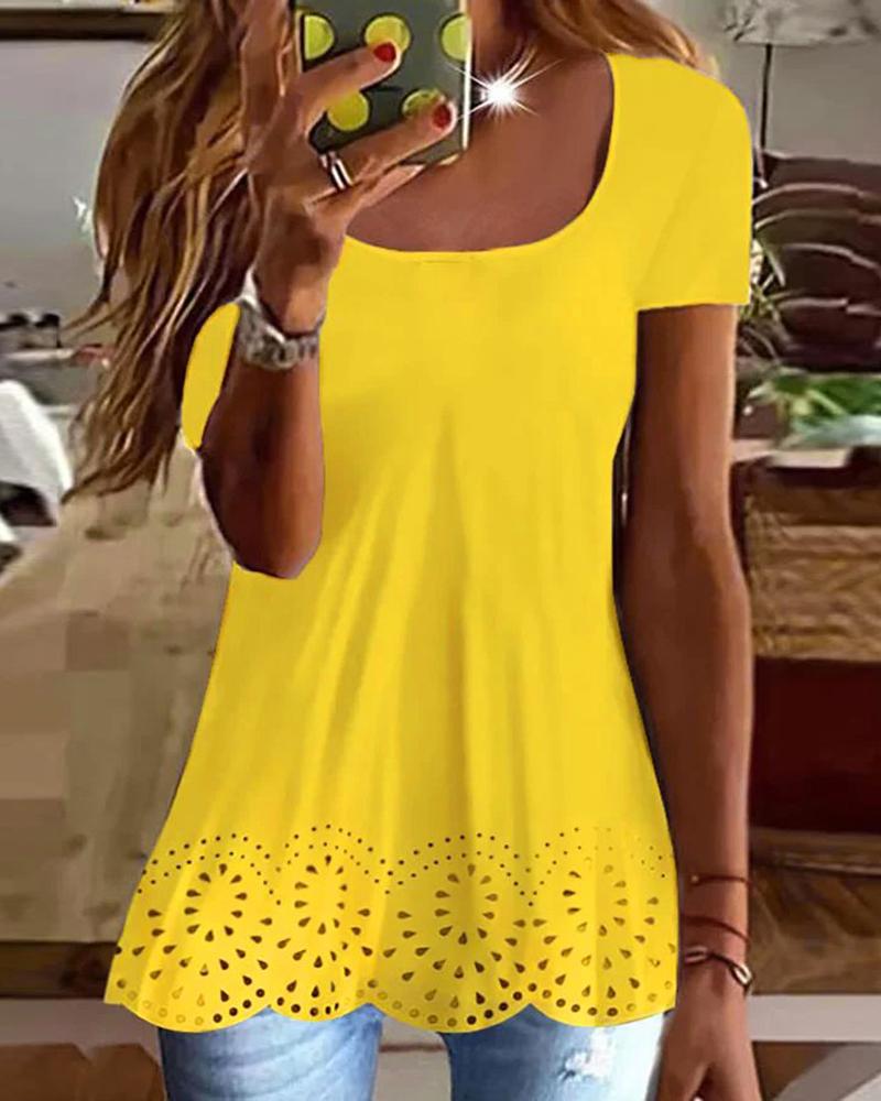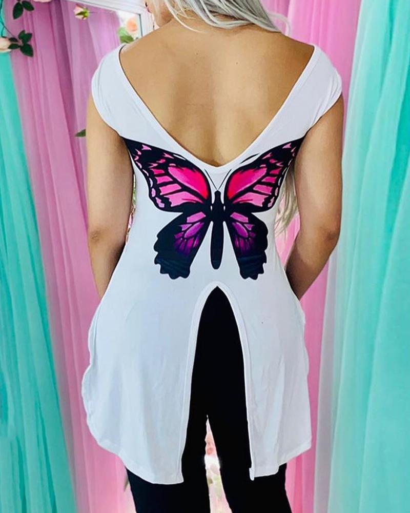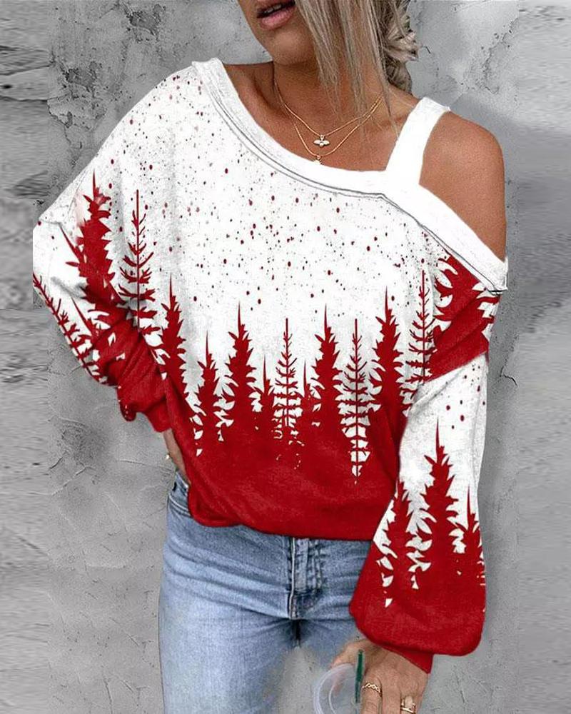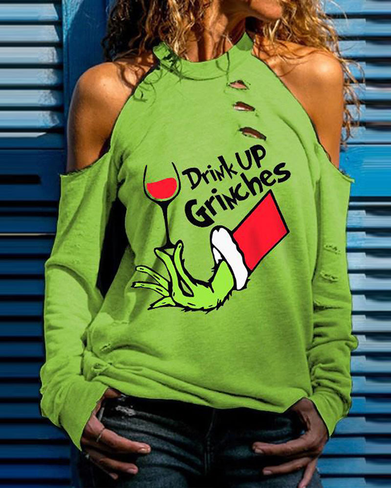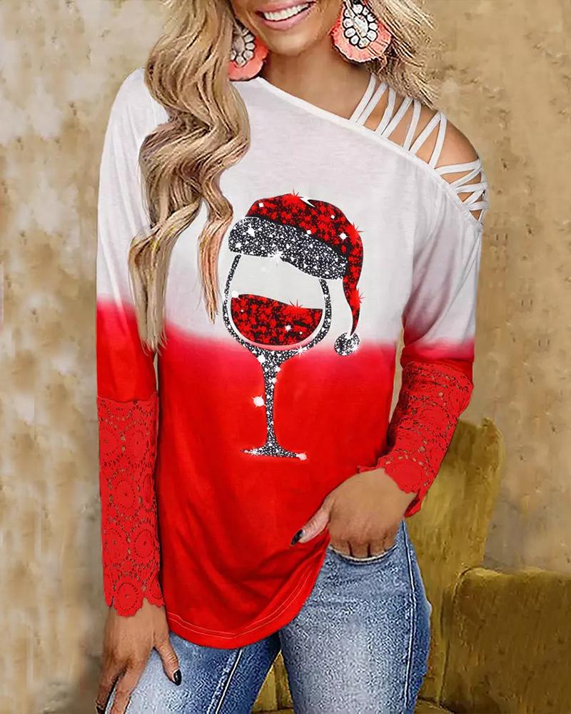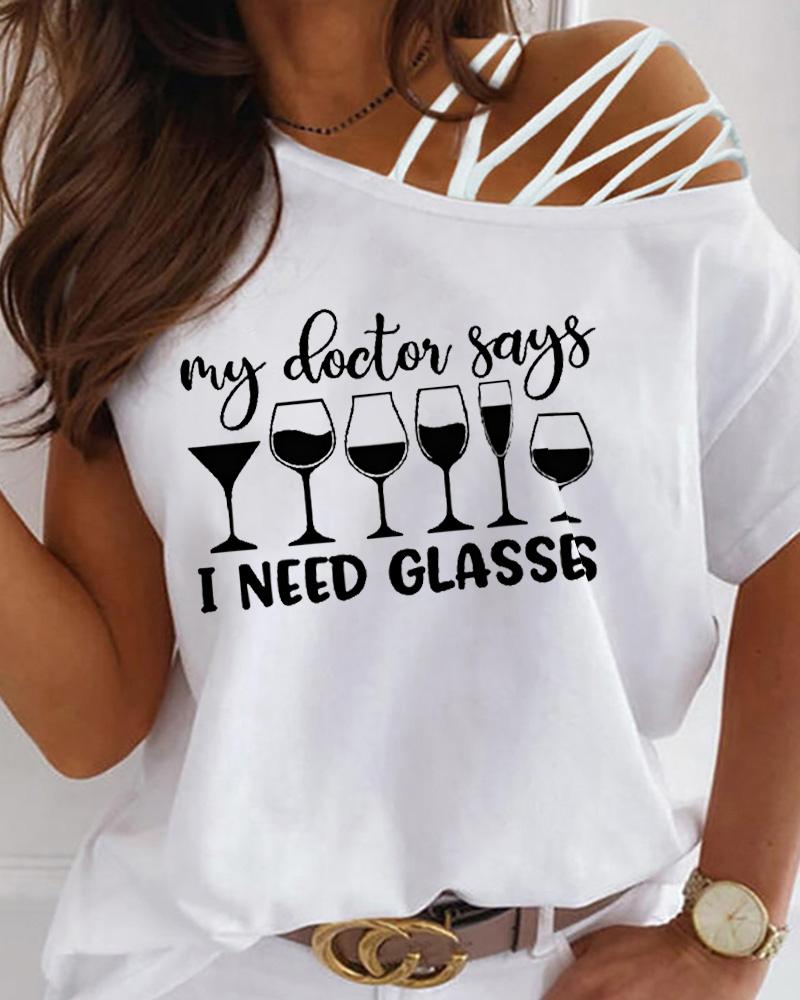 Figure Print Hollow-out Cold Shoulder Top |