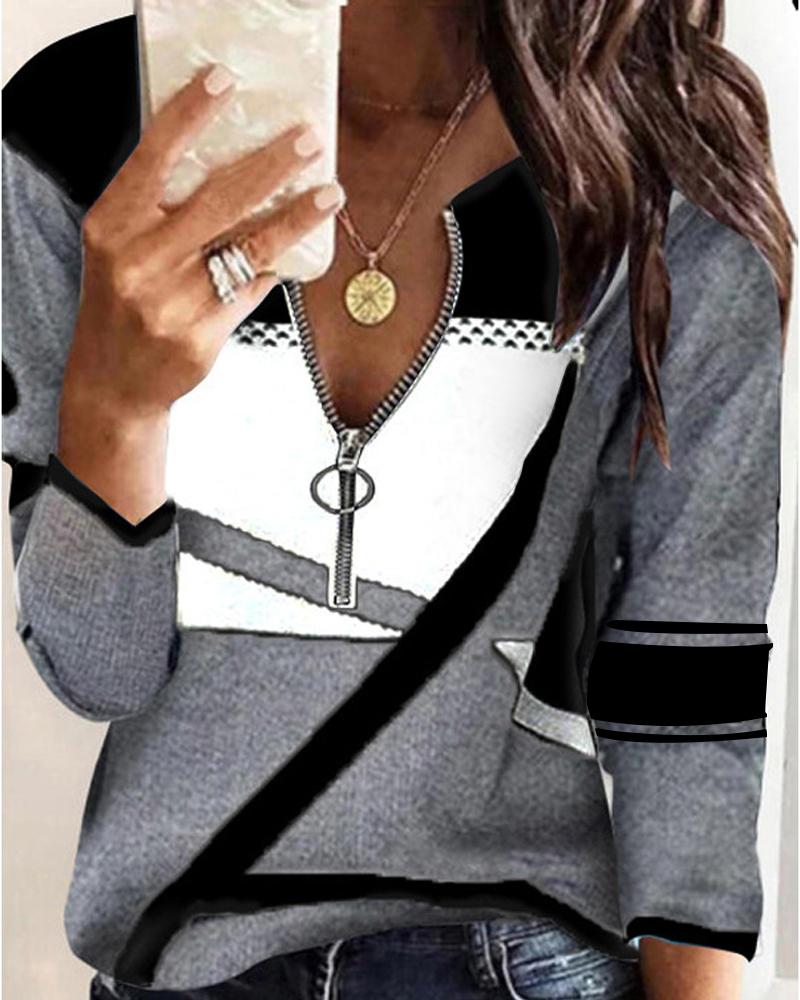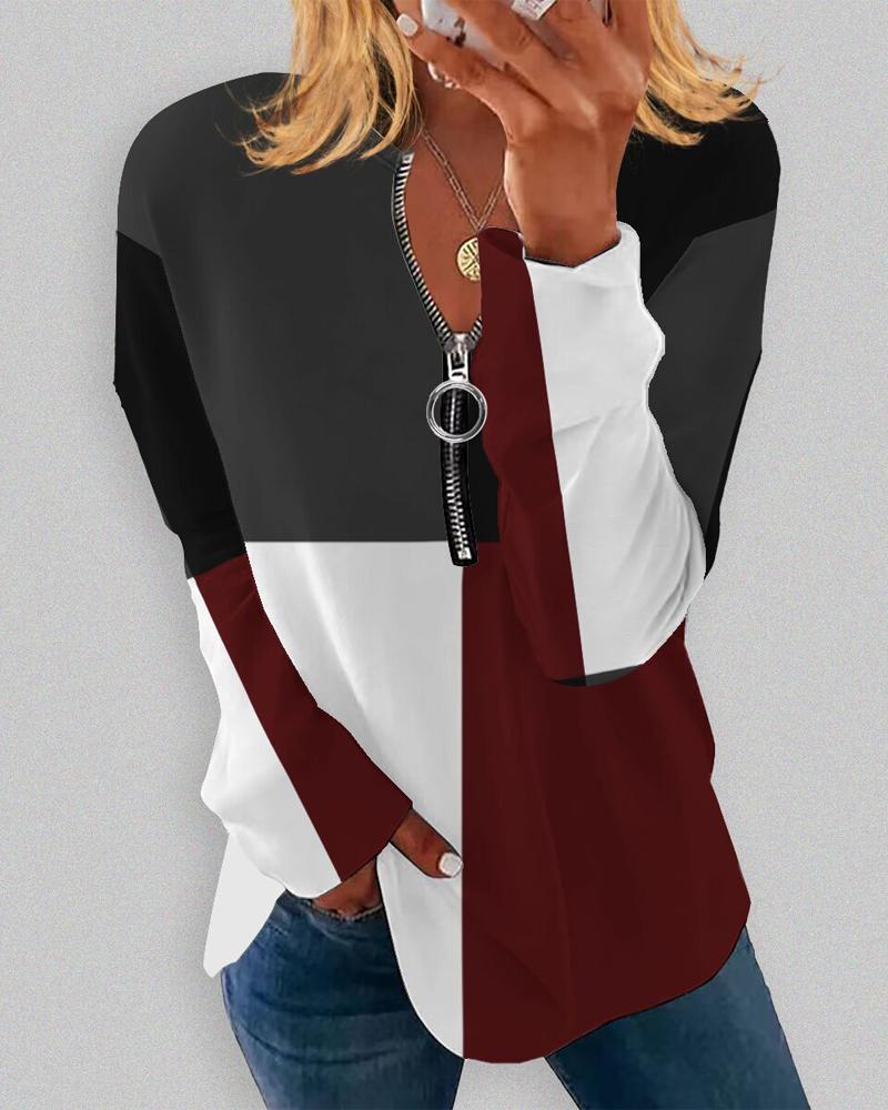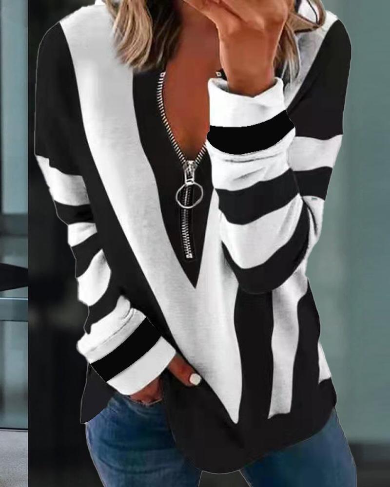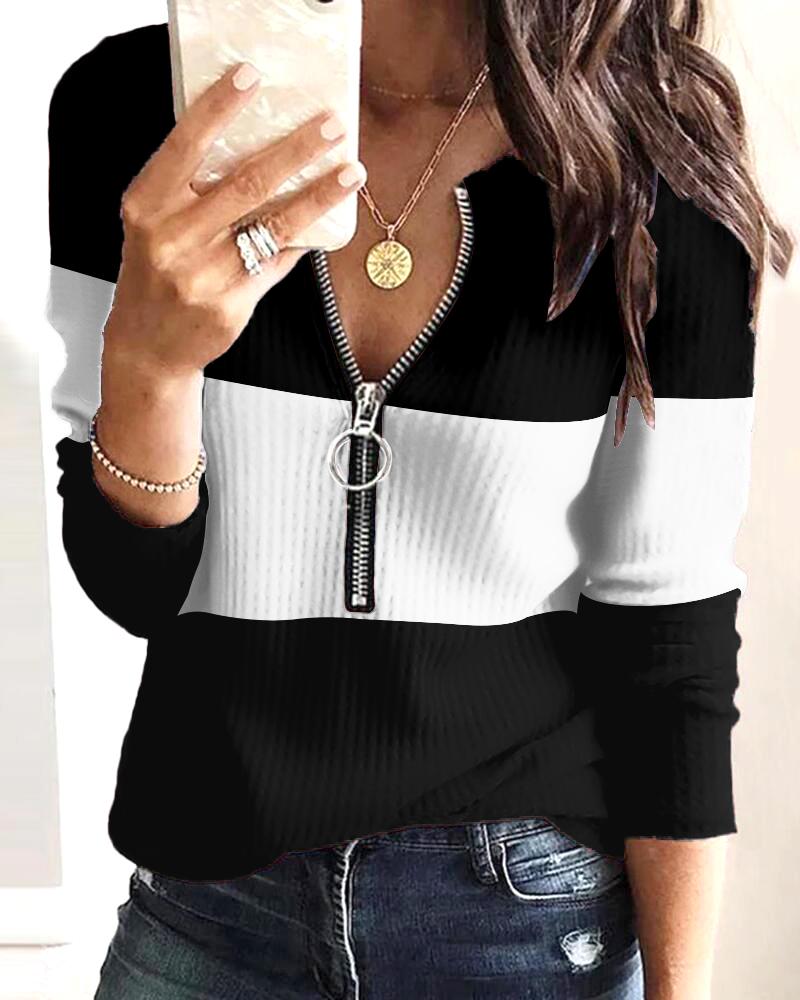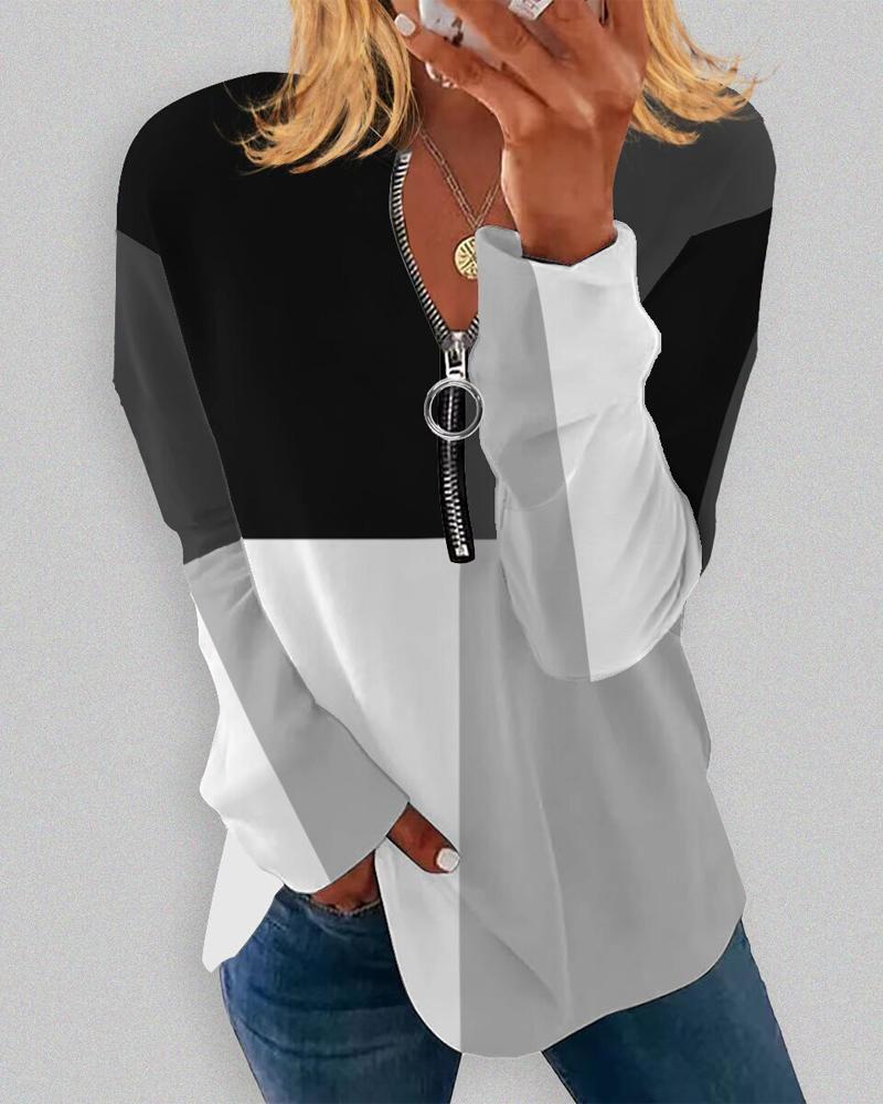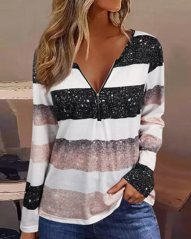 Ombre Zip Front Long Sleeve Top |