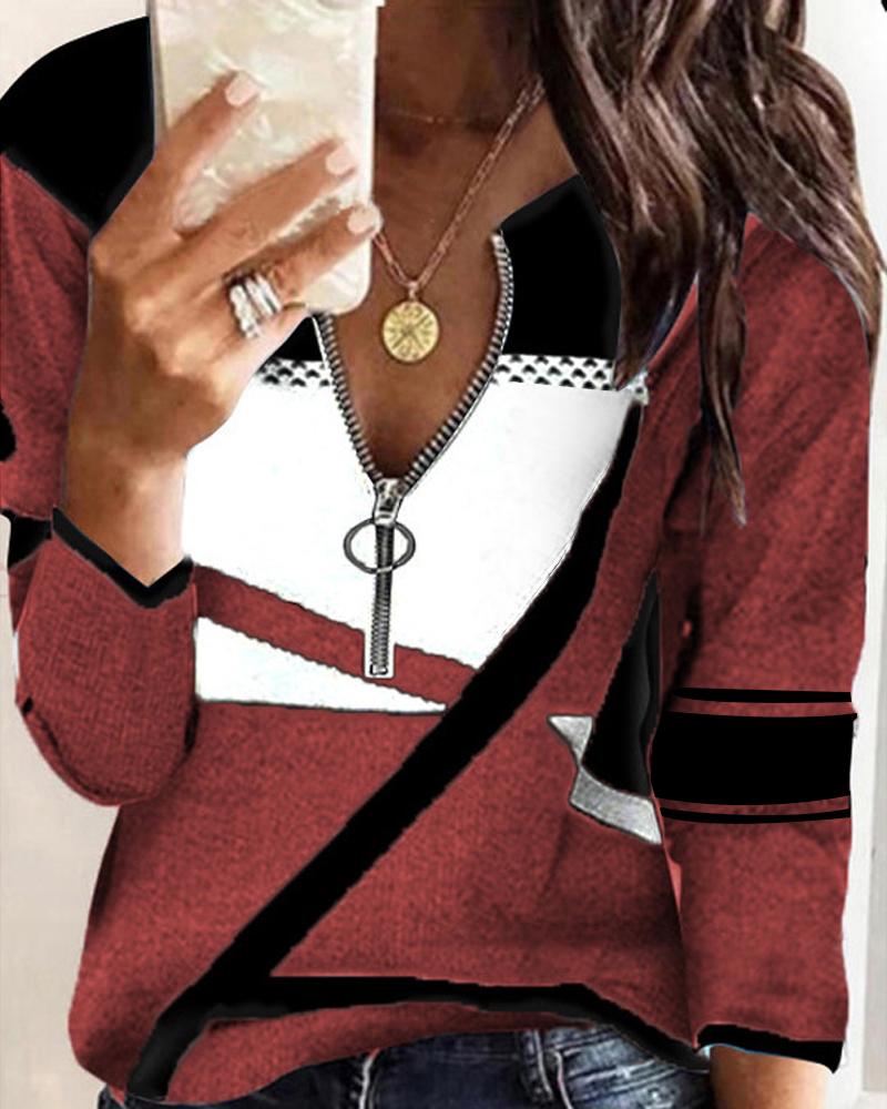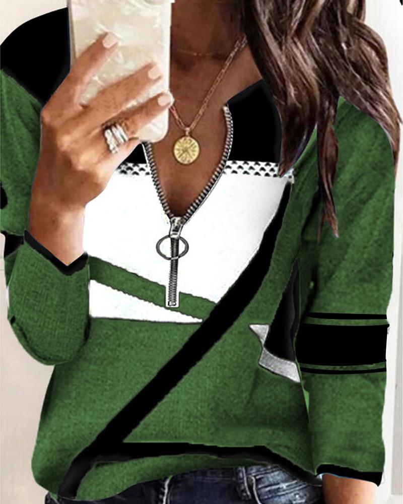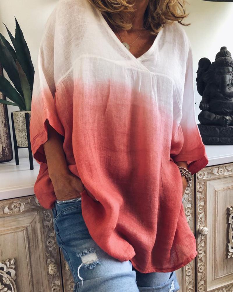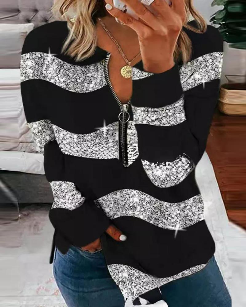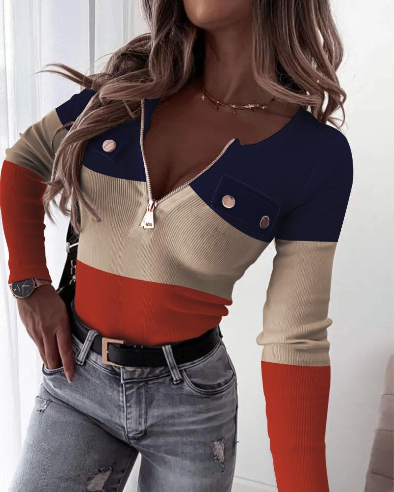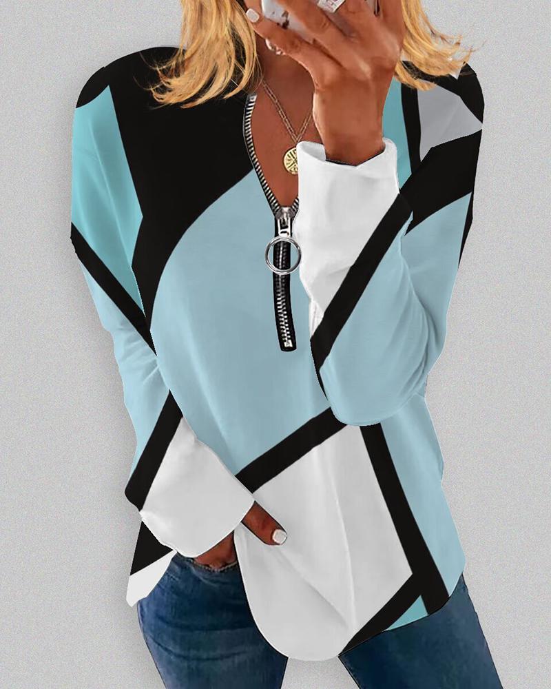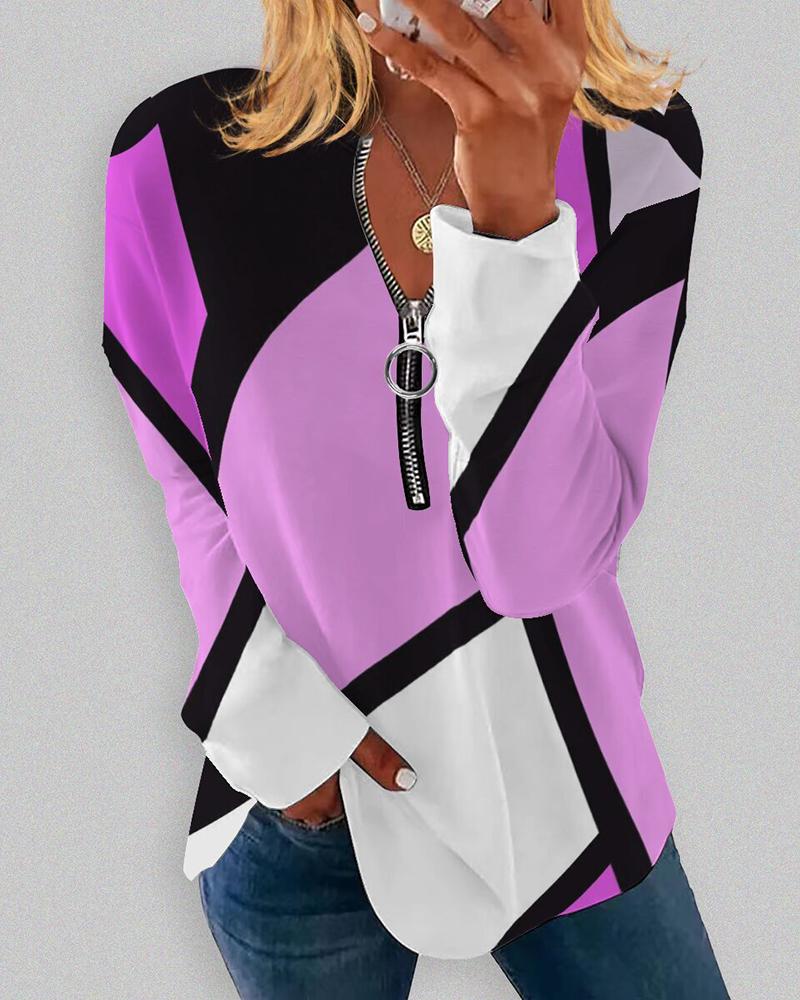 Ombre Zip Front Long Sleeve Top |