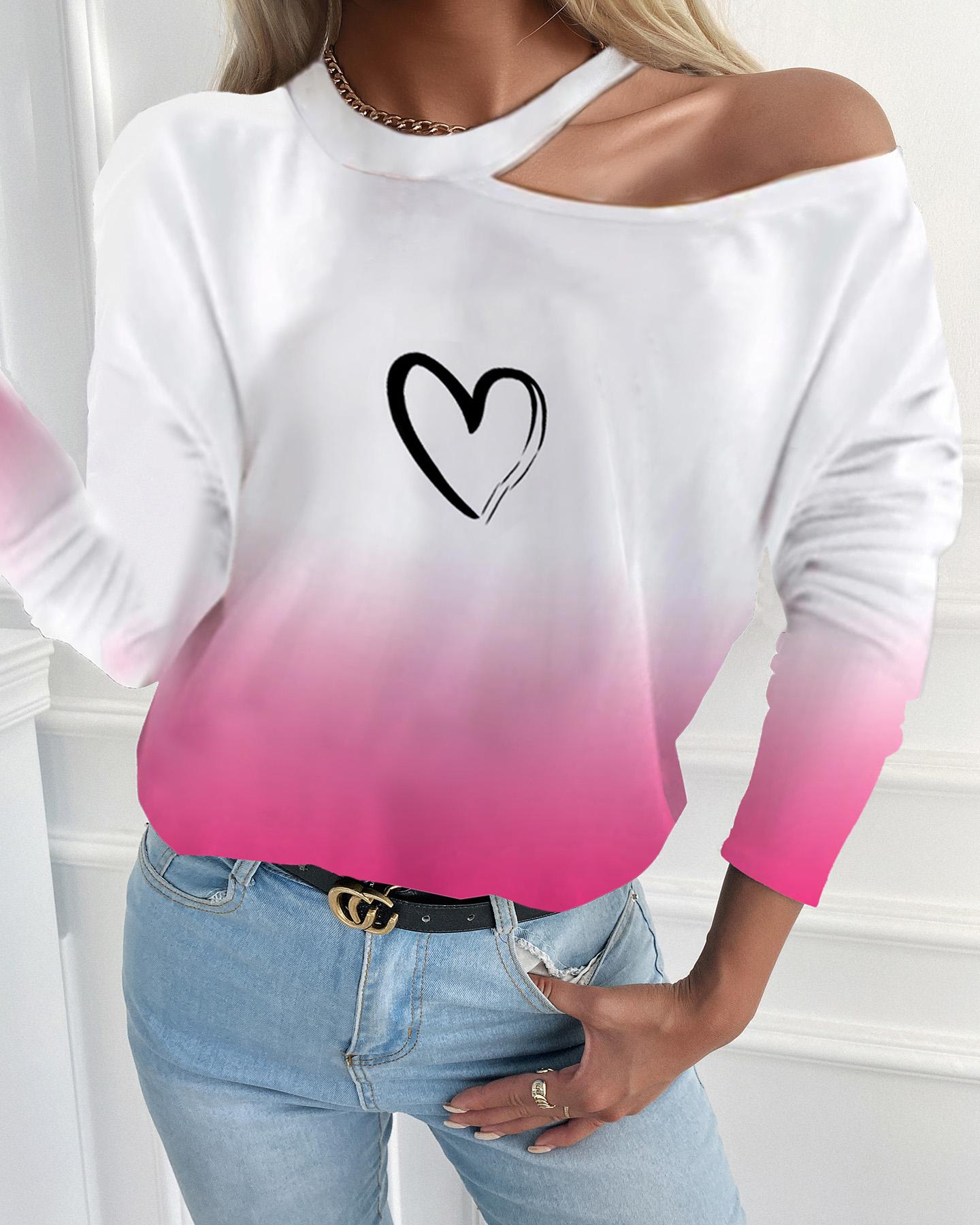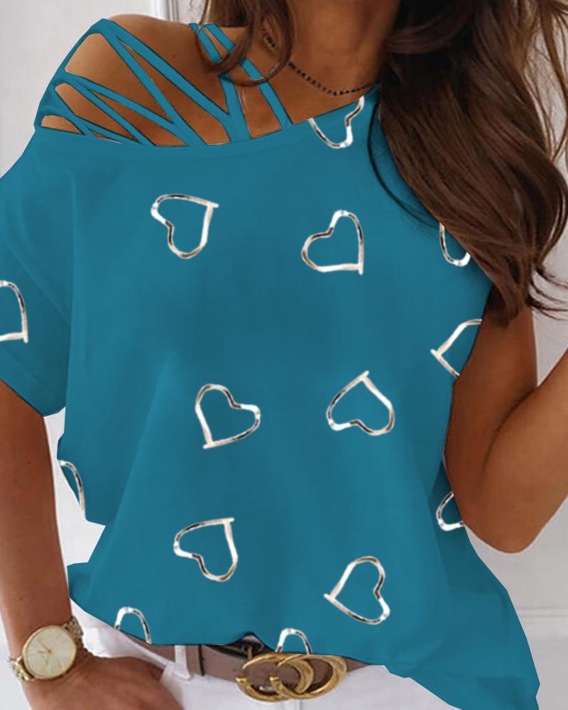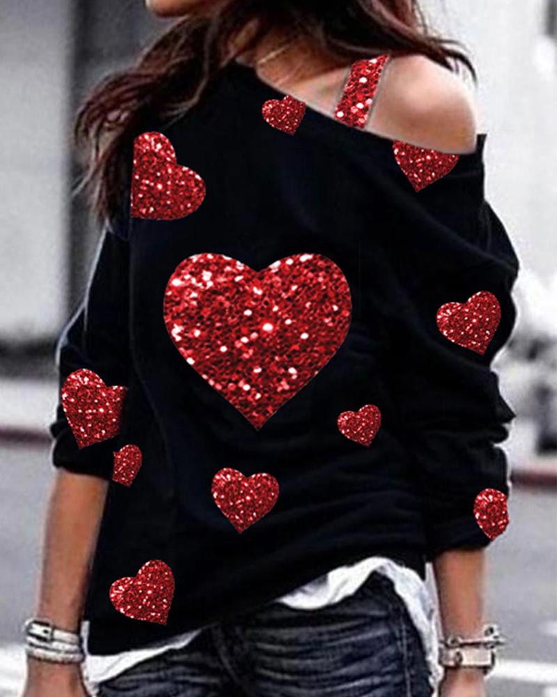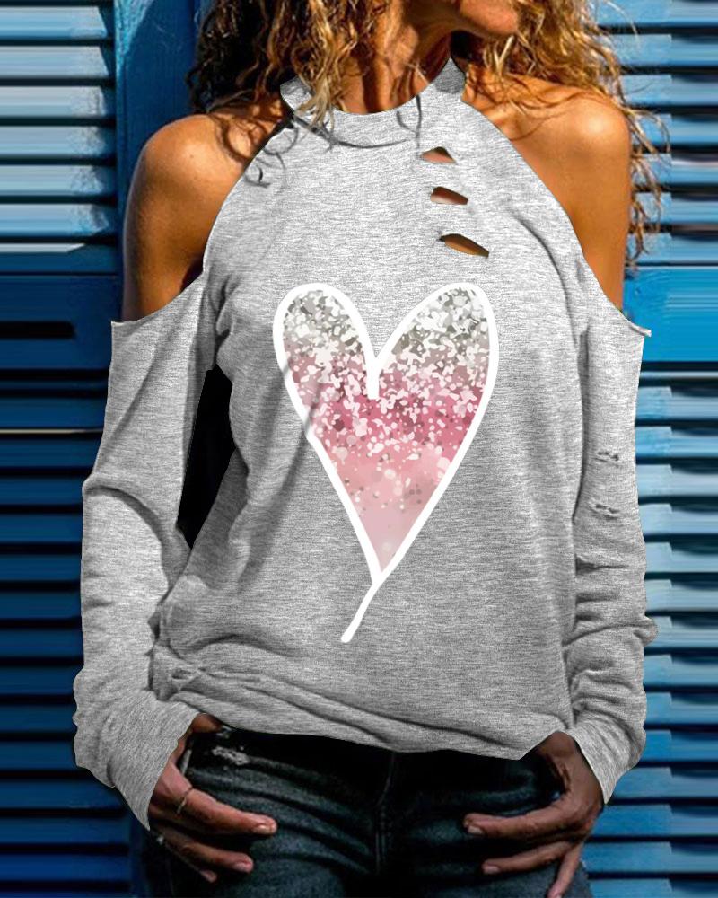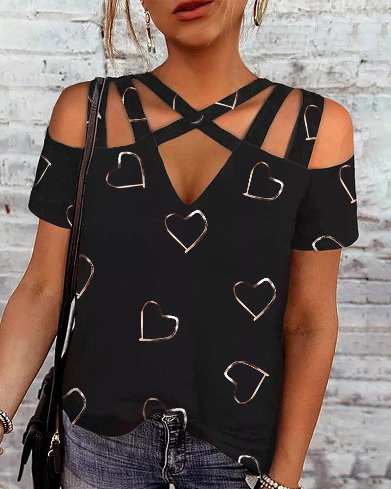 Valentine's Day Cold Shoulder Heart Print Top |