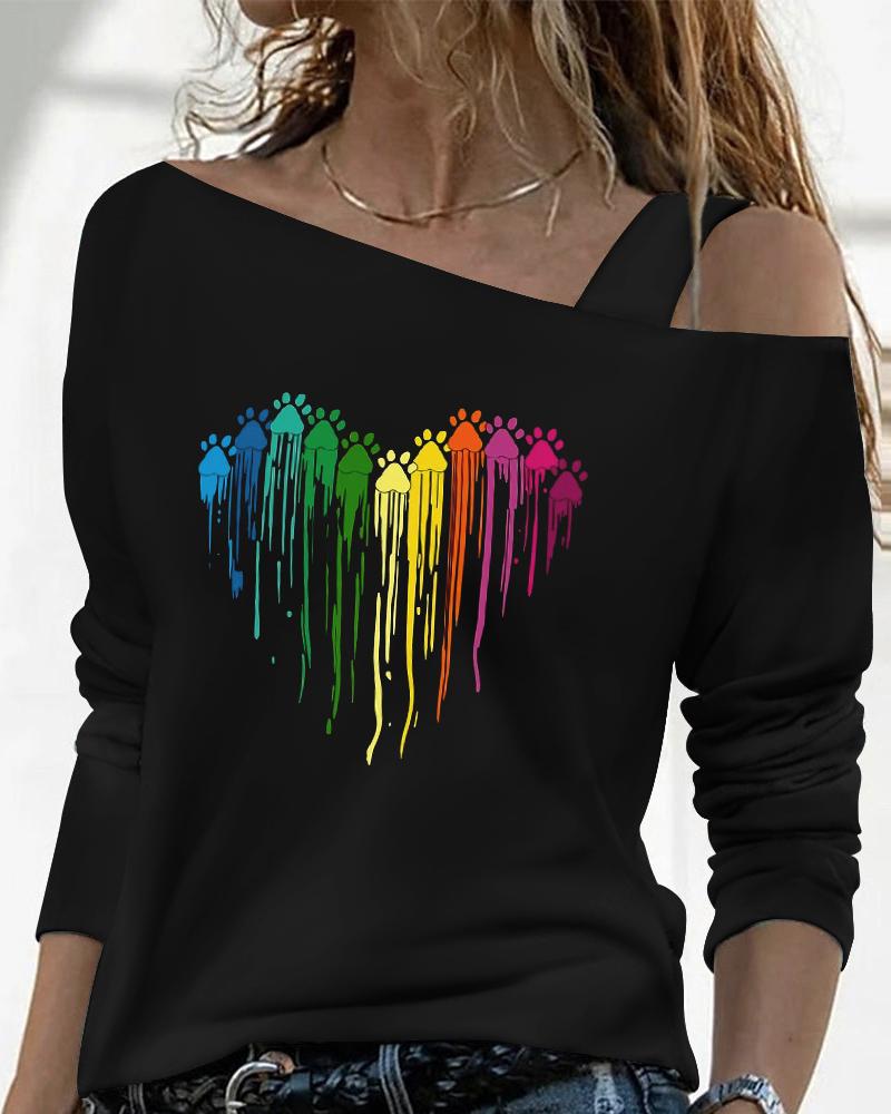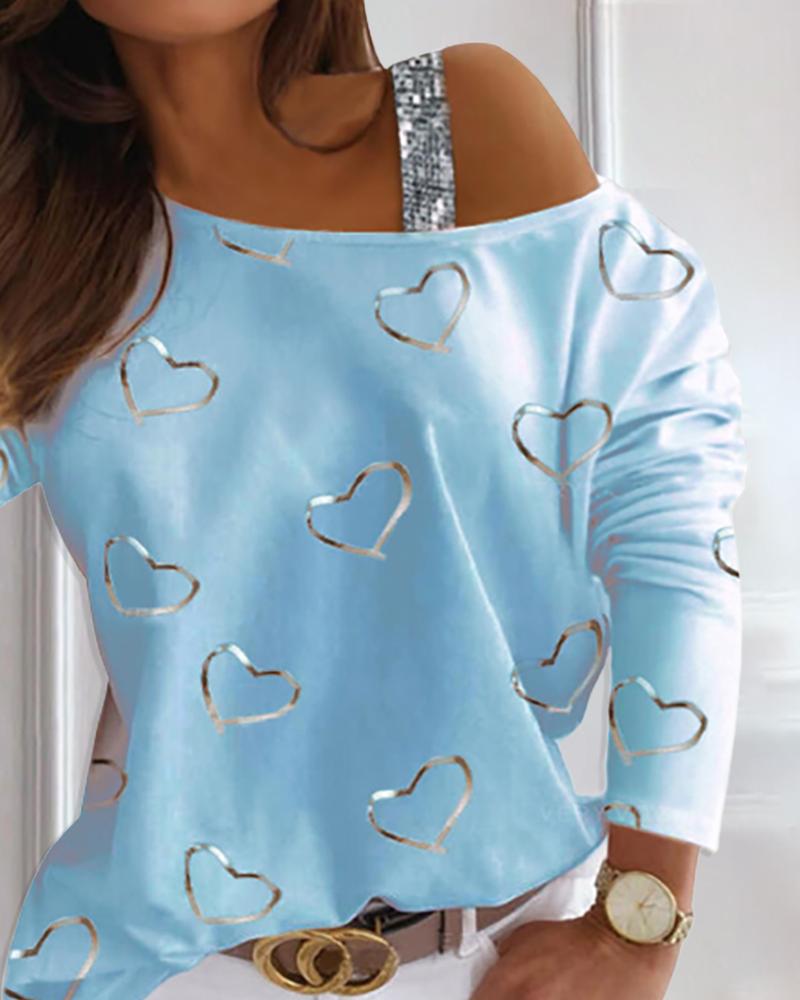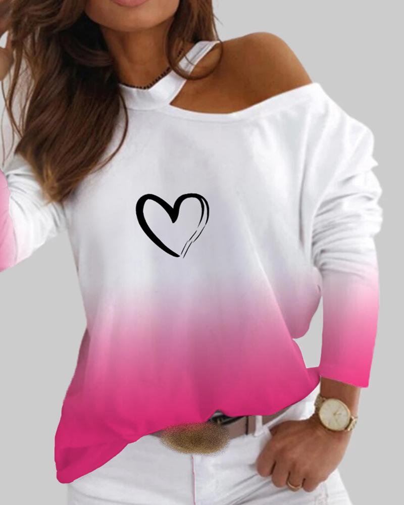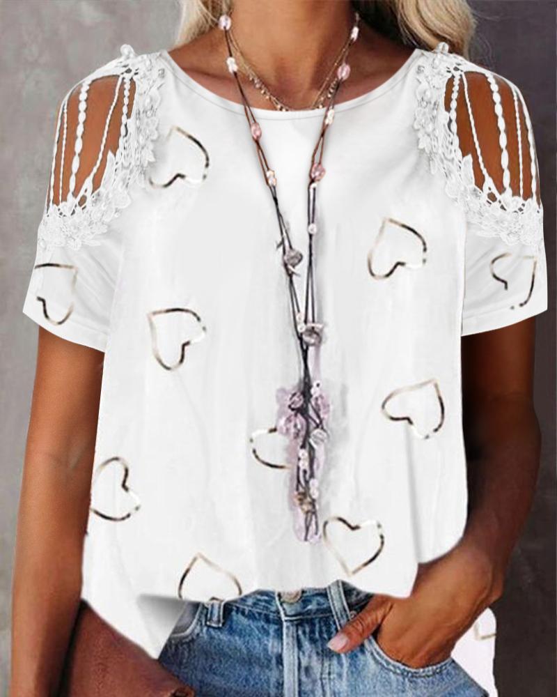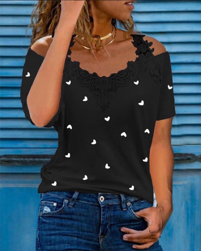 Valentine's Day Cold Shoulder Heart Print Top |