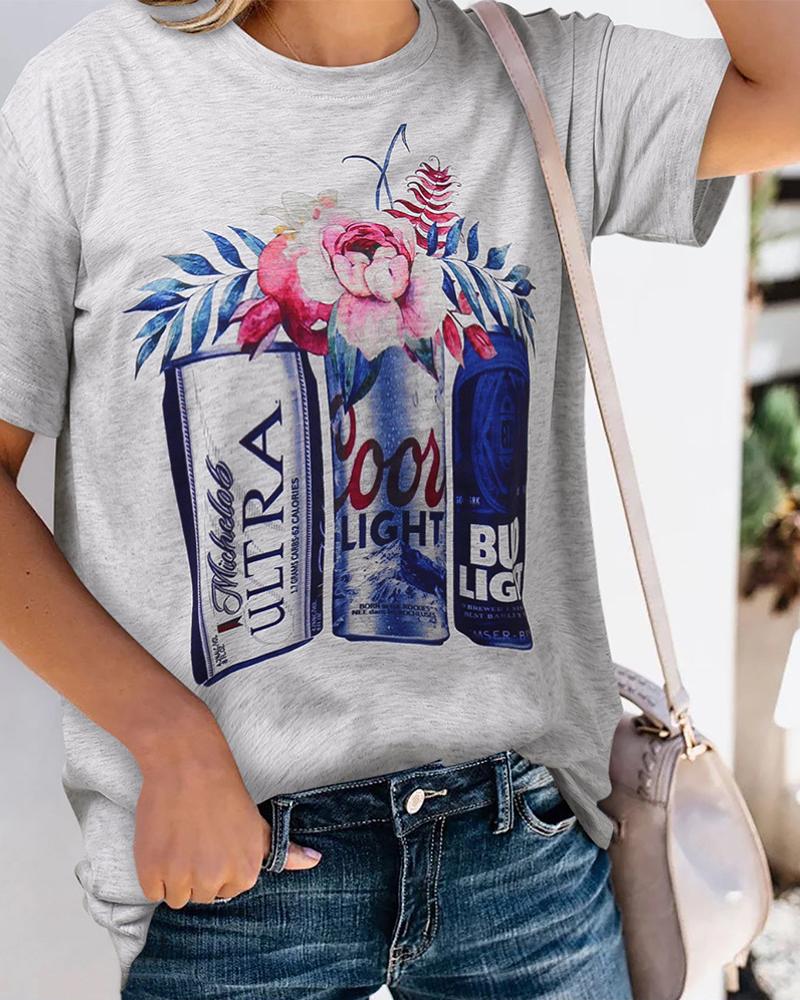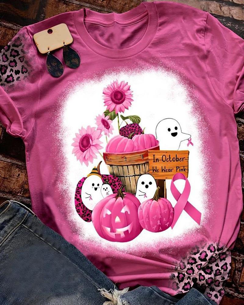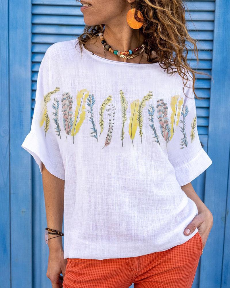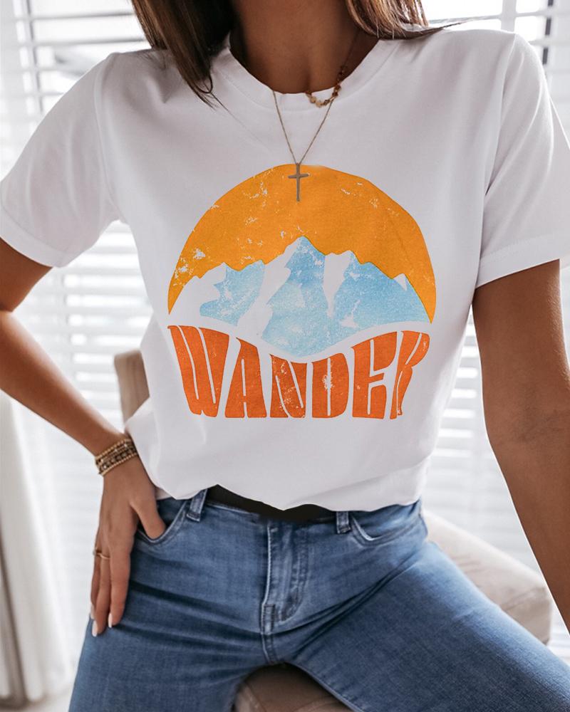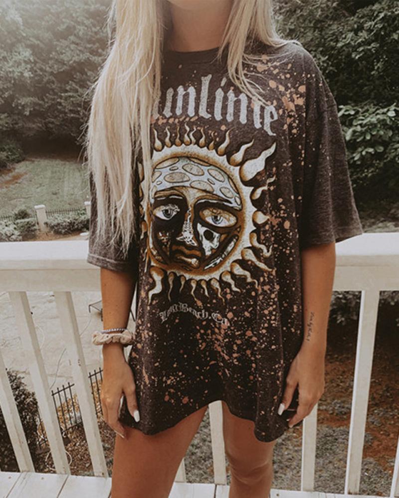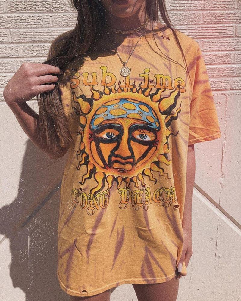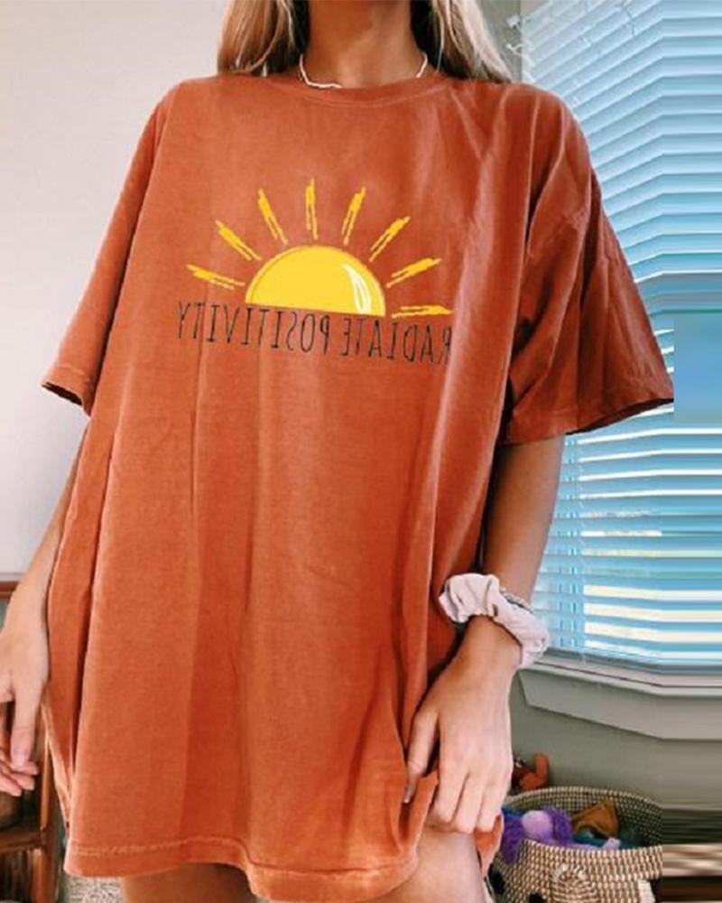 Sunflower Print Round Neck Casual T-shirt |