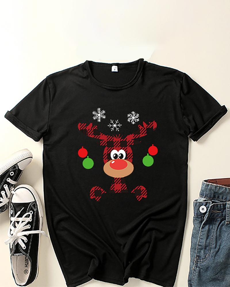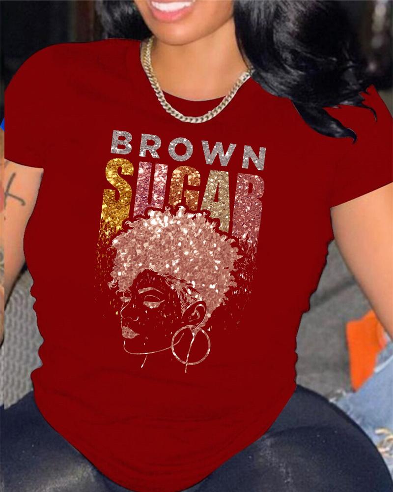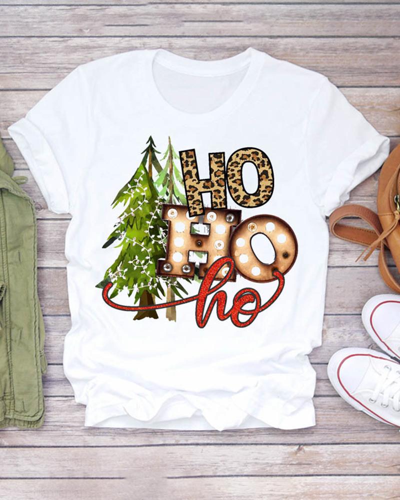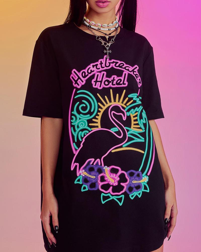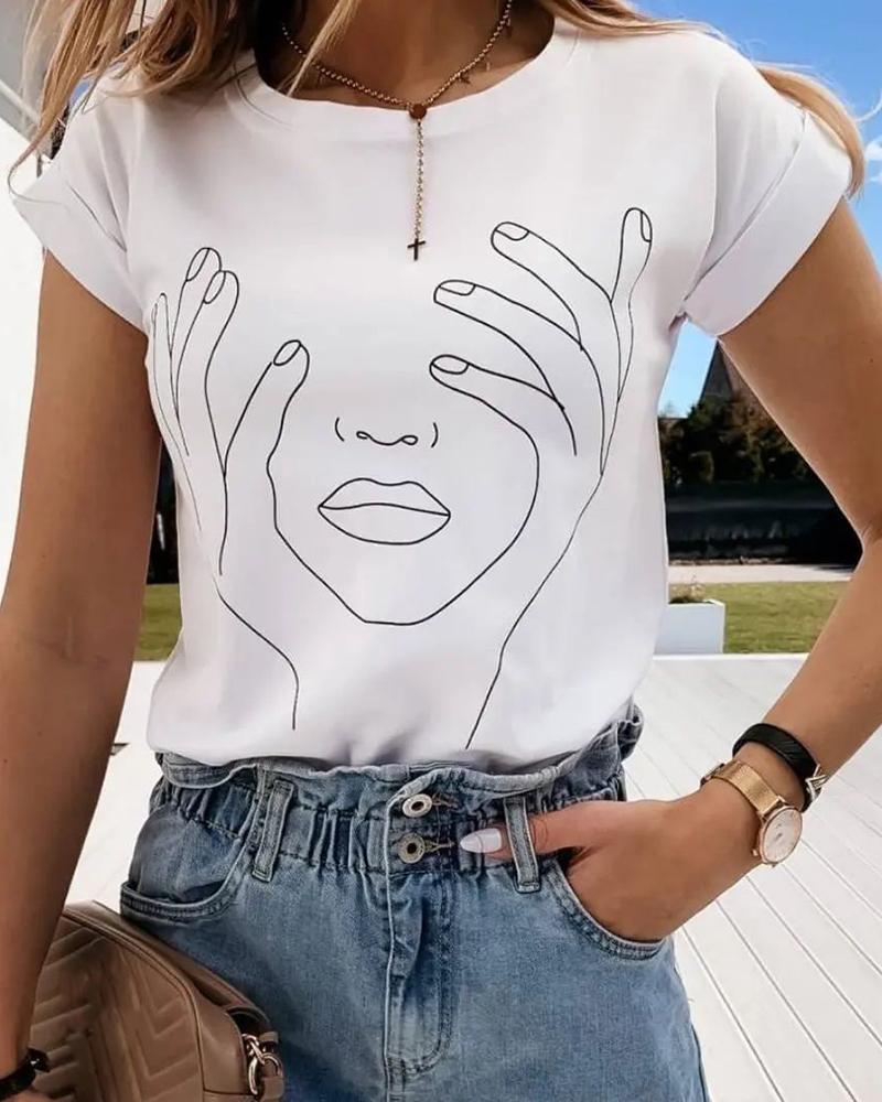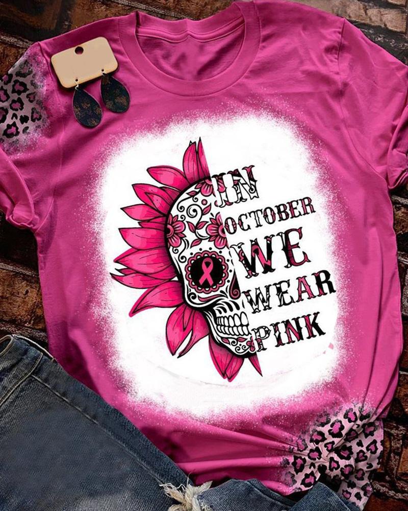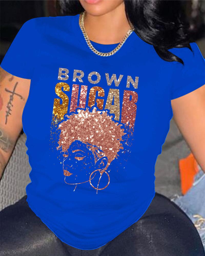 Sunflower Print Round Neck Casual T-shirt |