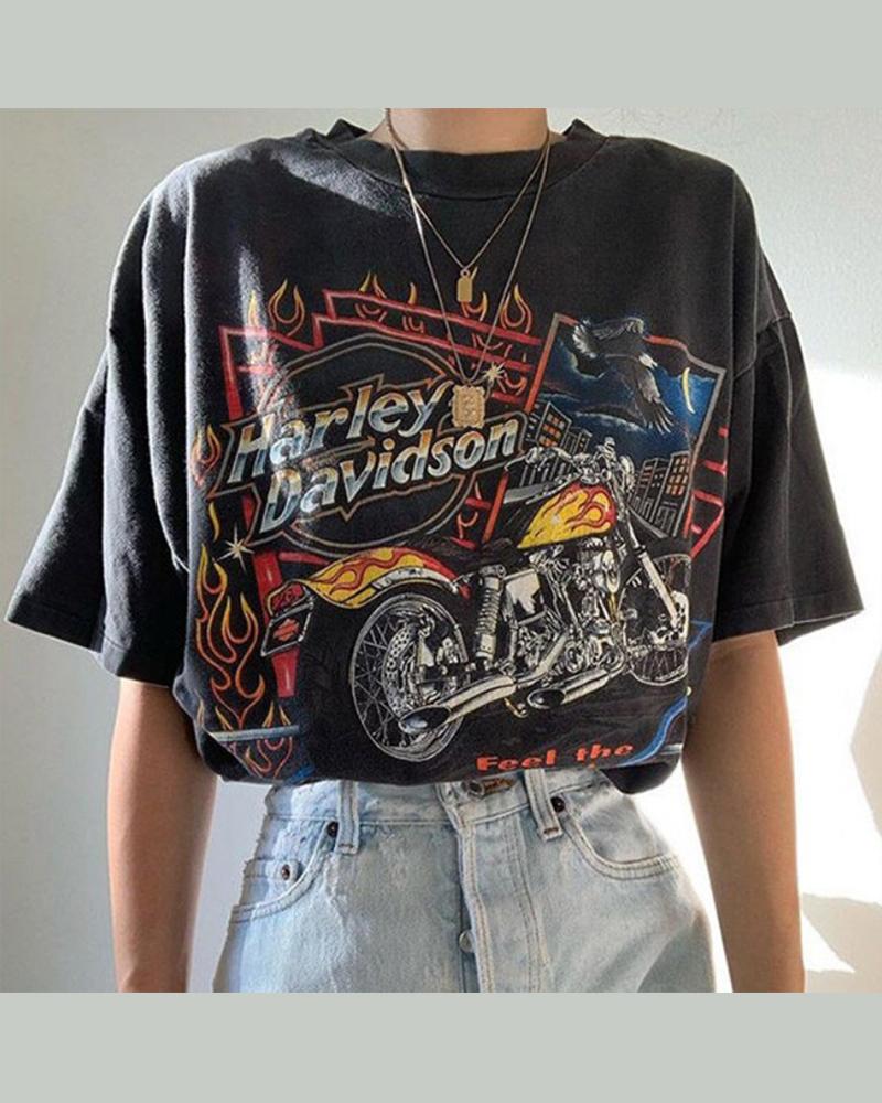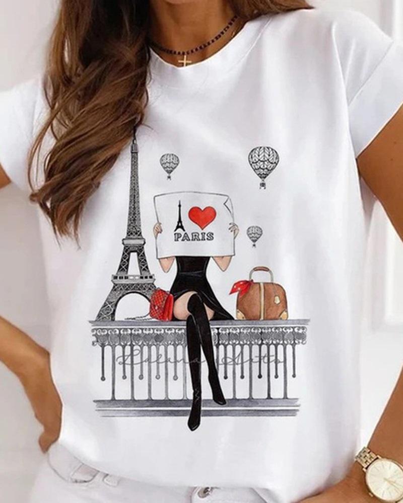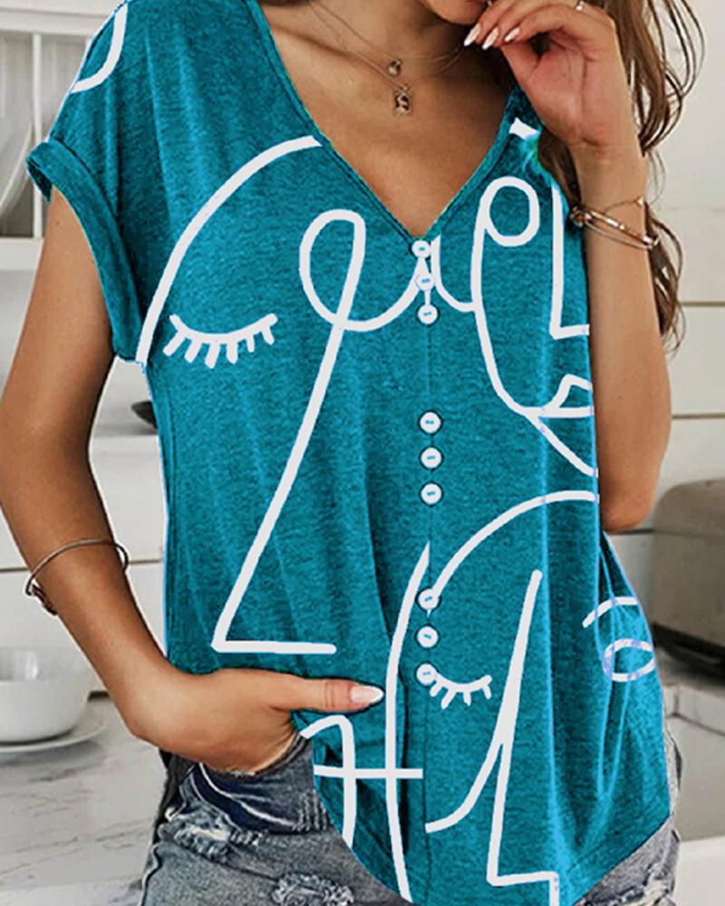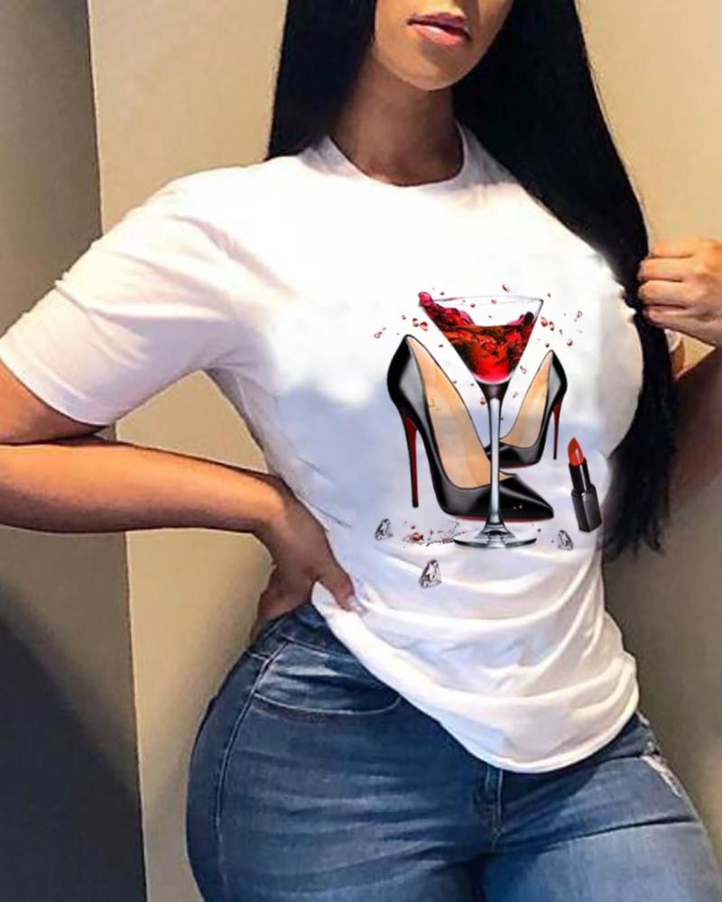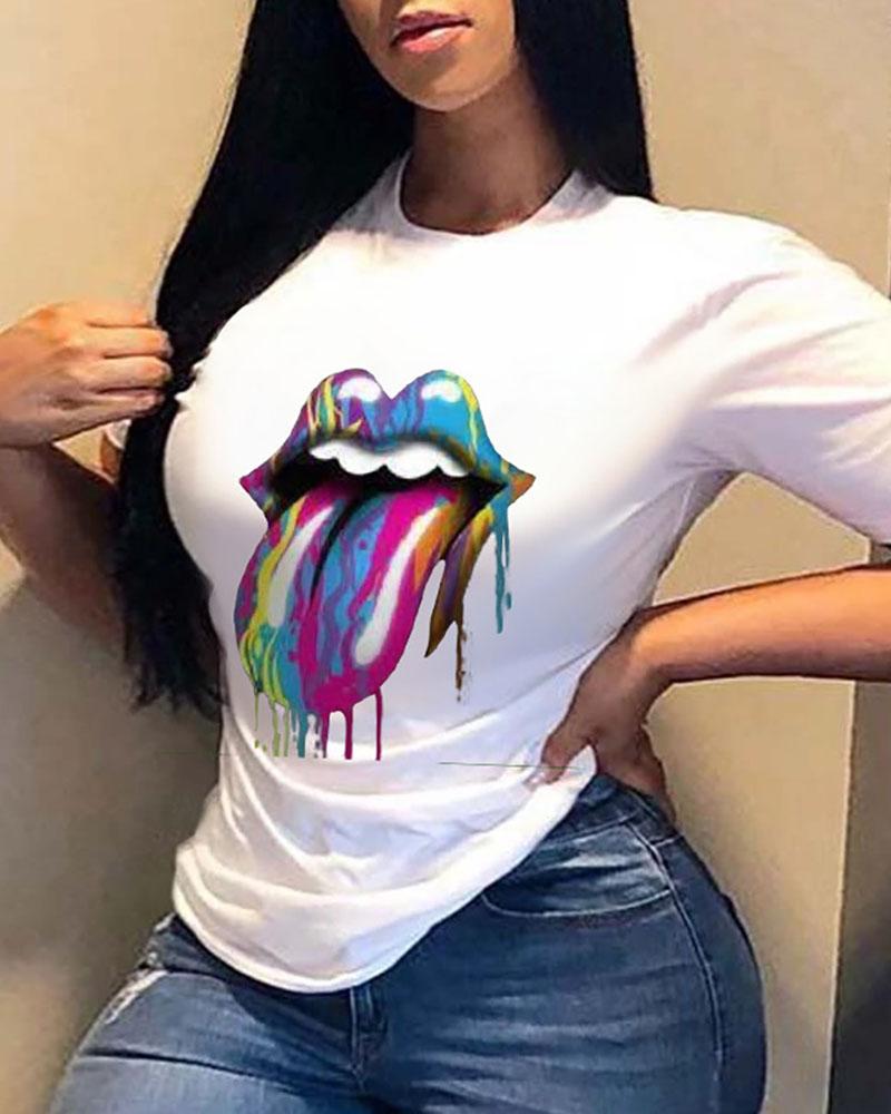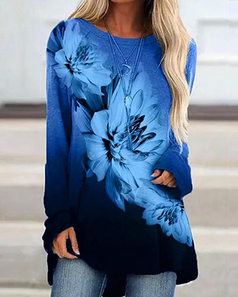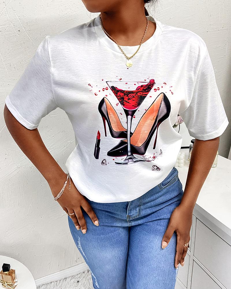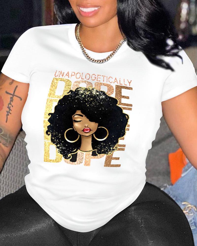 Sunflower Print Round Neck Casual T-shirt |