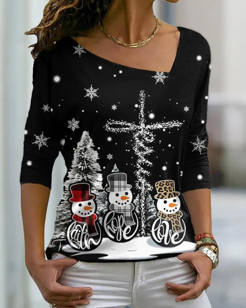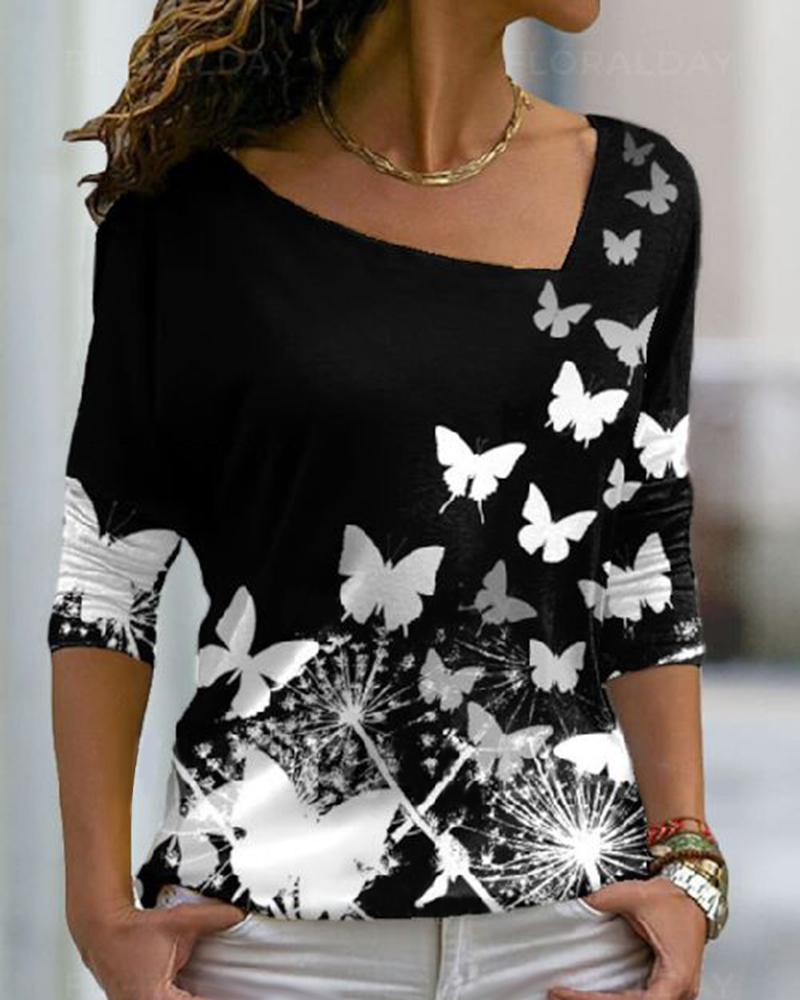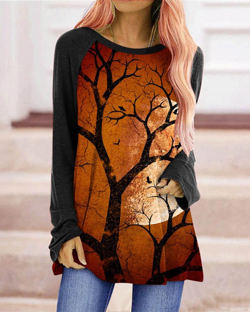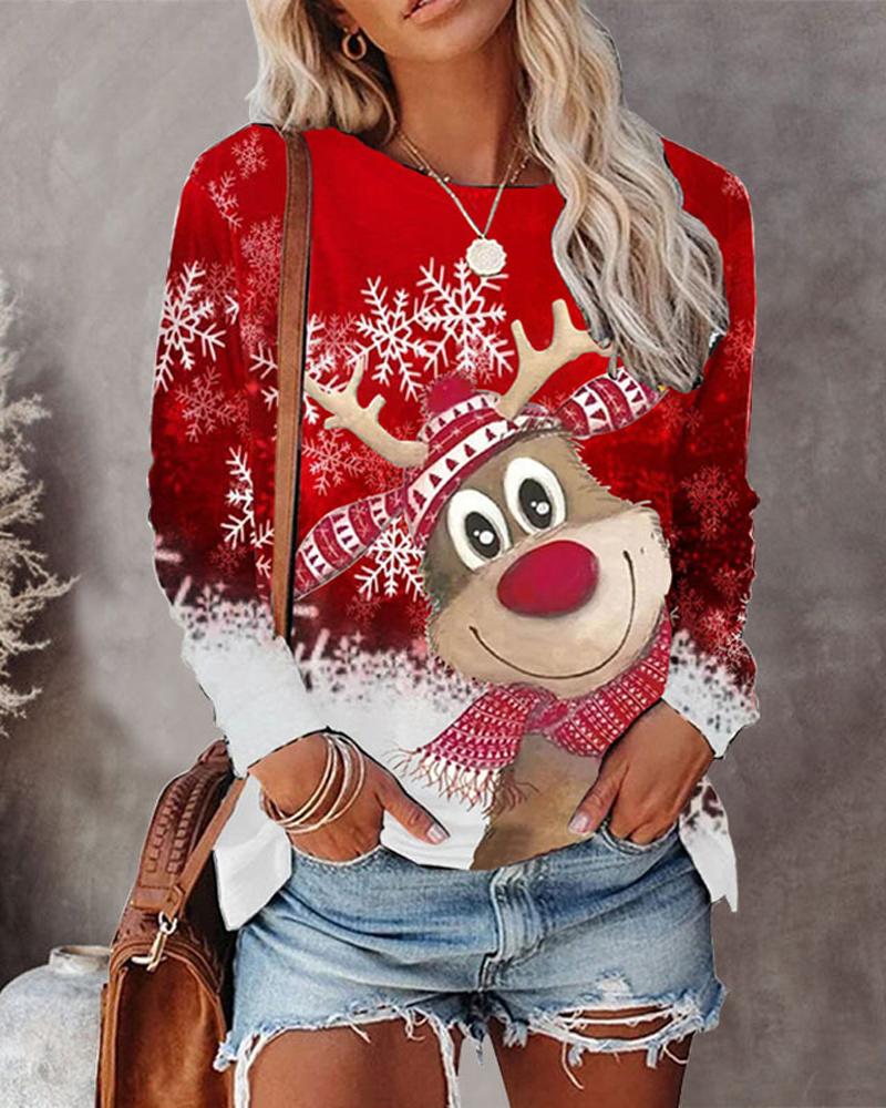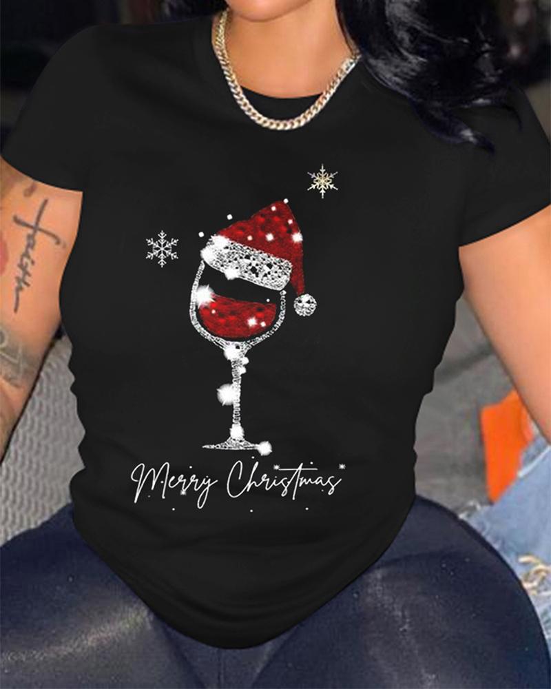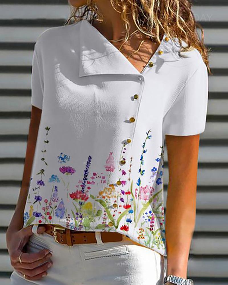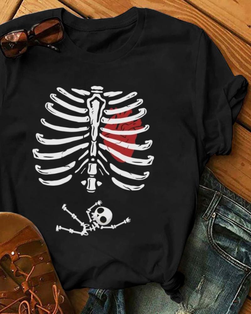 Sunflower Print Round Neck Casual T-shirt |