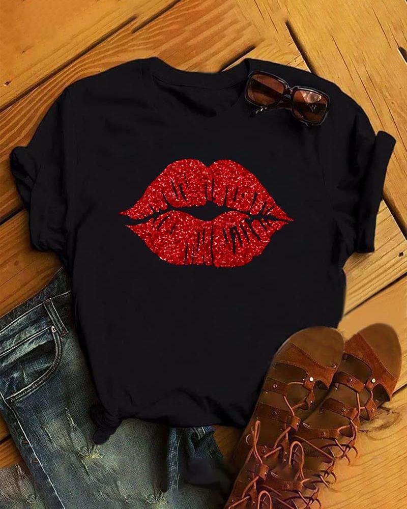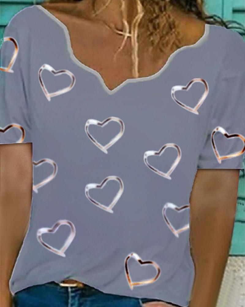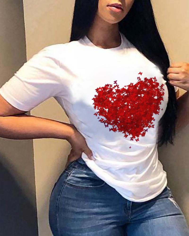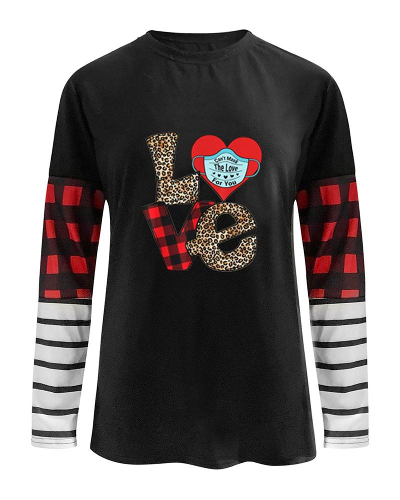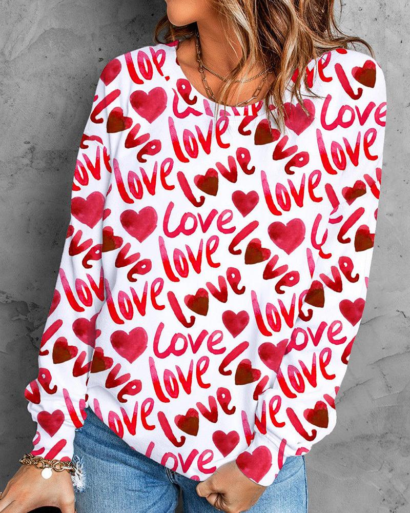 Valentine's Day Heart Love Print Batwing Sleeve Top |