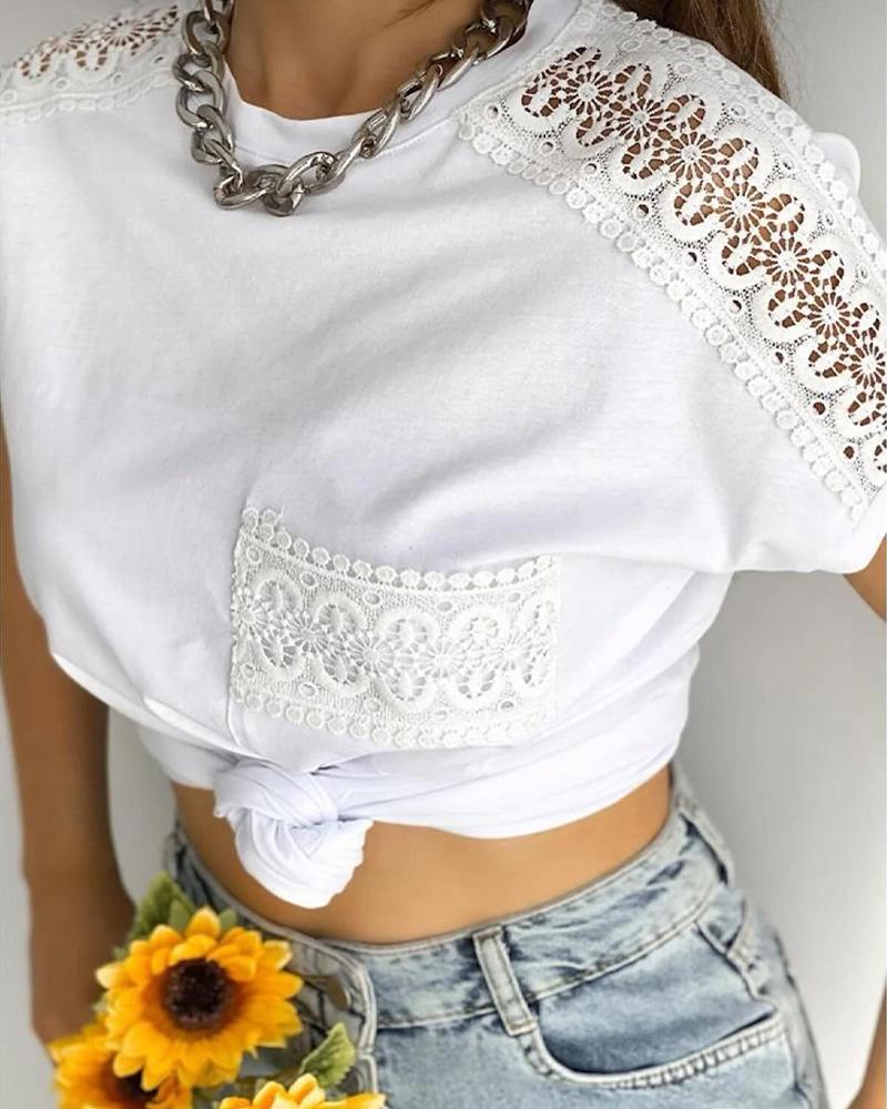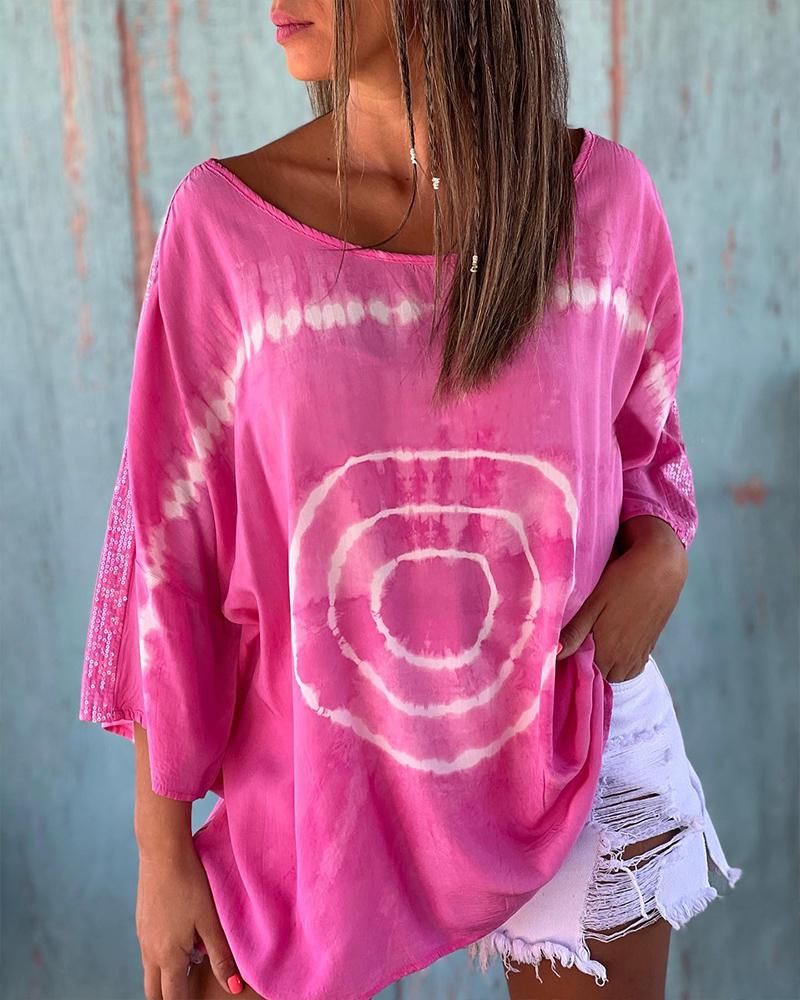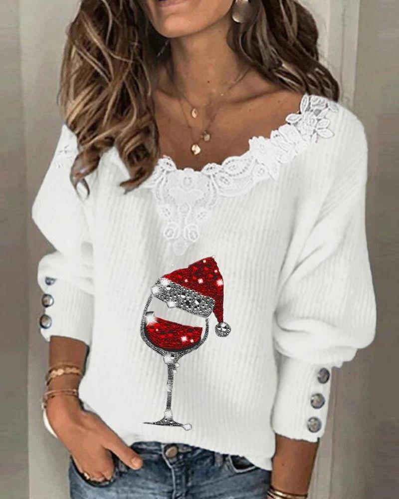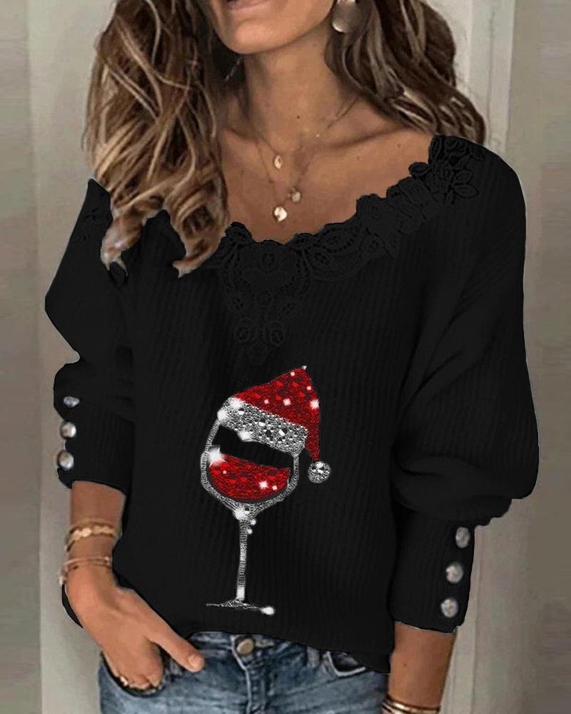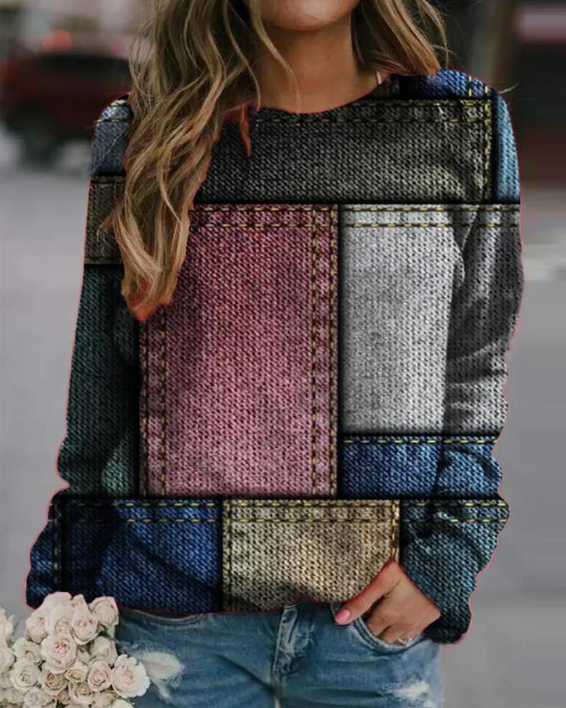 Geo Print Colorblock Contrast Lace Long Sleeve Top |