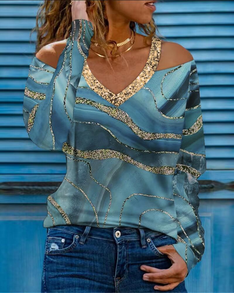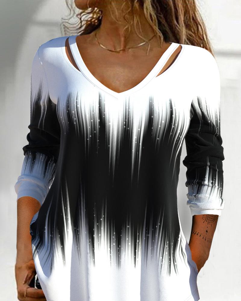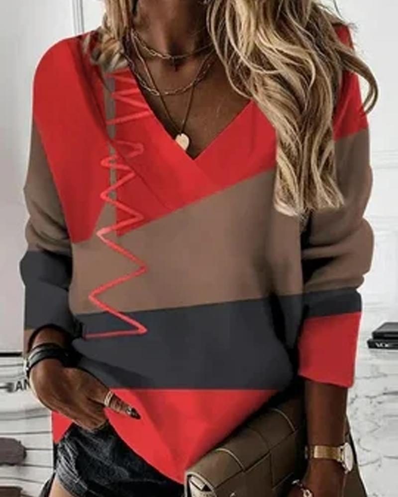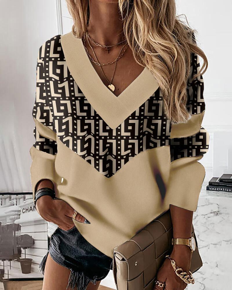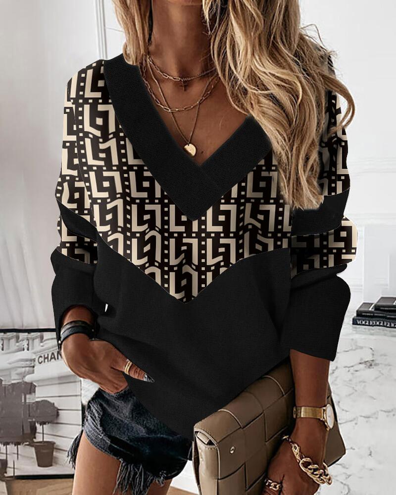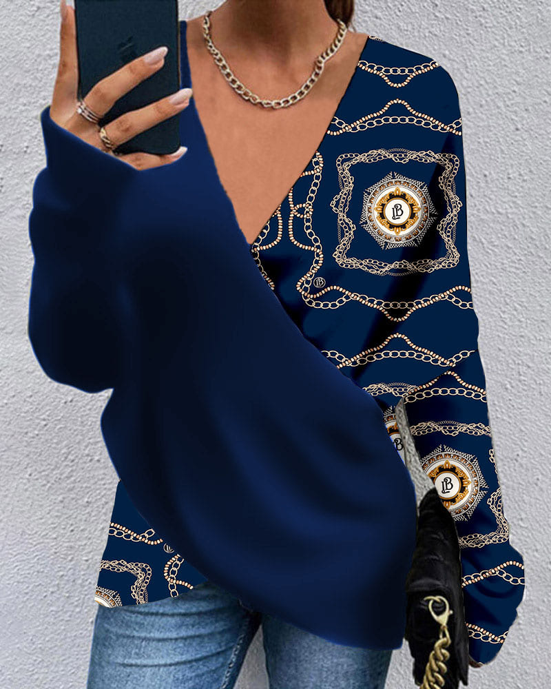 V-Neck Long Sleeve Print Top |