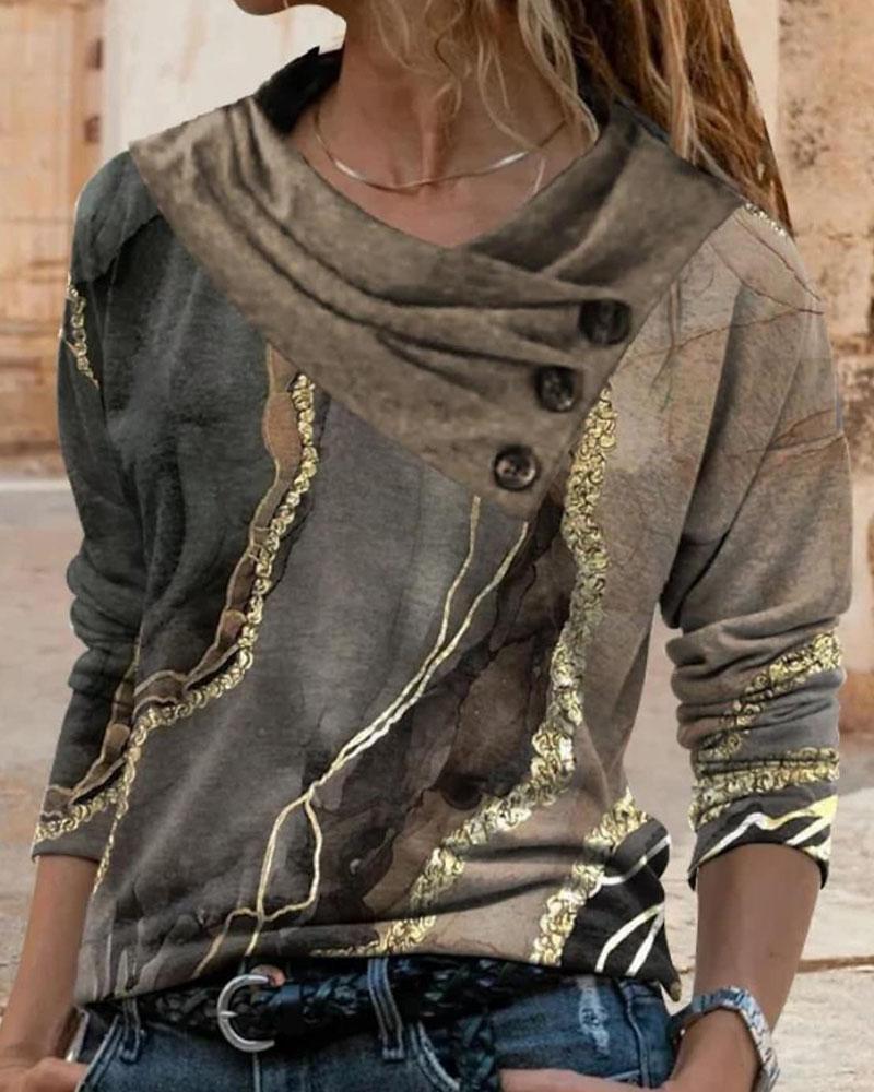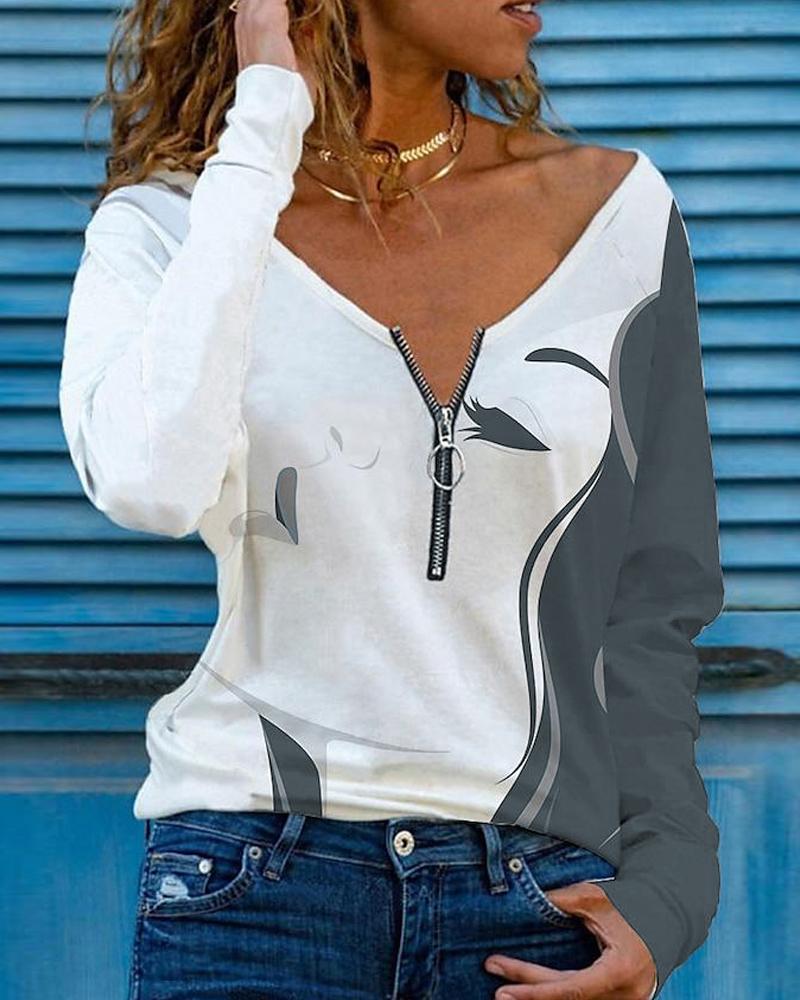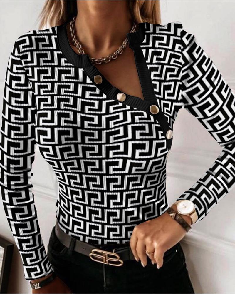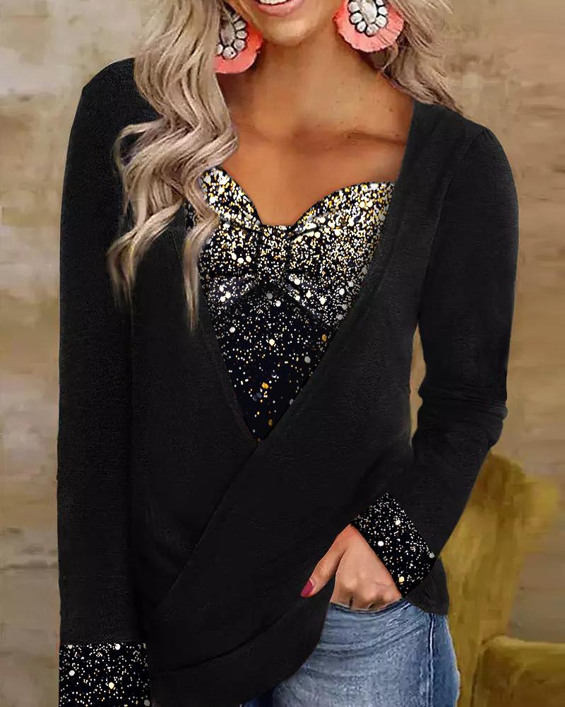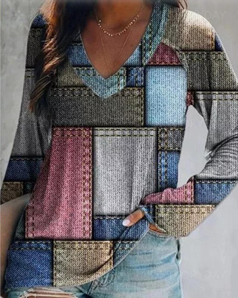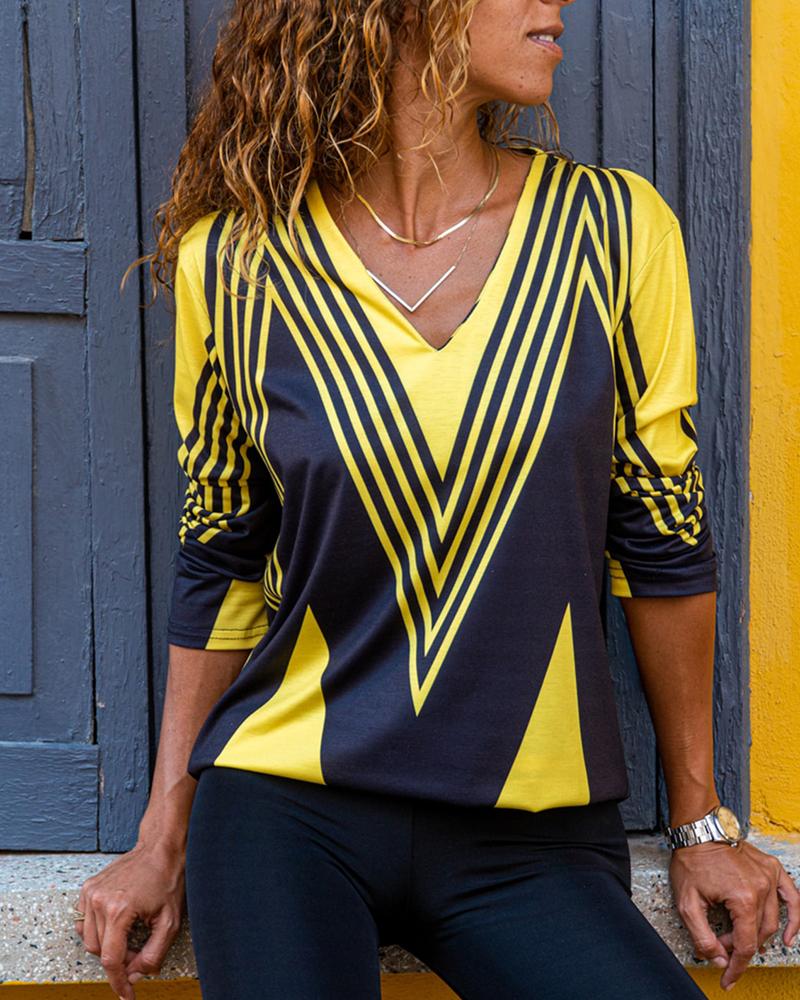 V-Neck Long Sleeve Print Top |