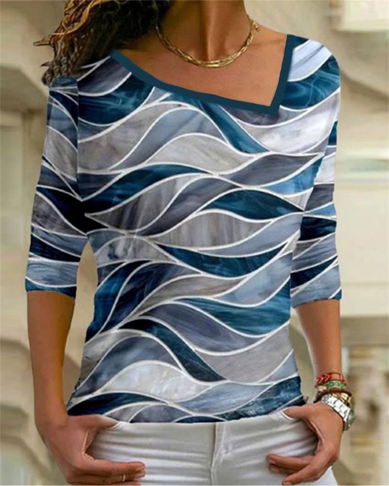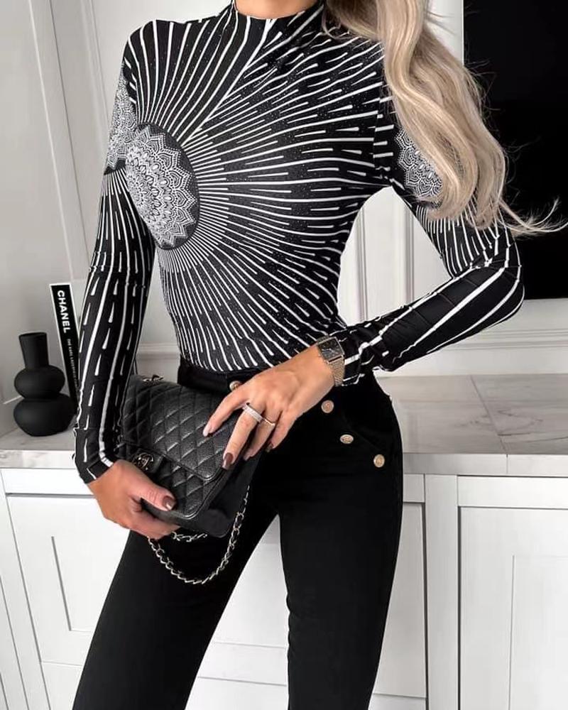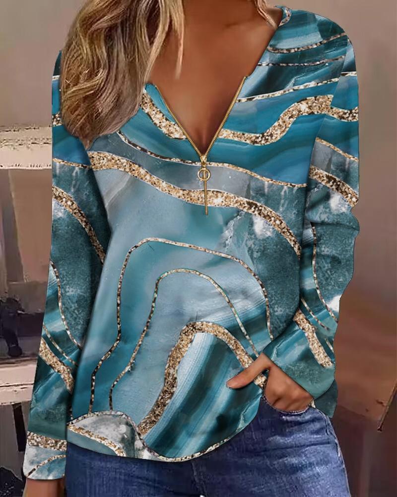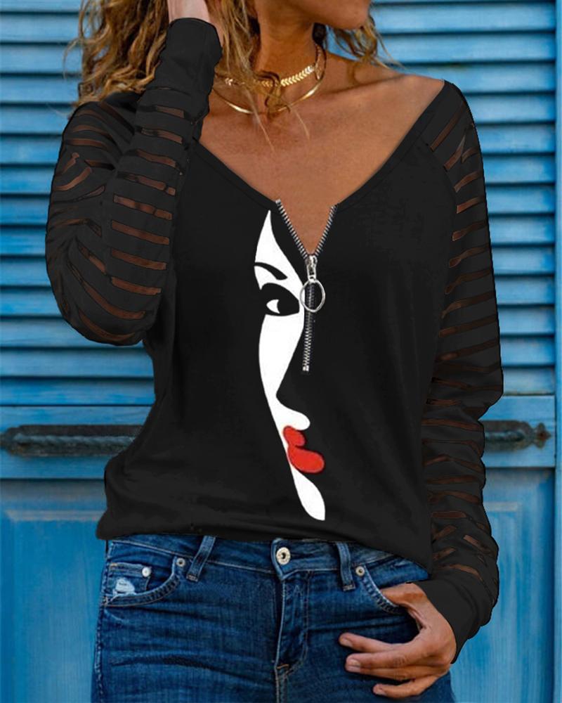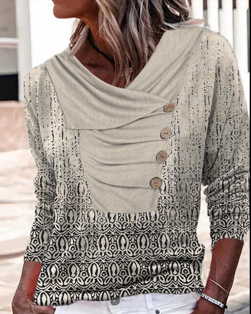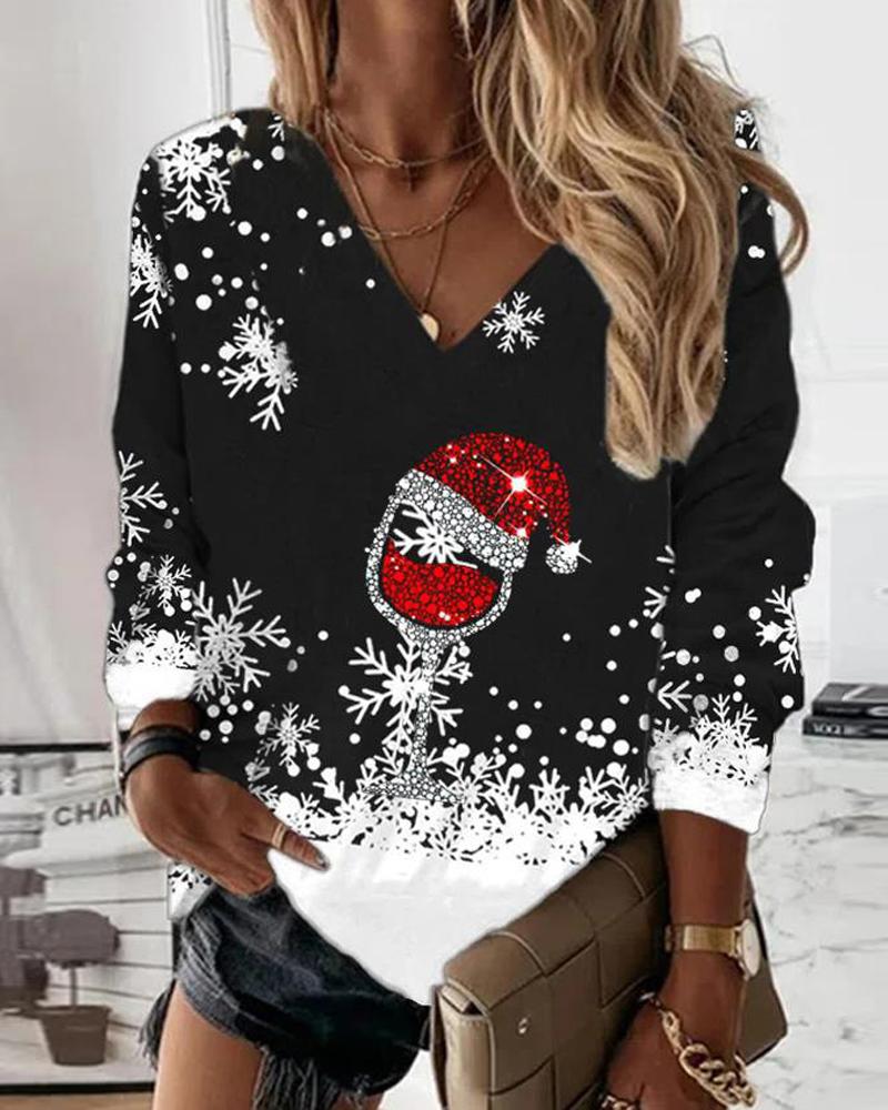 V-Neck Long Sleeve Print Top |
