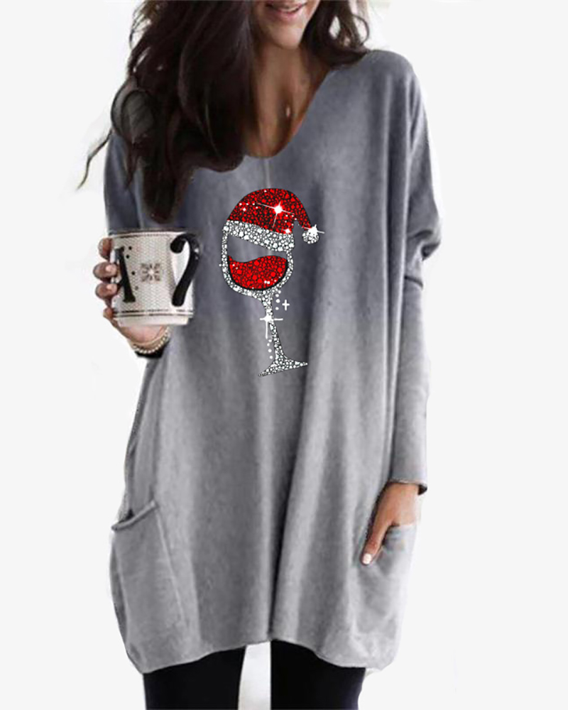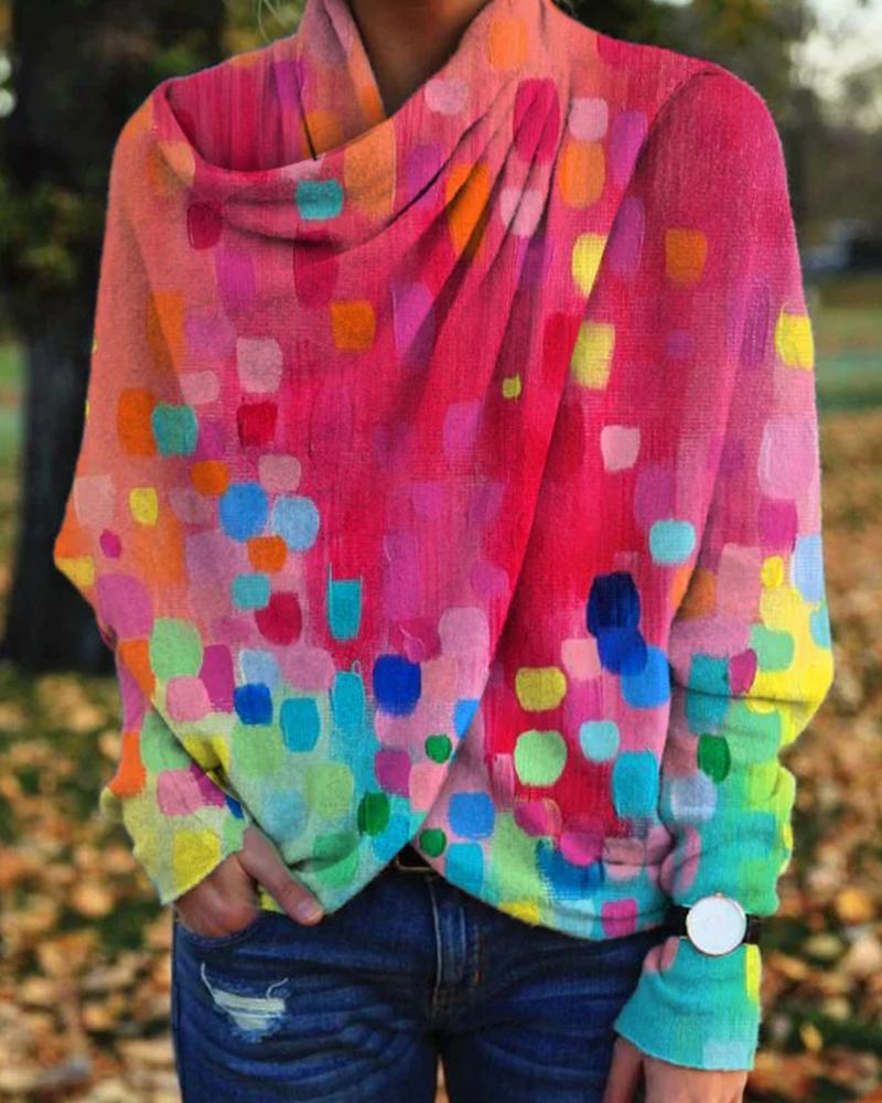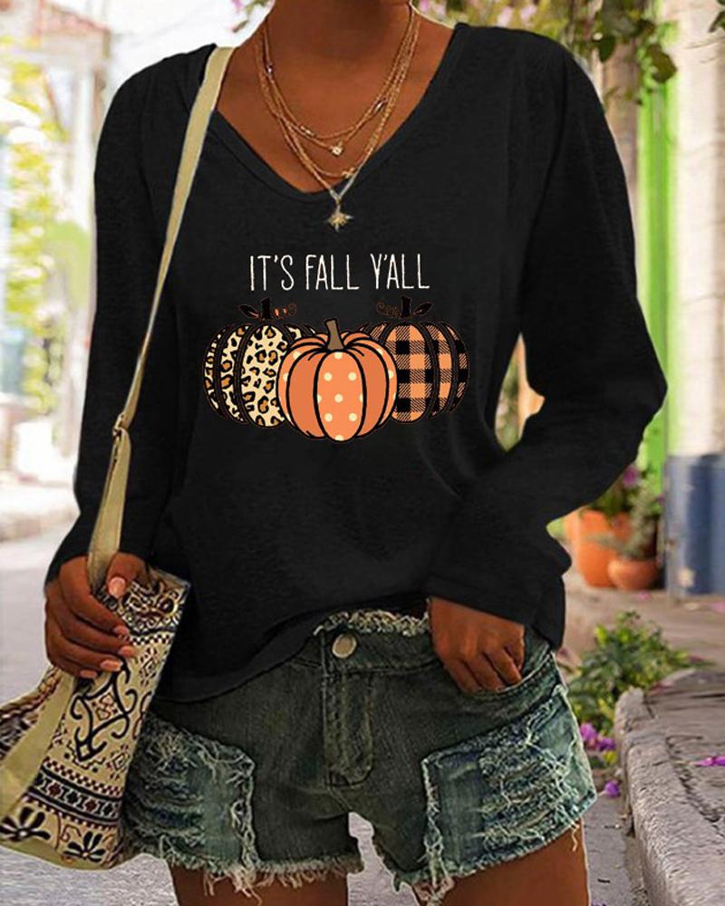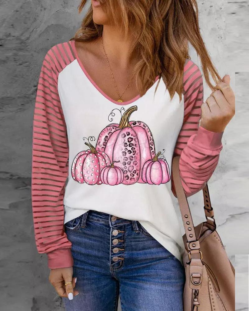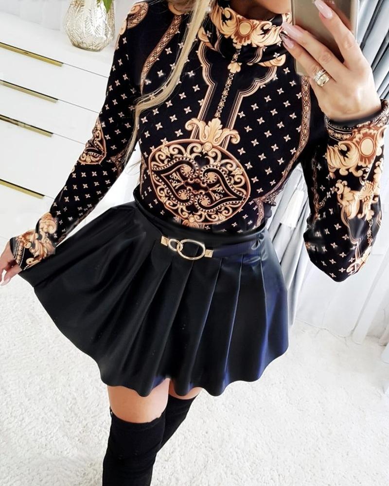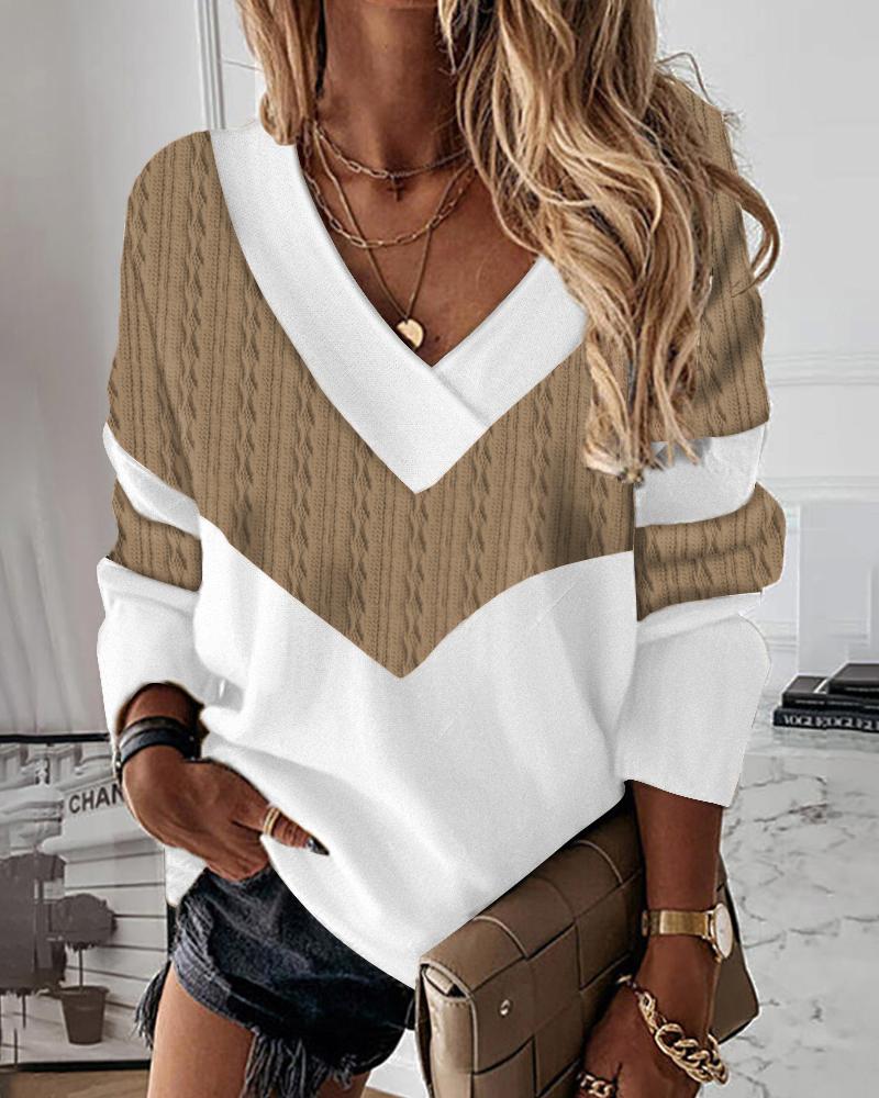 V-Neck Long Sleeve Print Top |