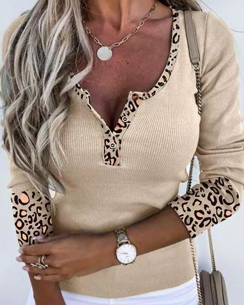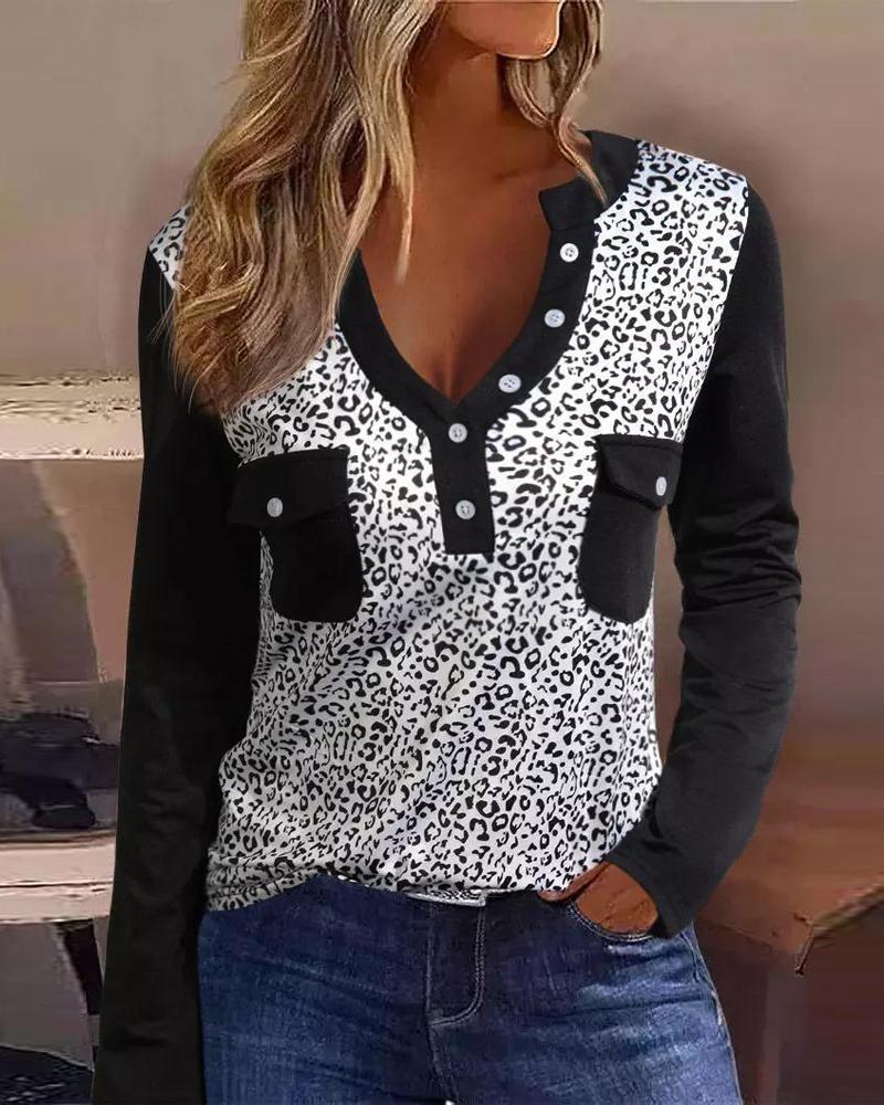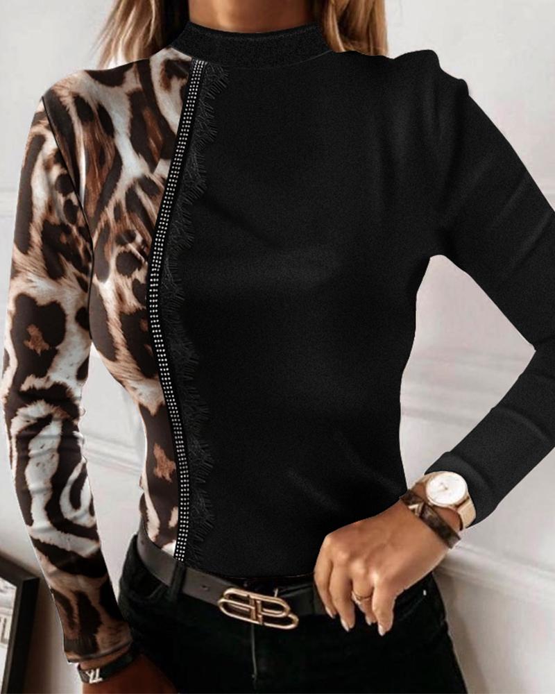 Contrast Leopard Cold Shoulder Top |