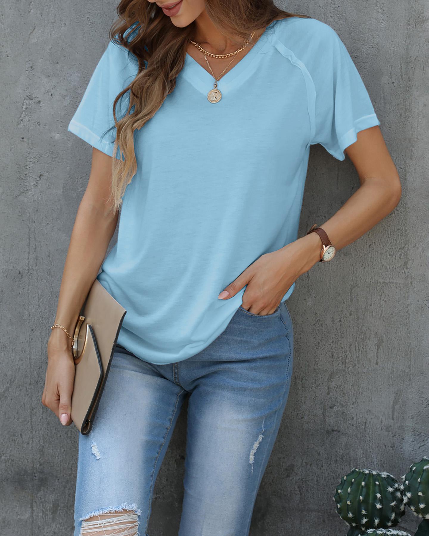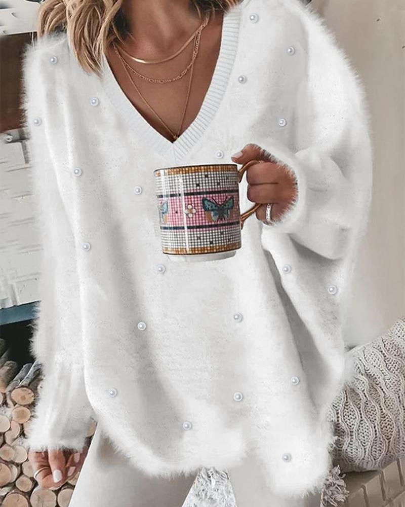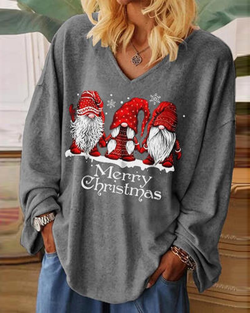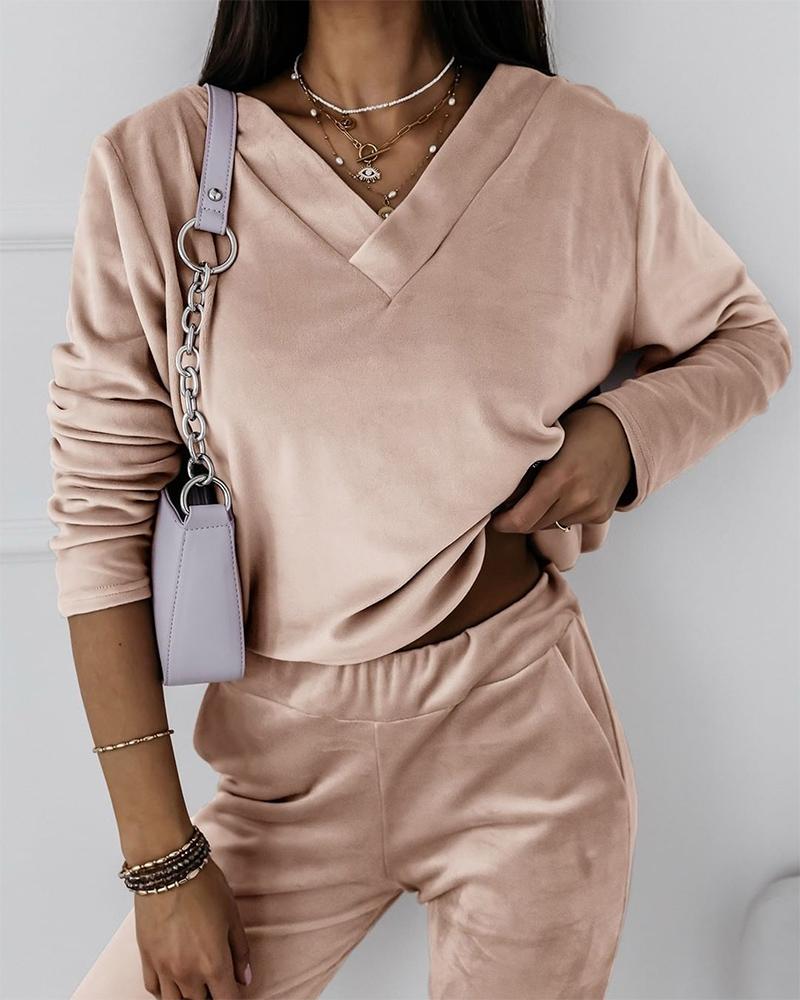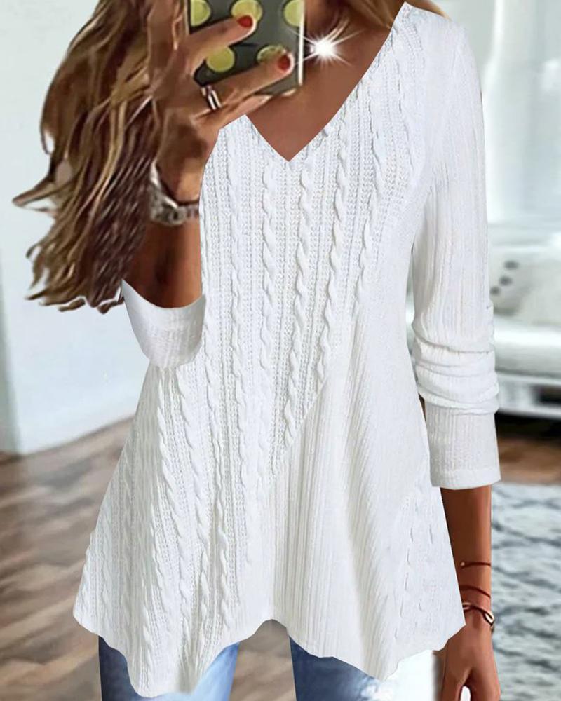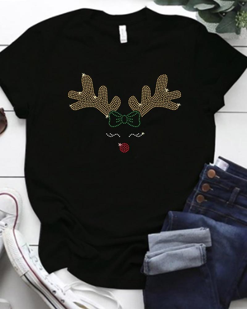 Rhinestone V-Neck Long Sleeve Casual Tee |