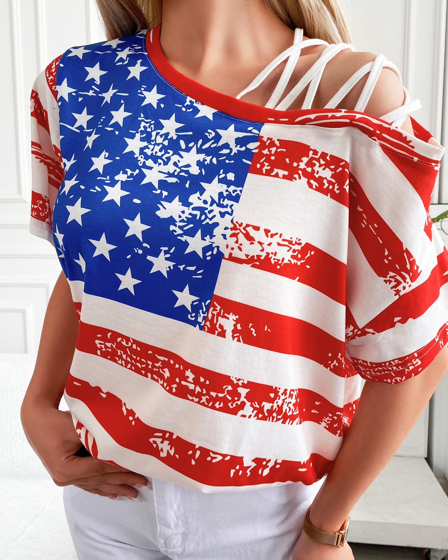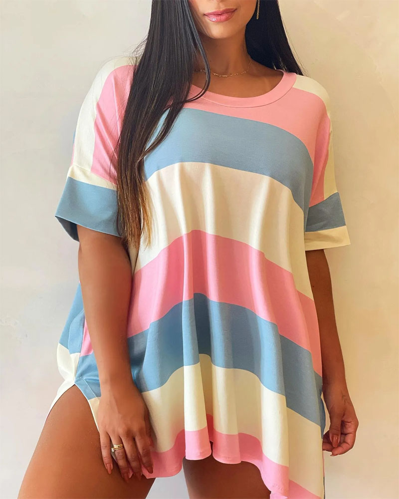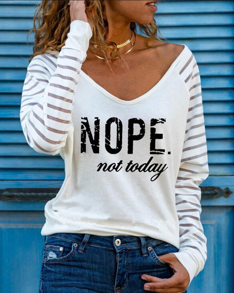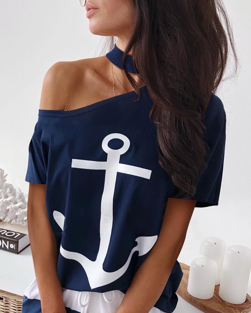 Striped Print Cold Shoulder Casual T-shirt |