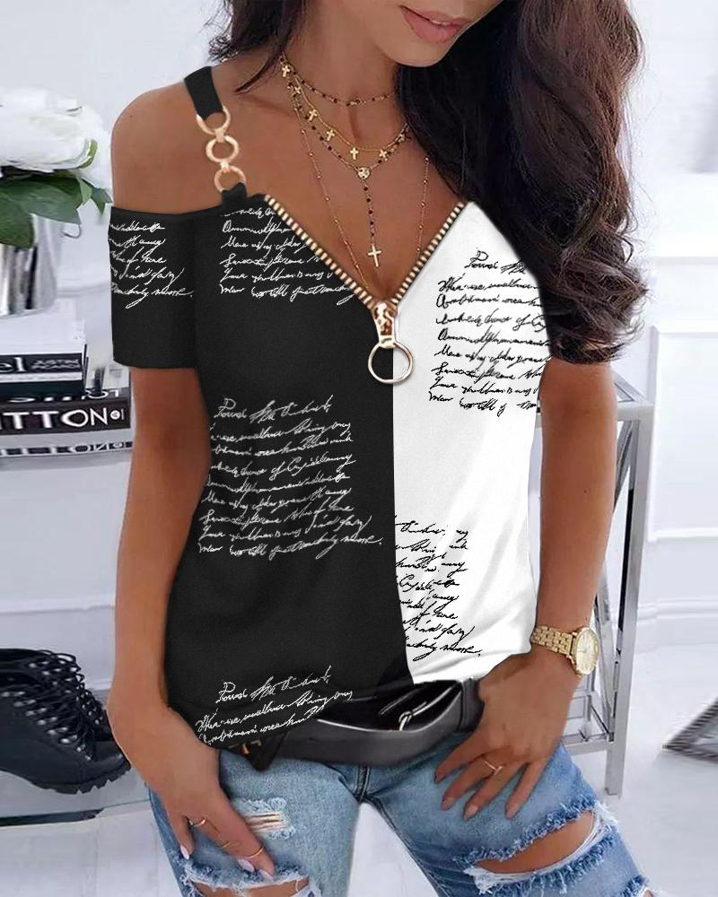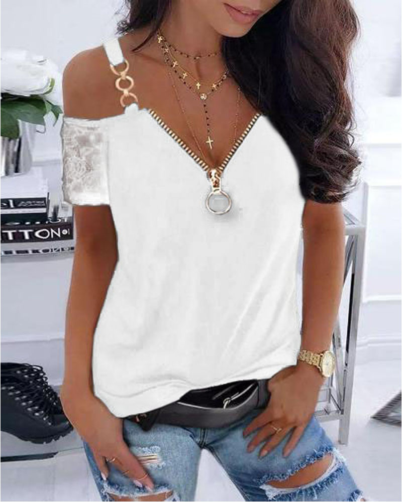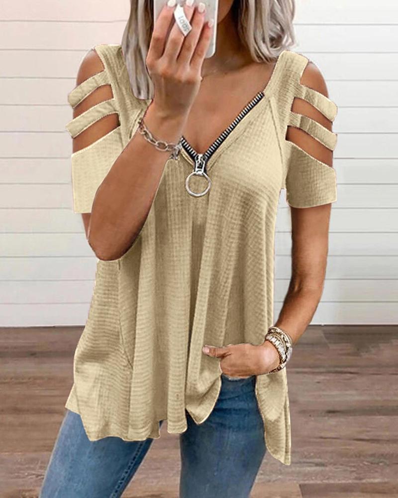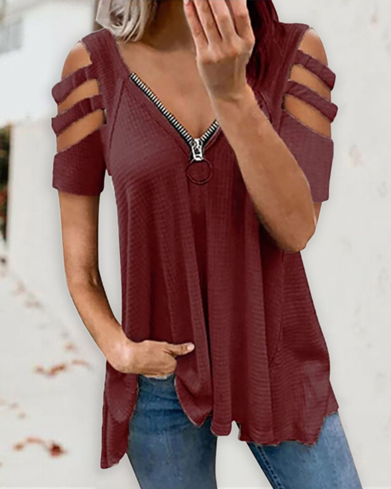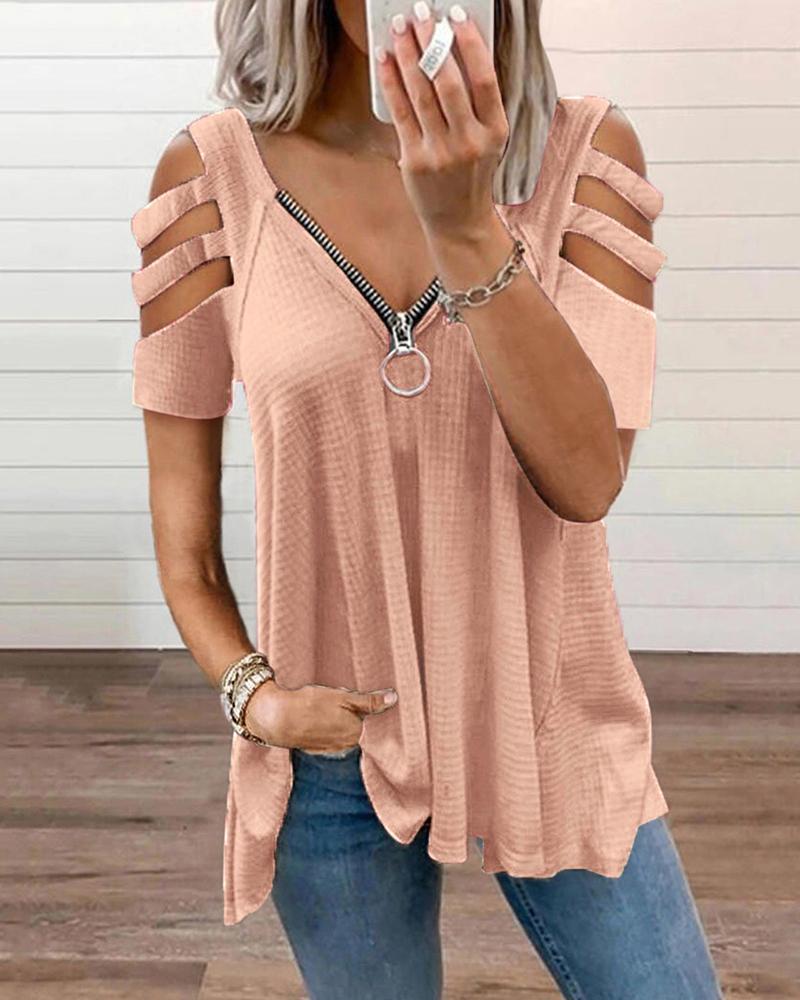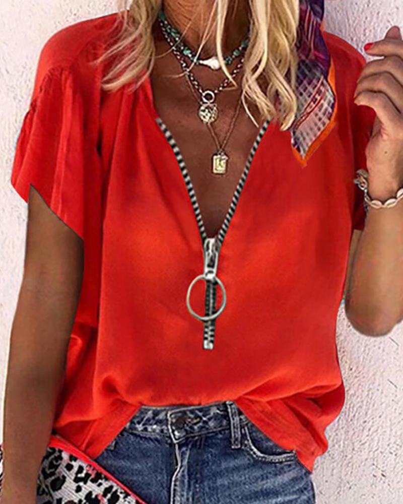 Zipper Design Short Sleeve Casual T-shirt |