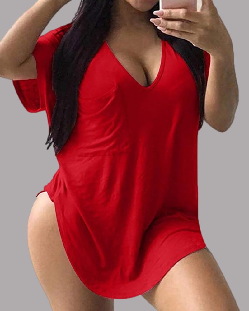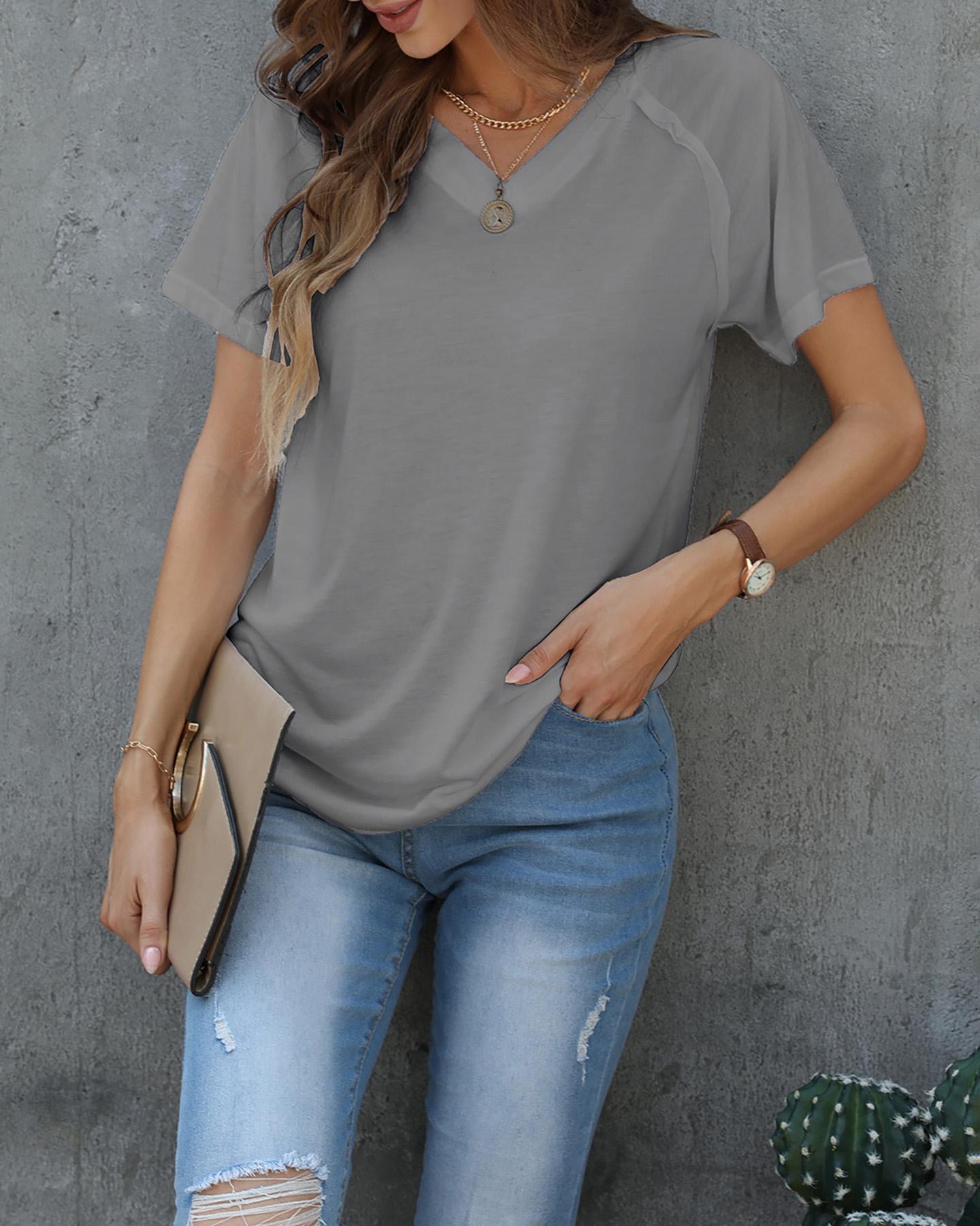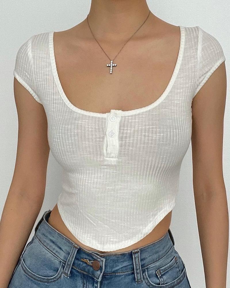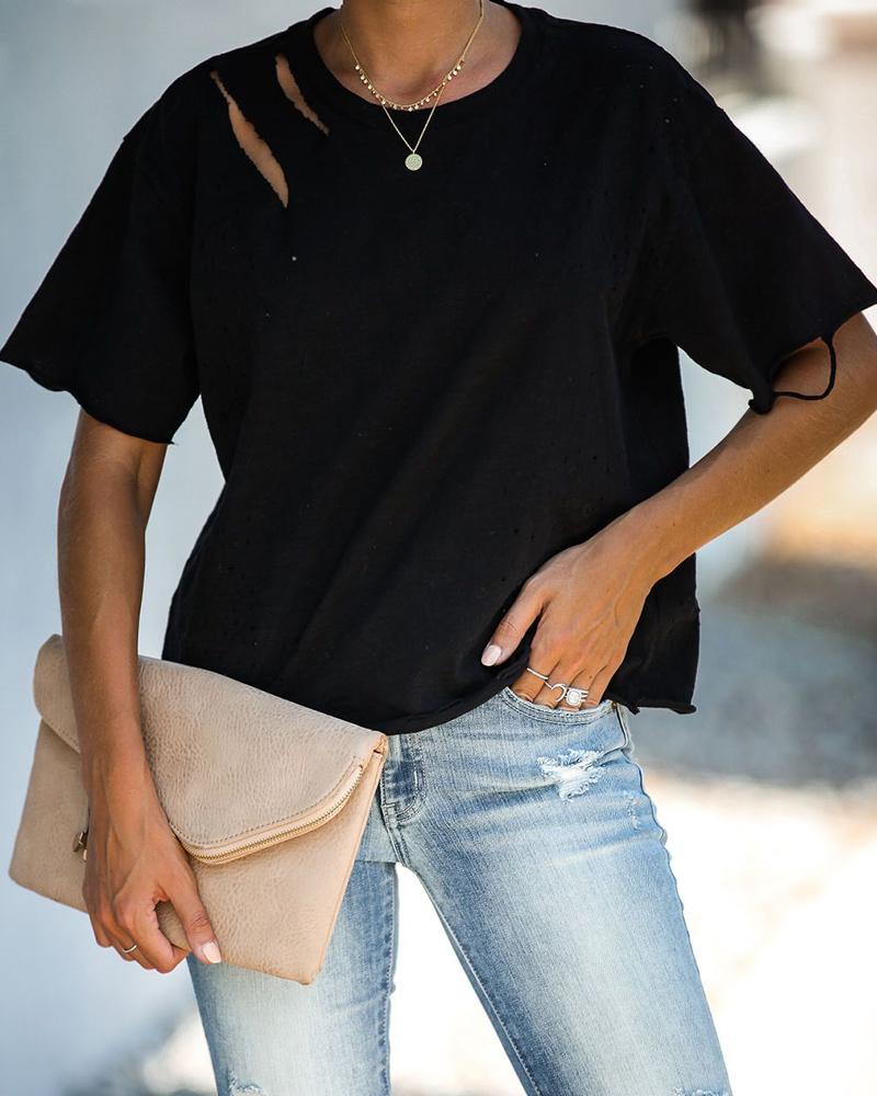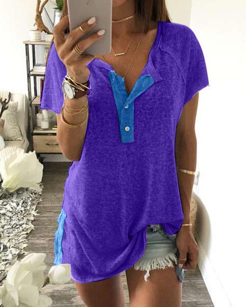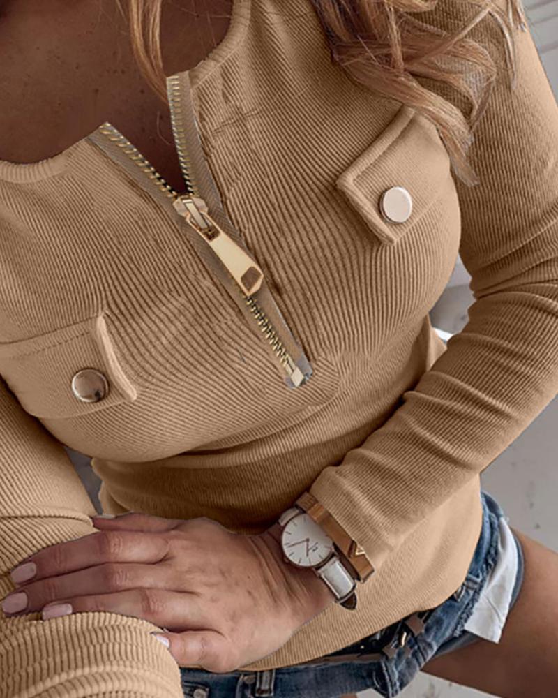 Zipper Design Short Sleeve Casual T-shirt |