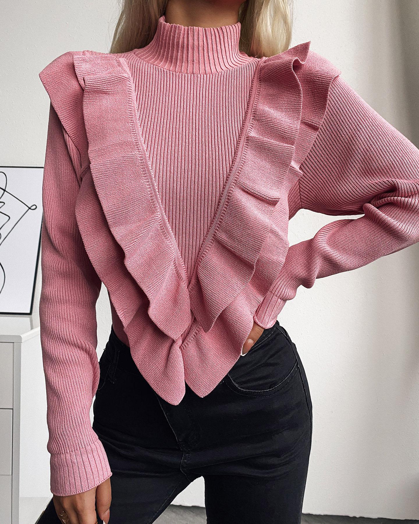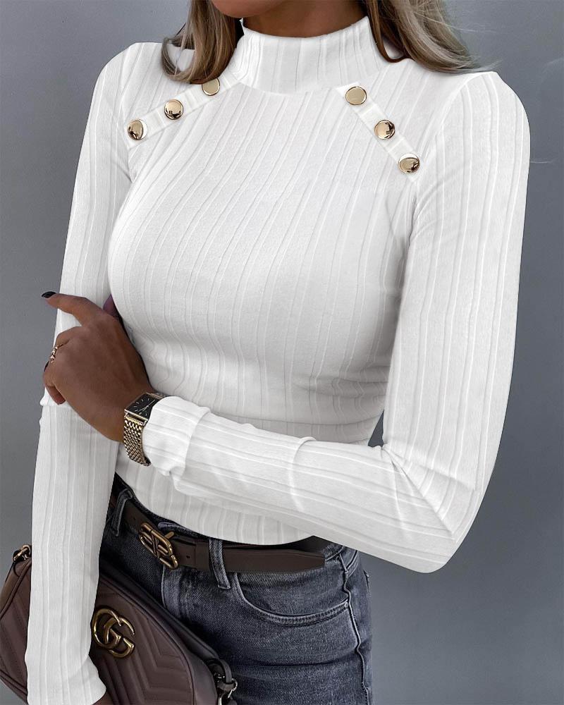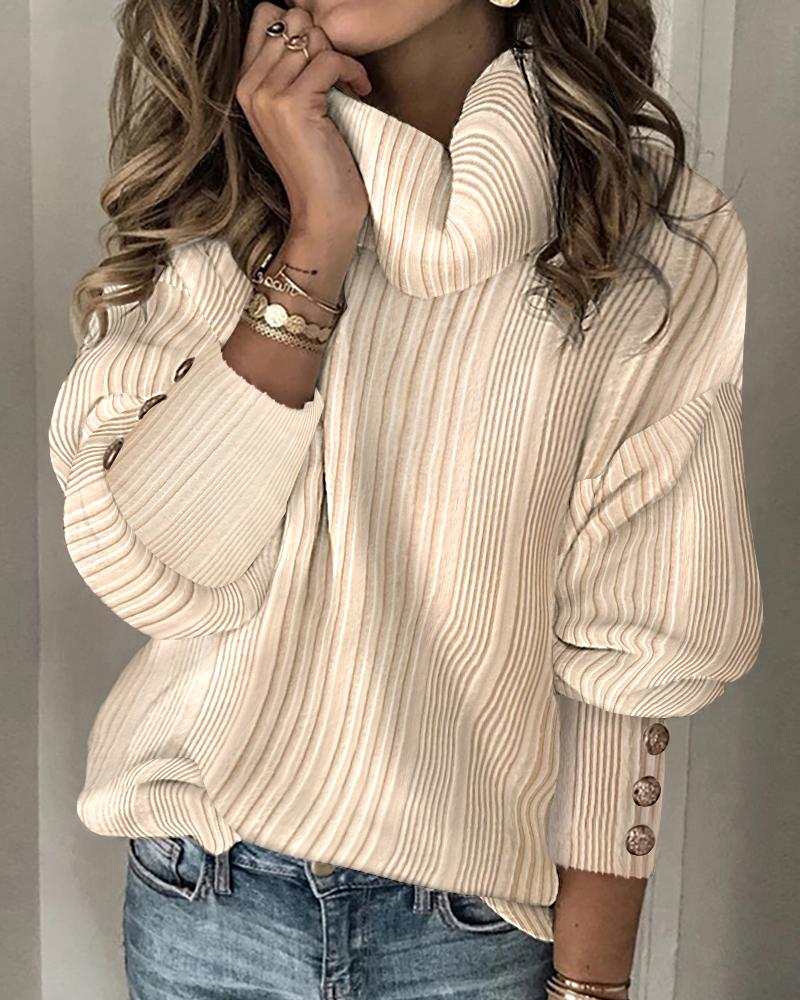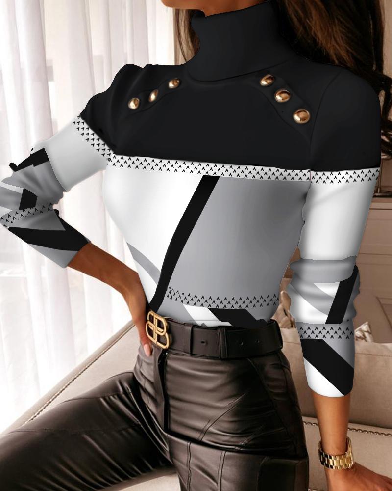 Turtleneck Button Decor Lantern Sleeve Top |