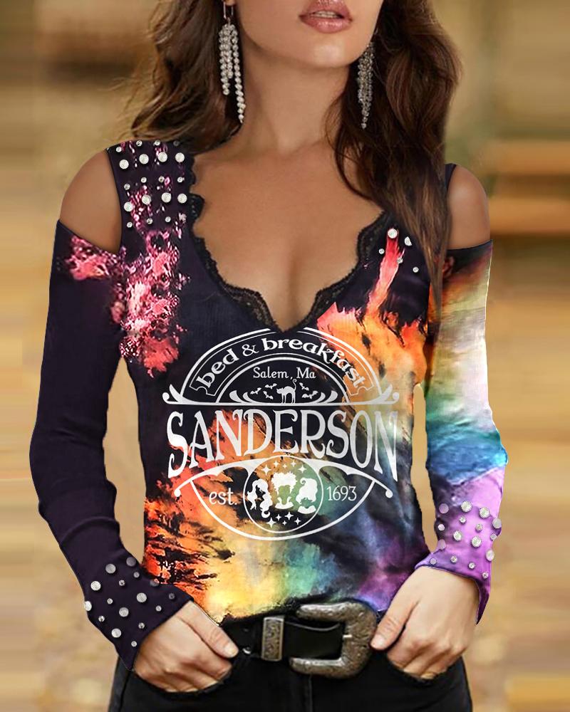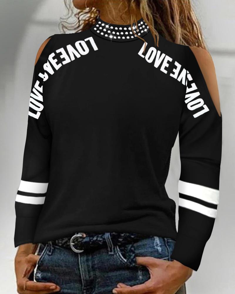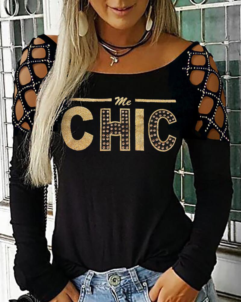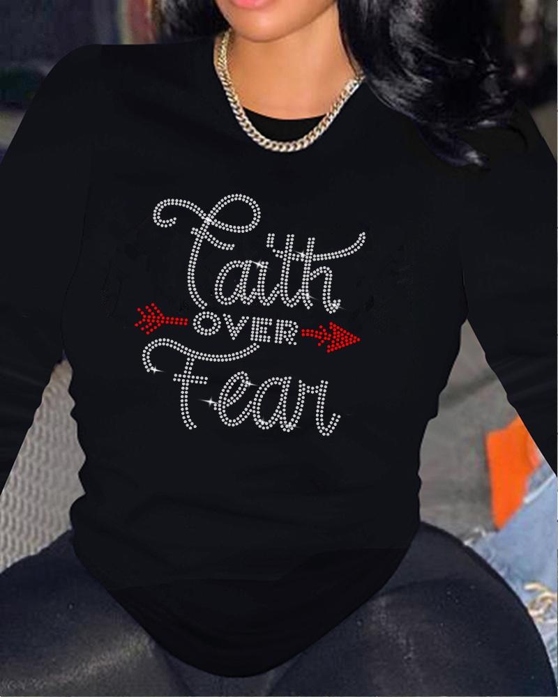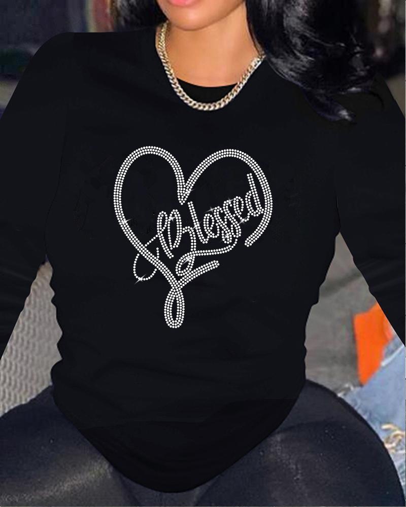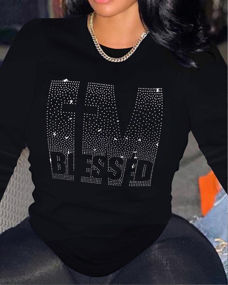 Rhinestone Letter Pattern Long Sleeve Casual Top |