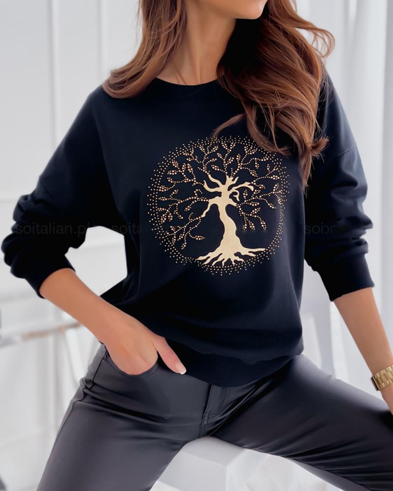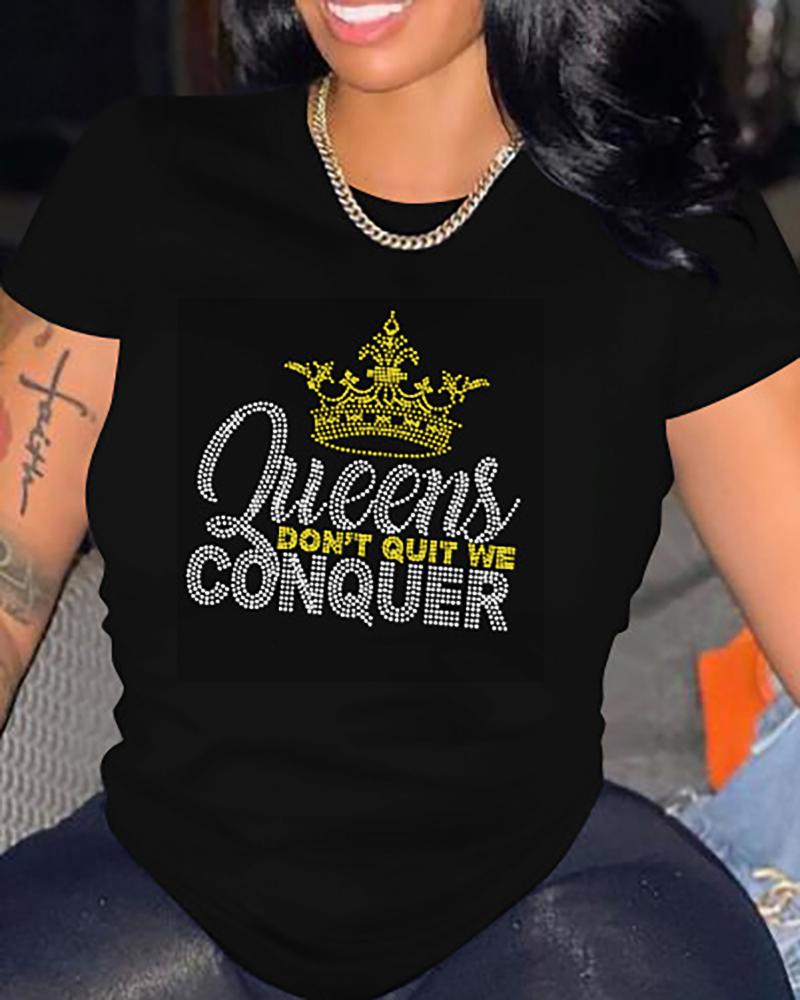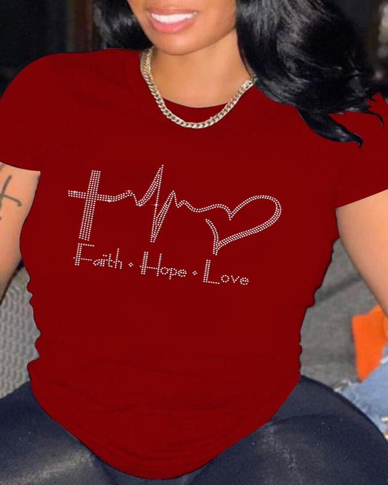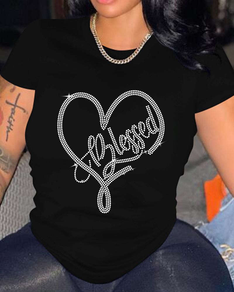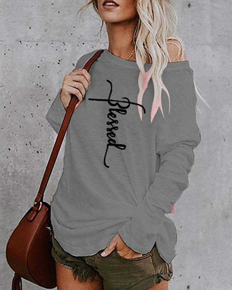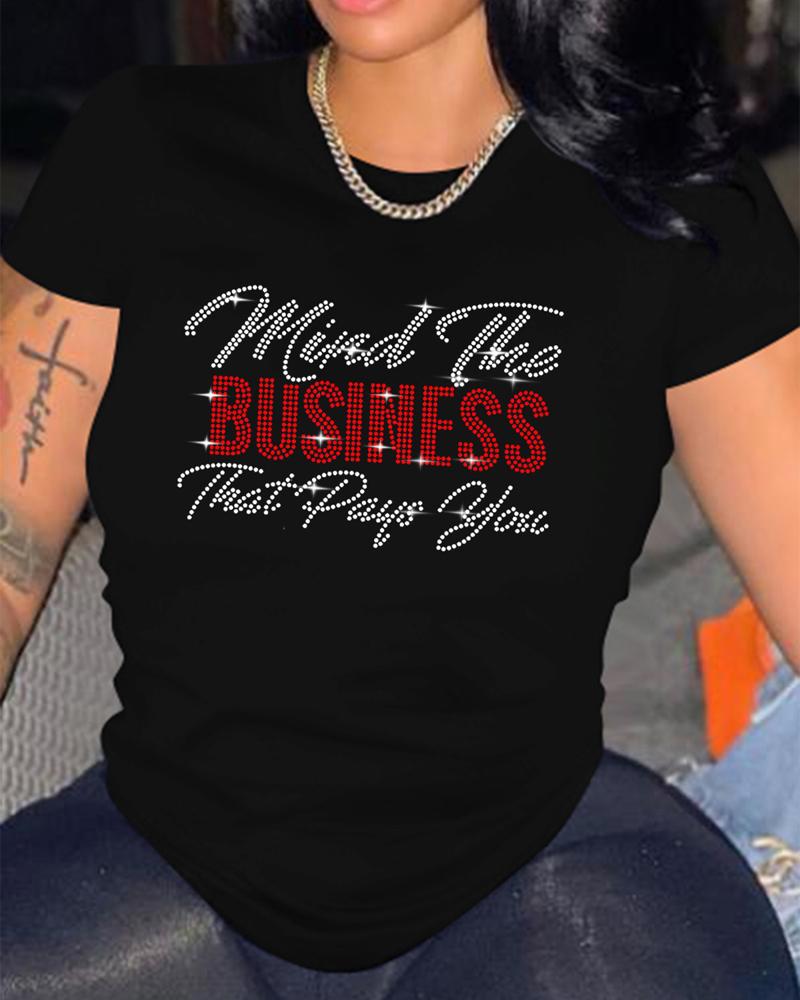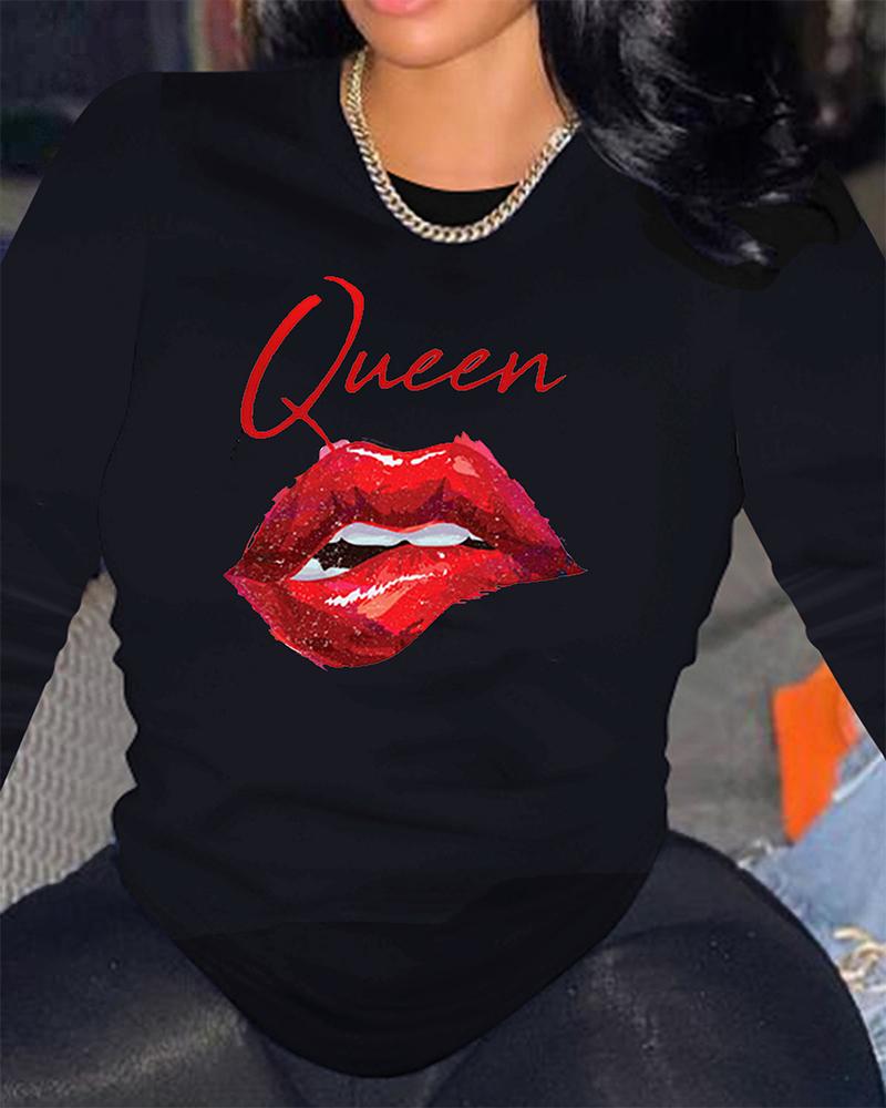 Rhinestone Letter Pattern Long Sleeve Casual Top |