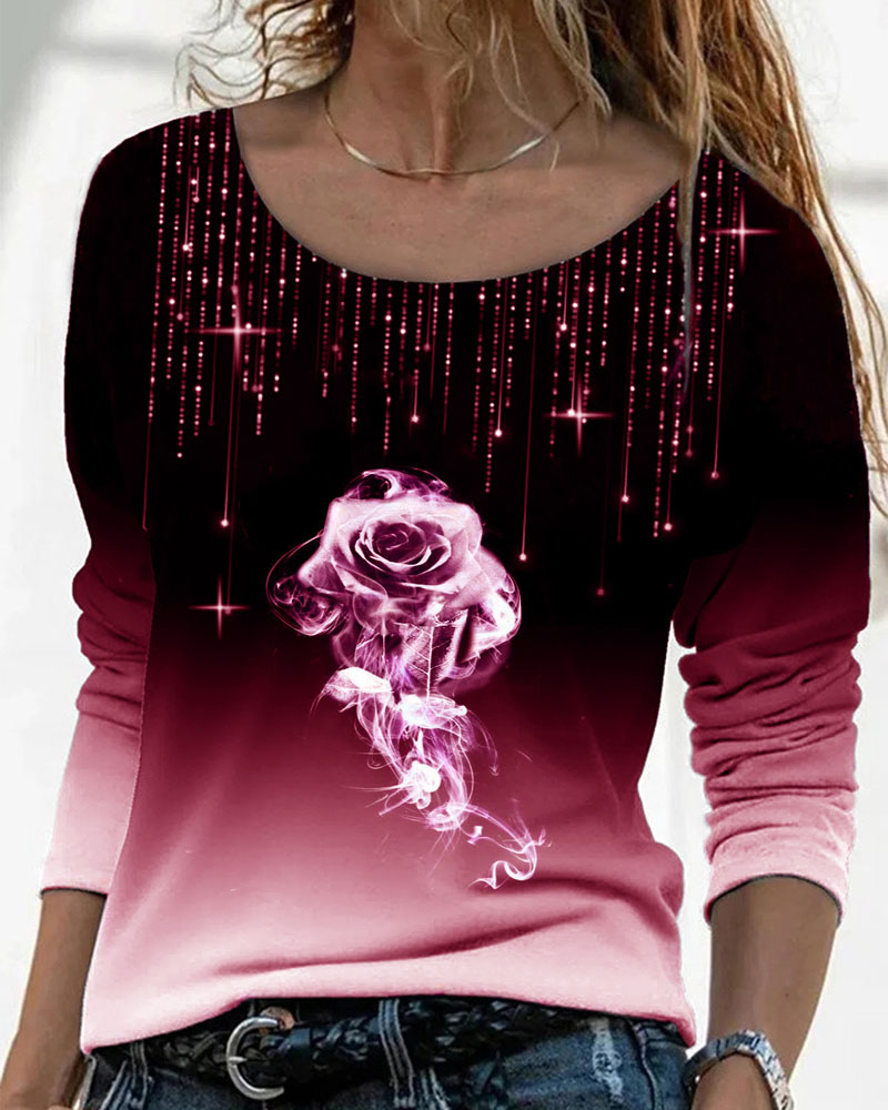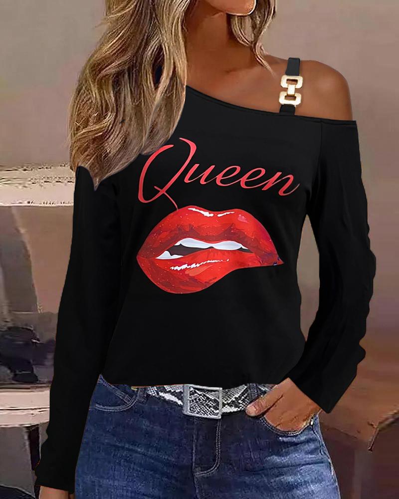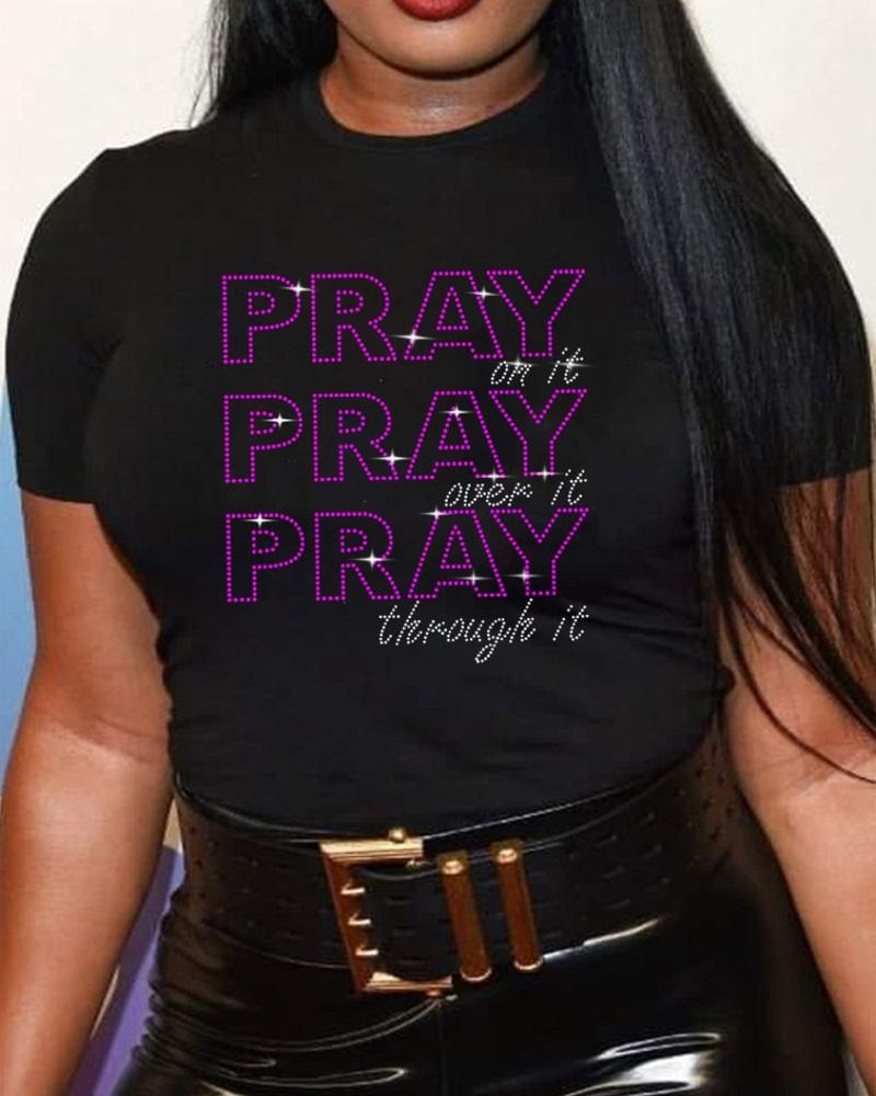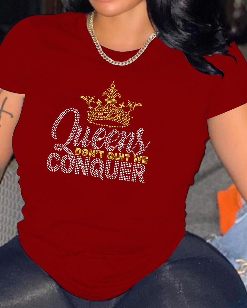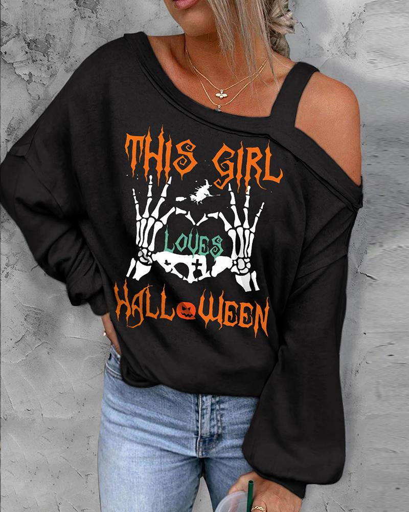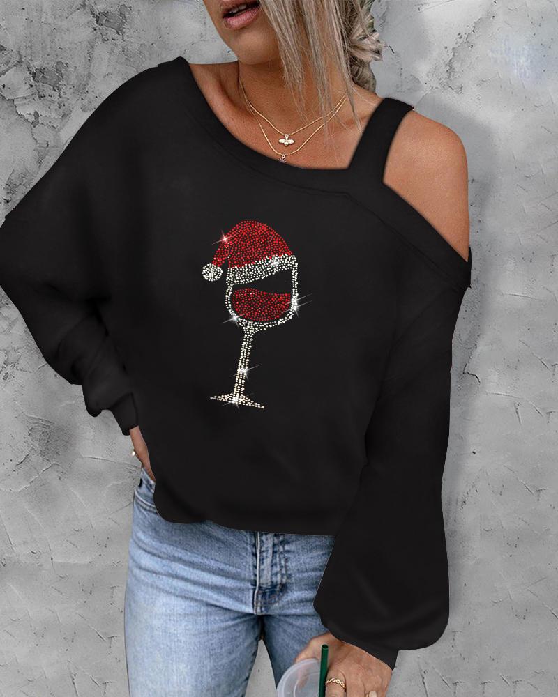 Rhinestone Letter Pattern Long Sleeve Casual Top |