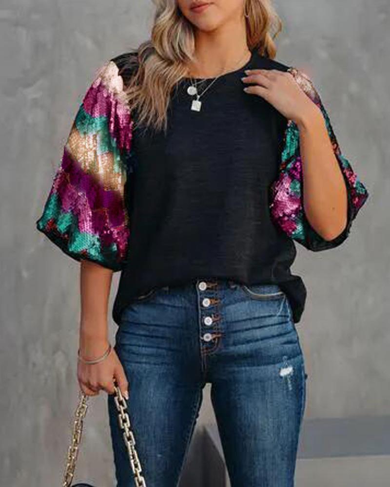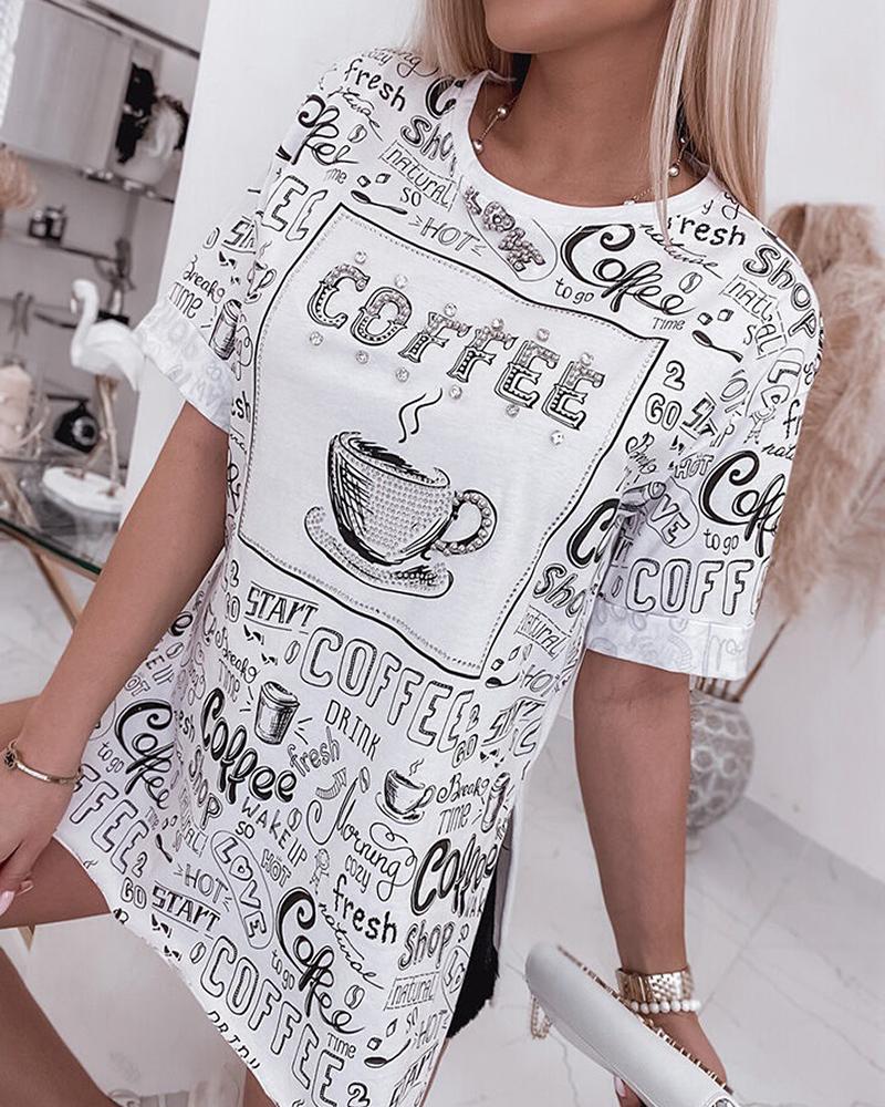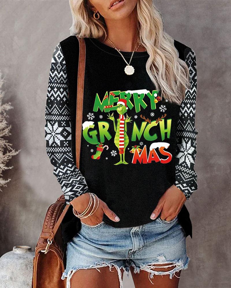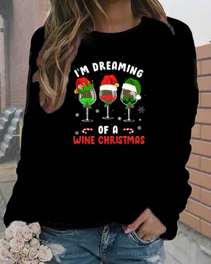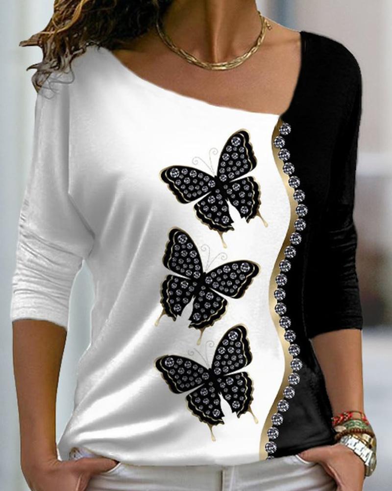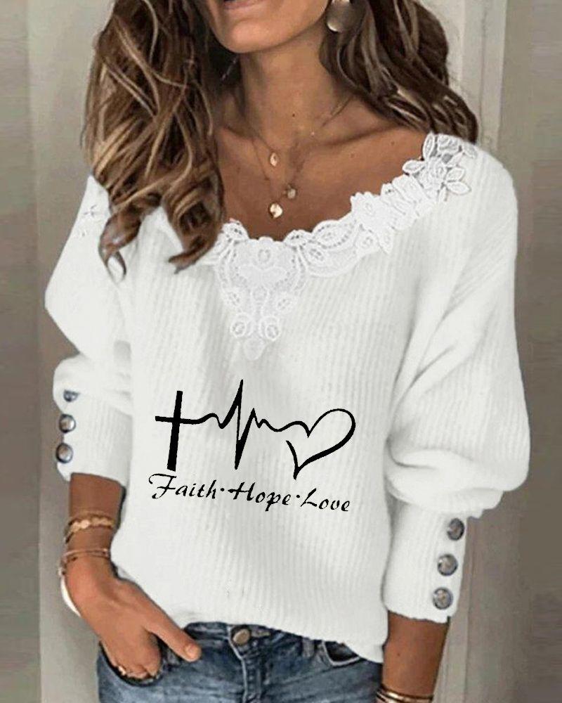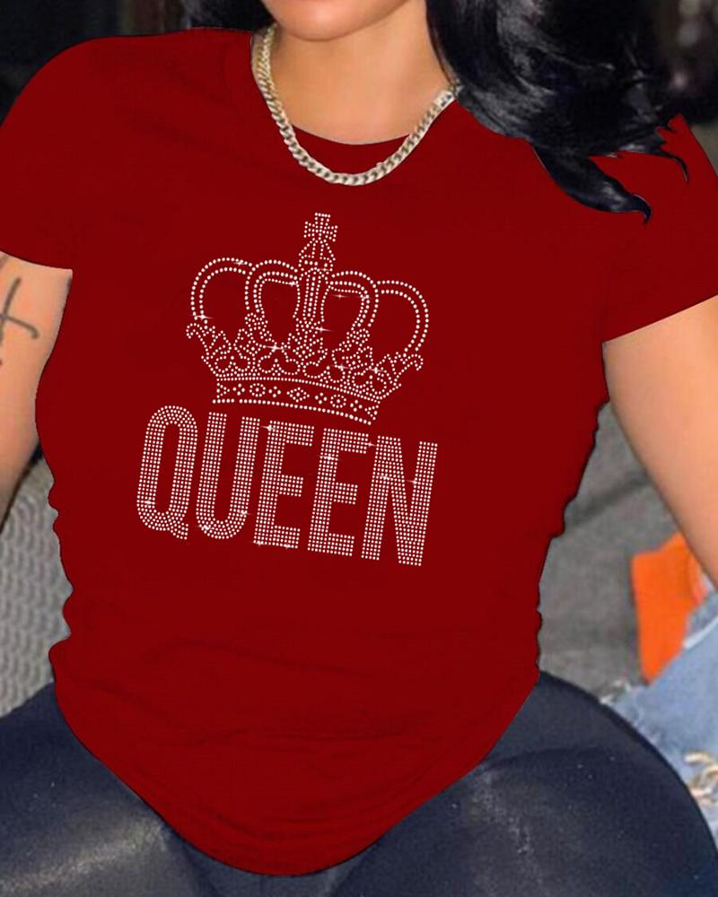 Rhinestone Letter Pattern Long Sleeve Casual Top |