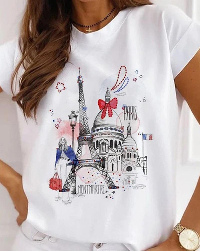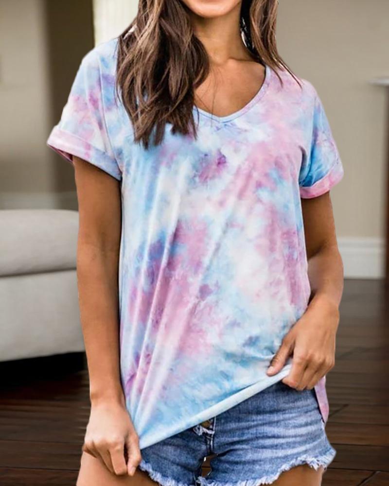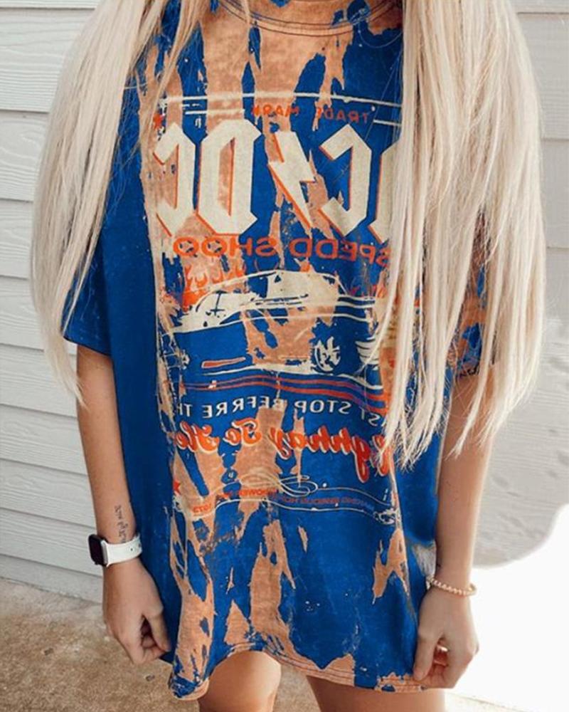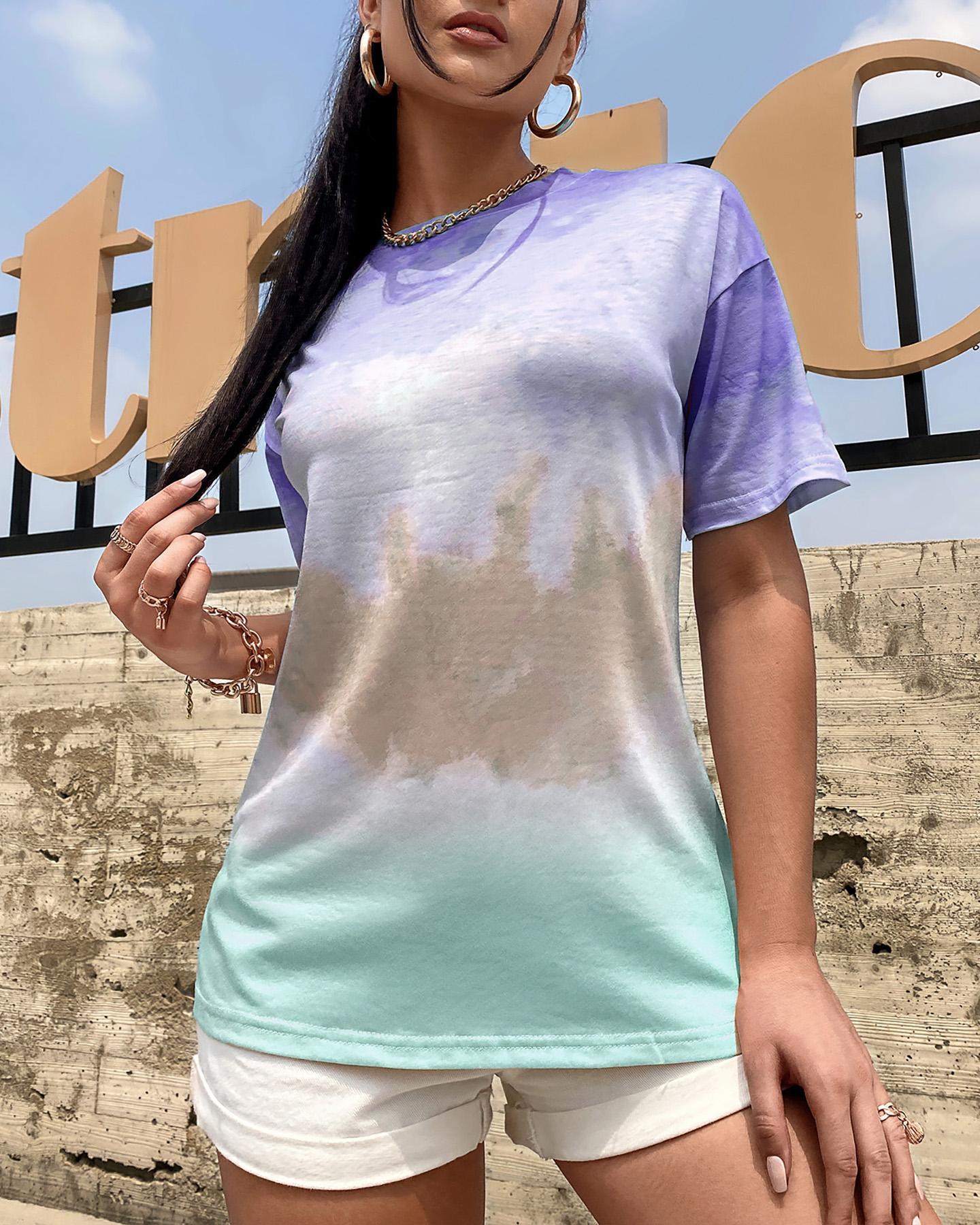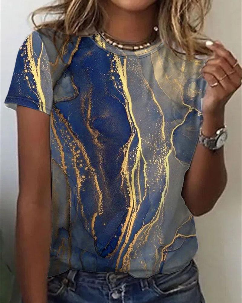 Marble Print Short Sleeve Casual T-shirt |