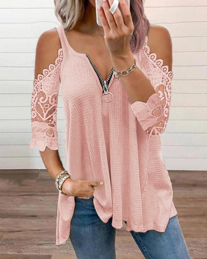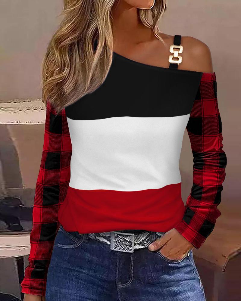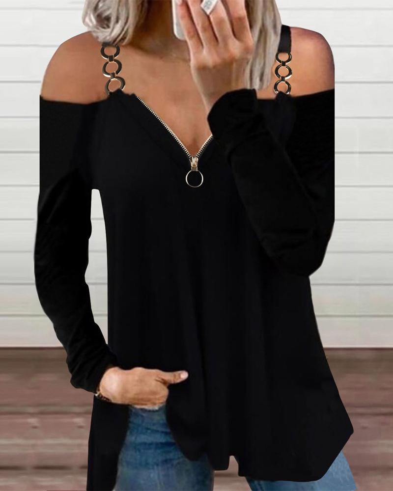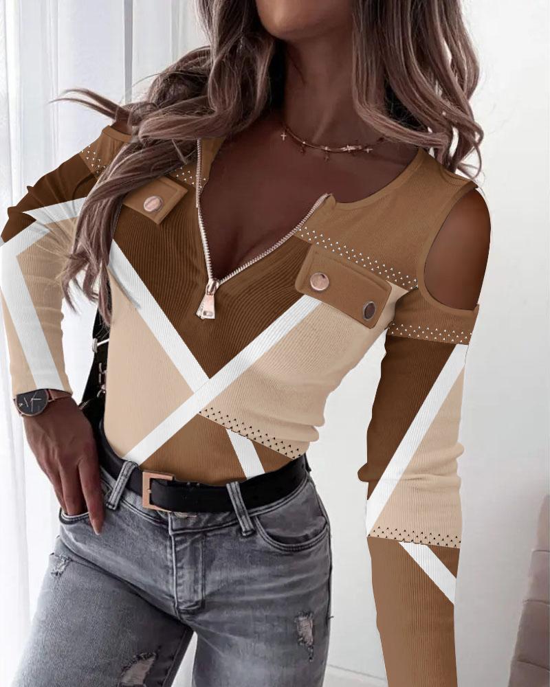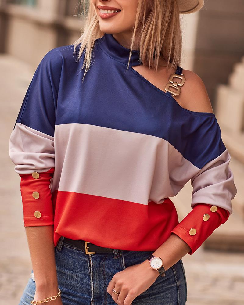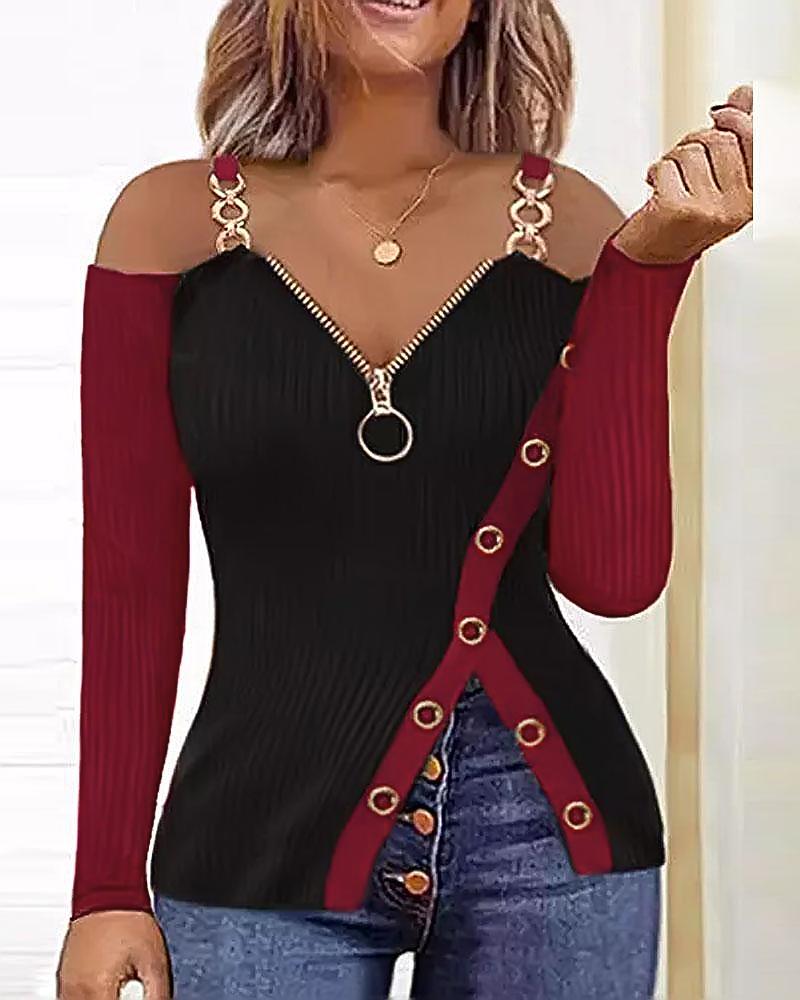 Colorblock Metal Decor Cold Shoulder Top |