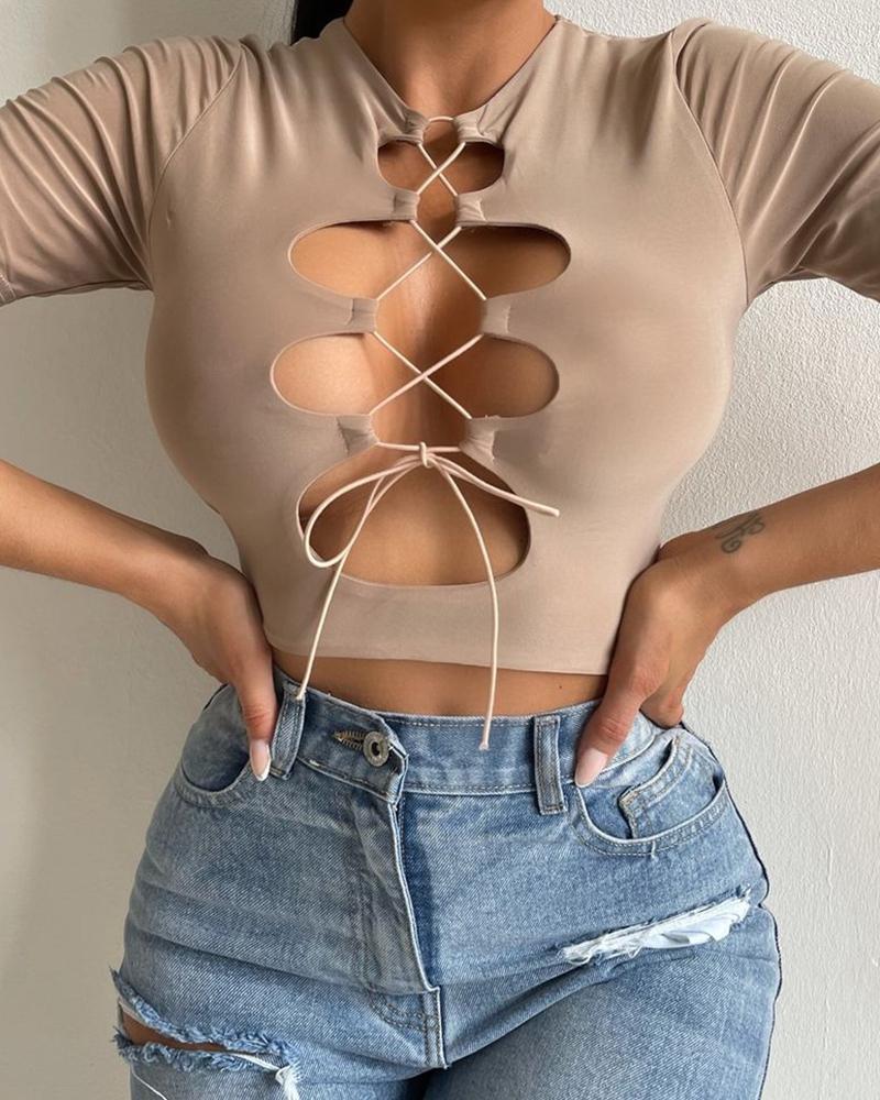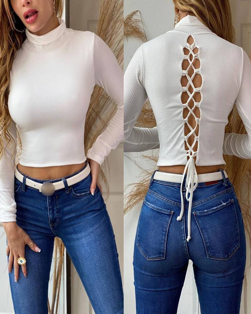Crisscross Cold Shoulder Long Sleeve Top |