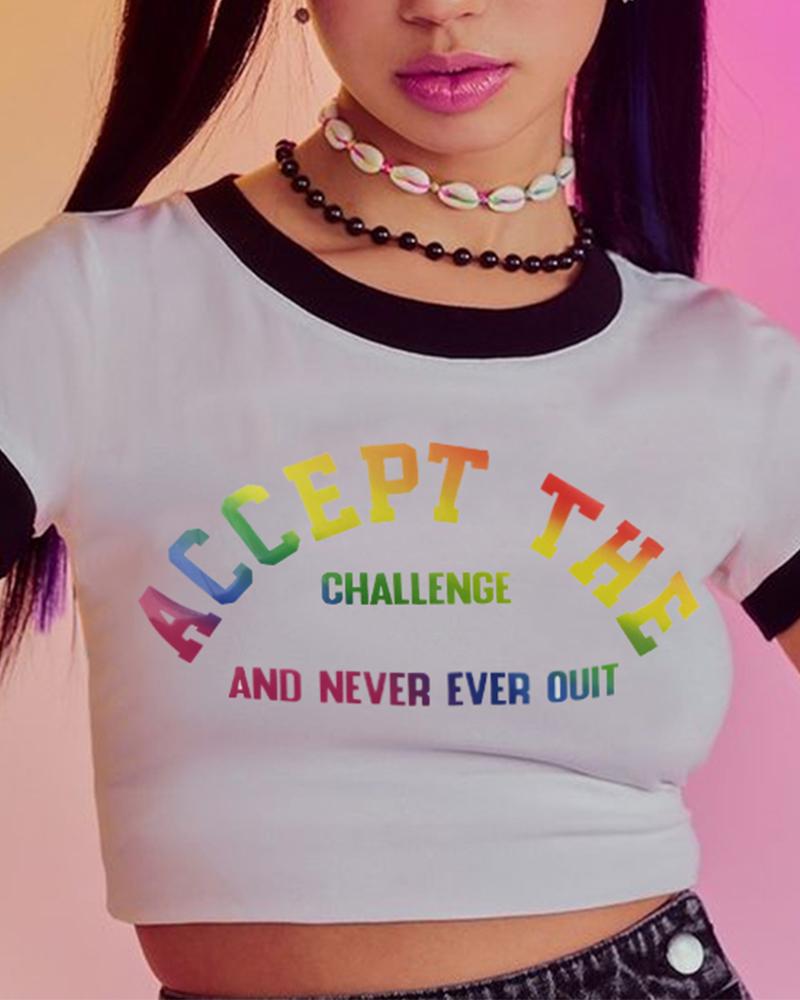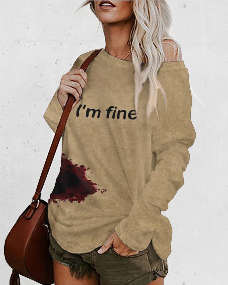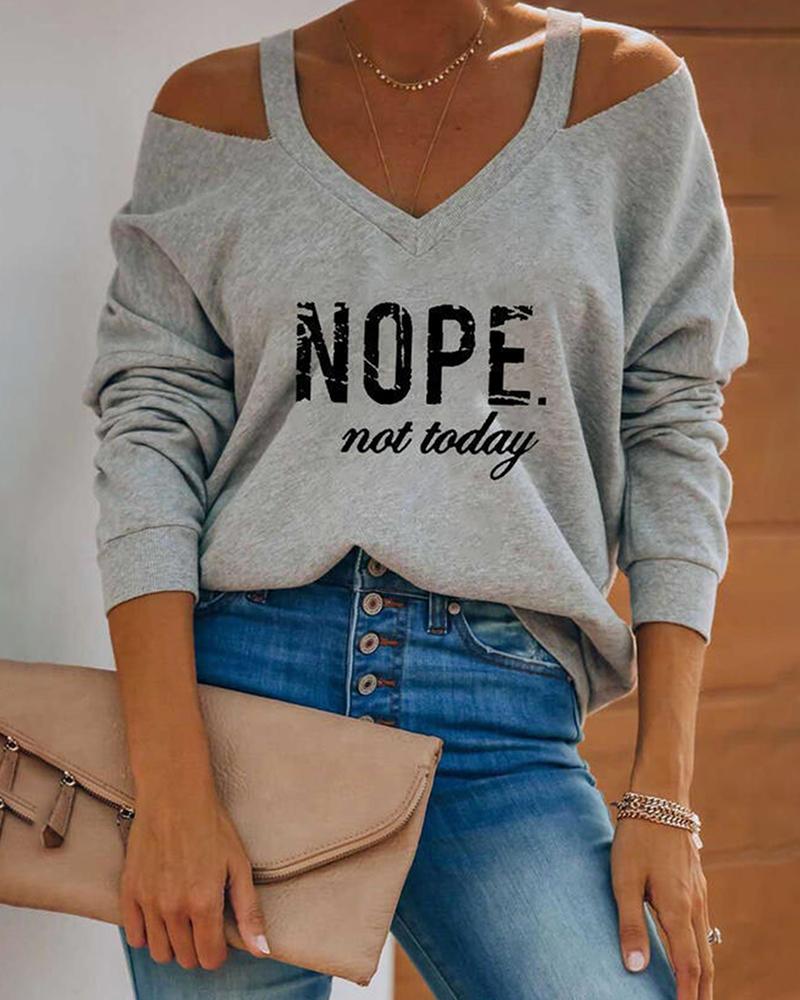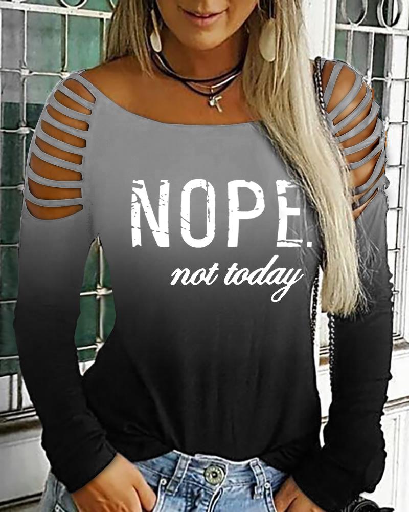 Letter Print Ombre Cold Shoulder Top |