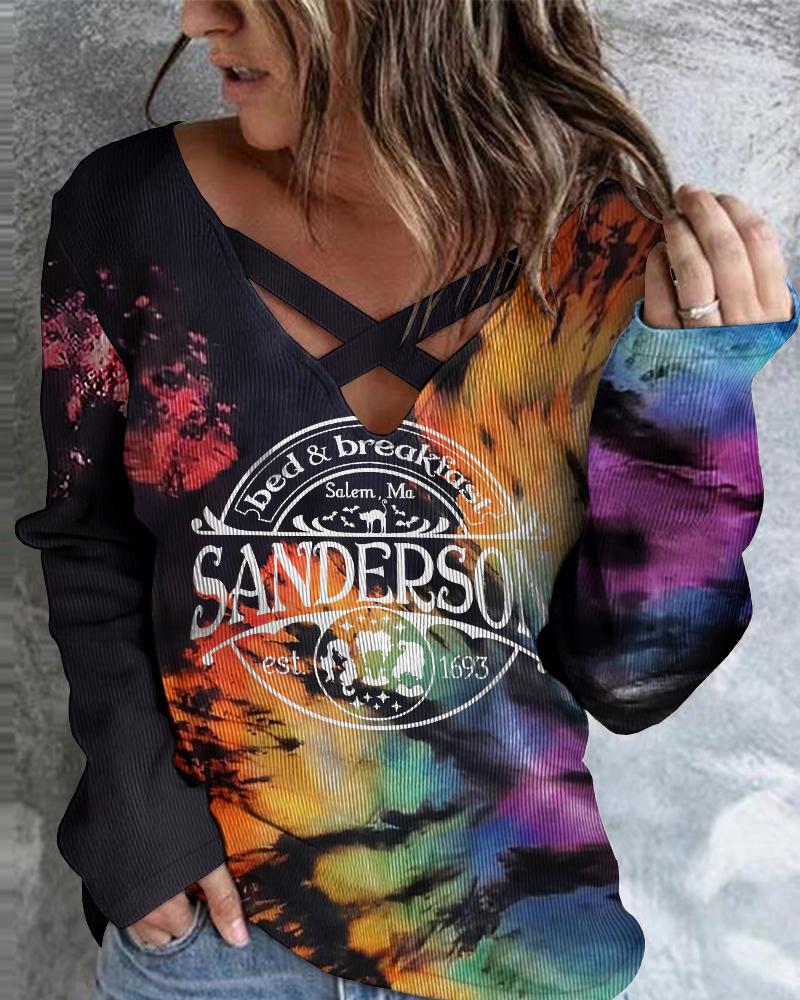 Letter Embroidery Crisscross Long Sleeve Top |