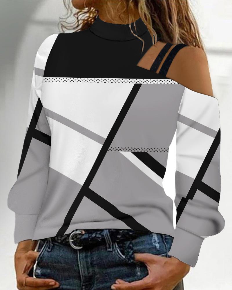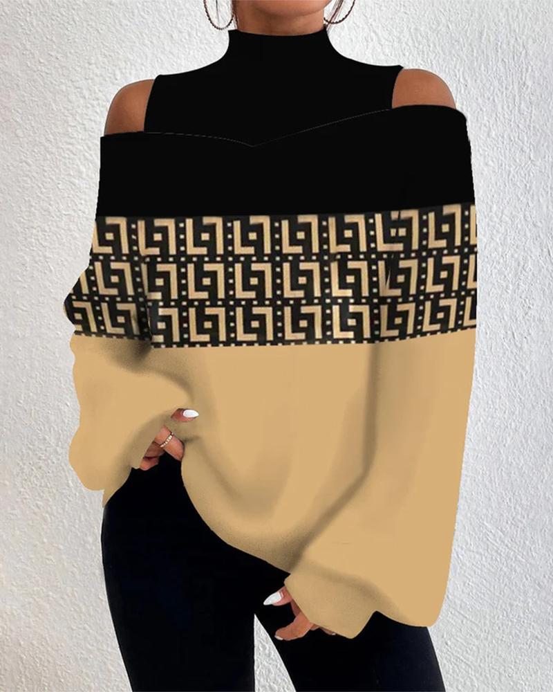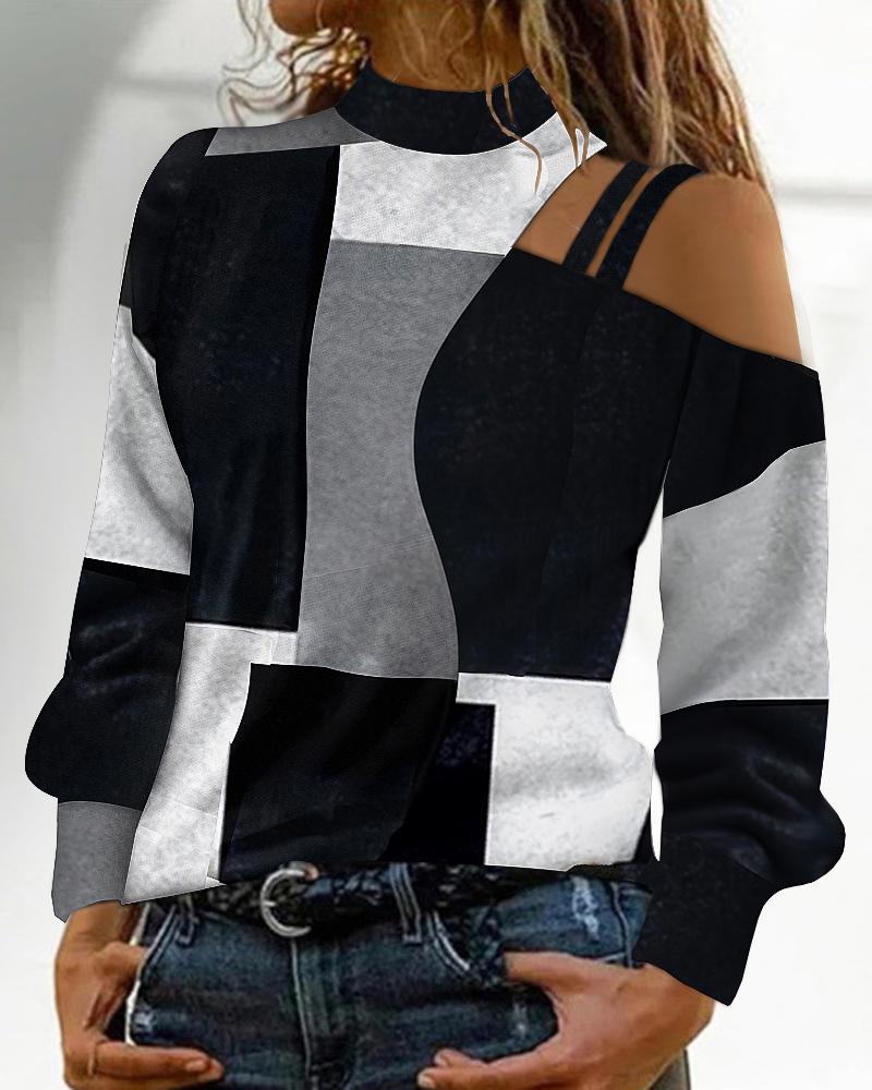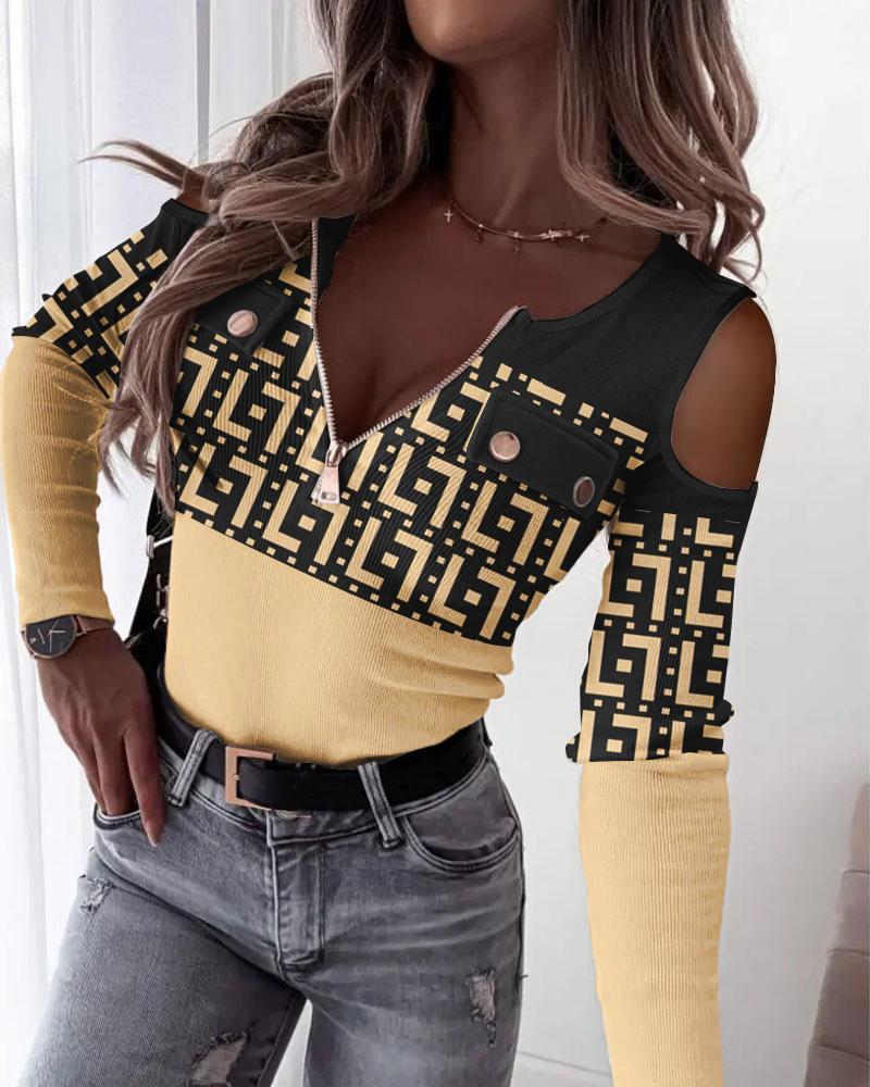 Geometric Print Cold Shoulder Top |