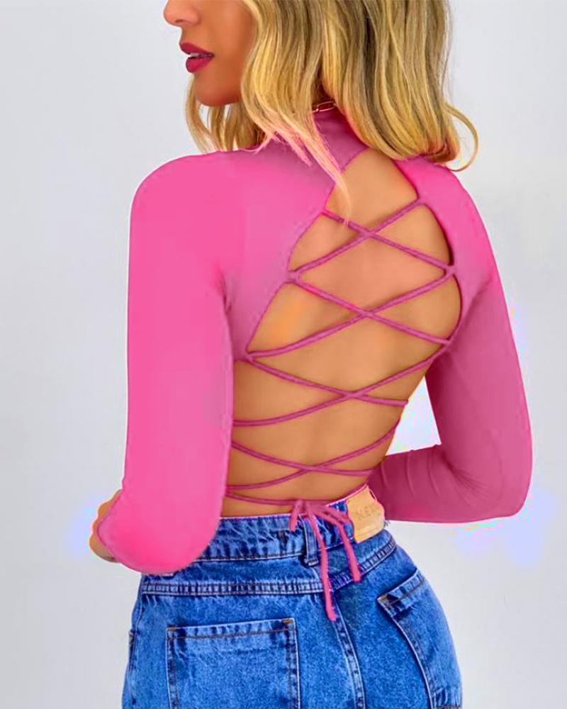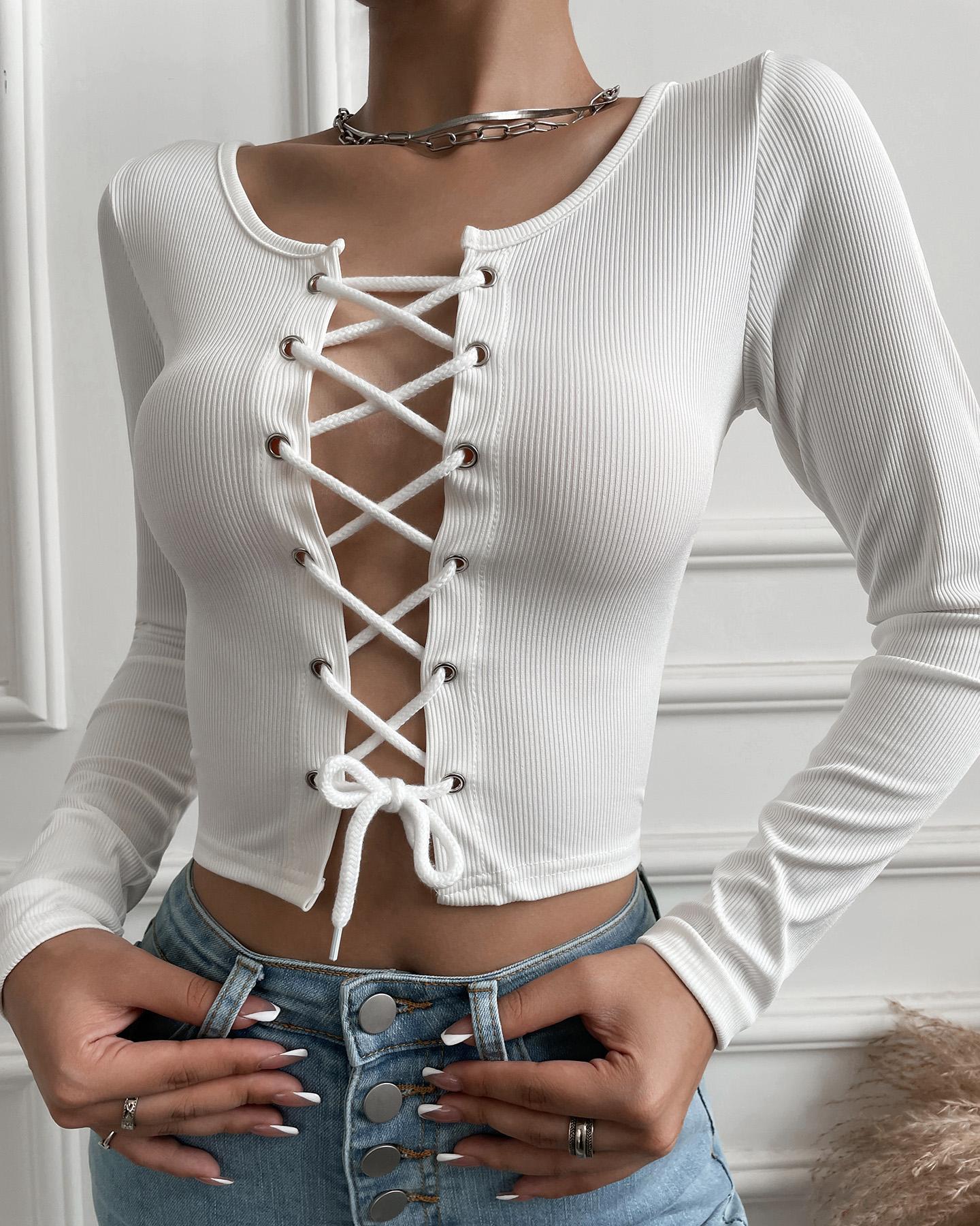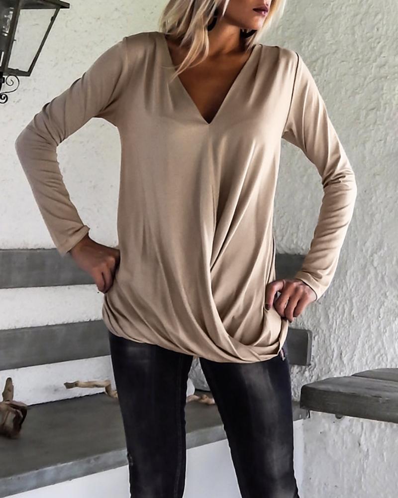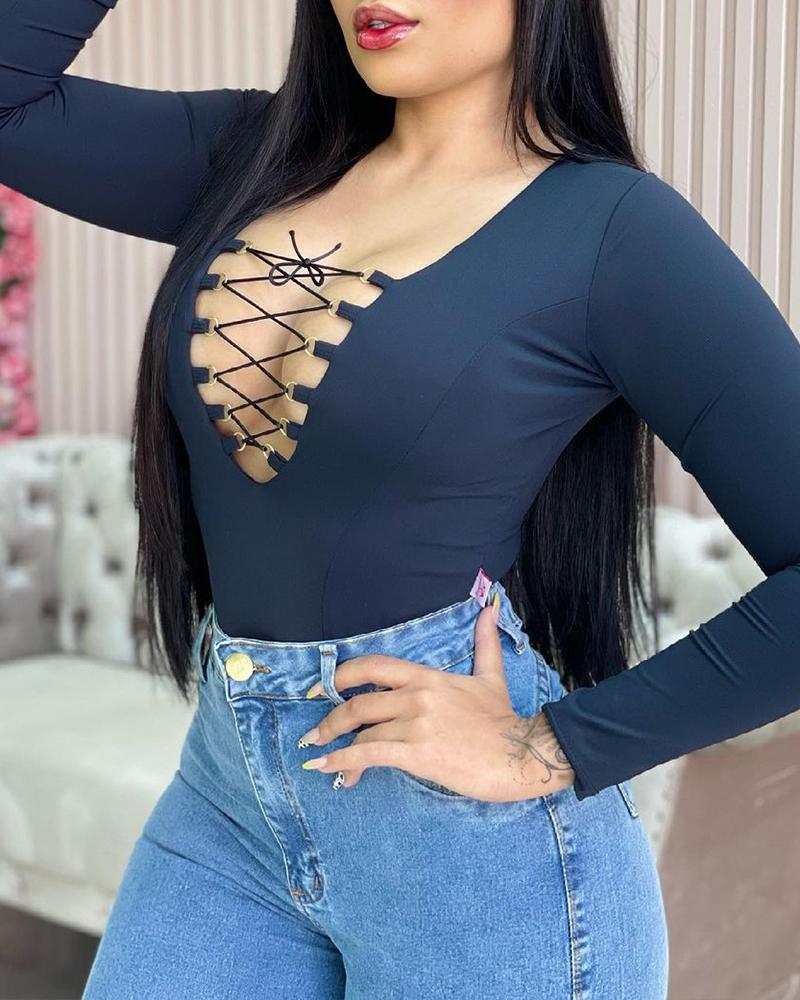 Crisscross Frontآ V-Neck Long Sleeve Top |