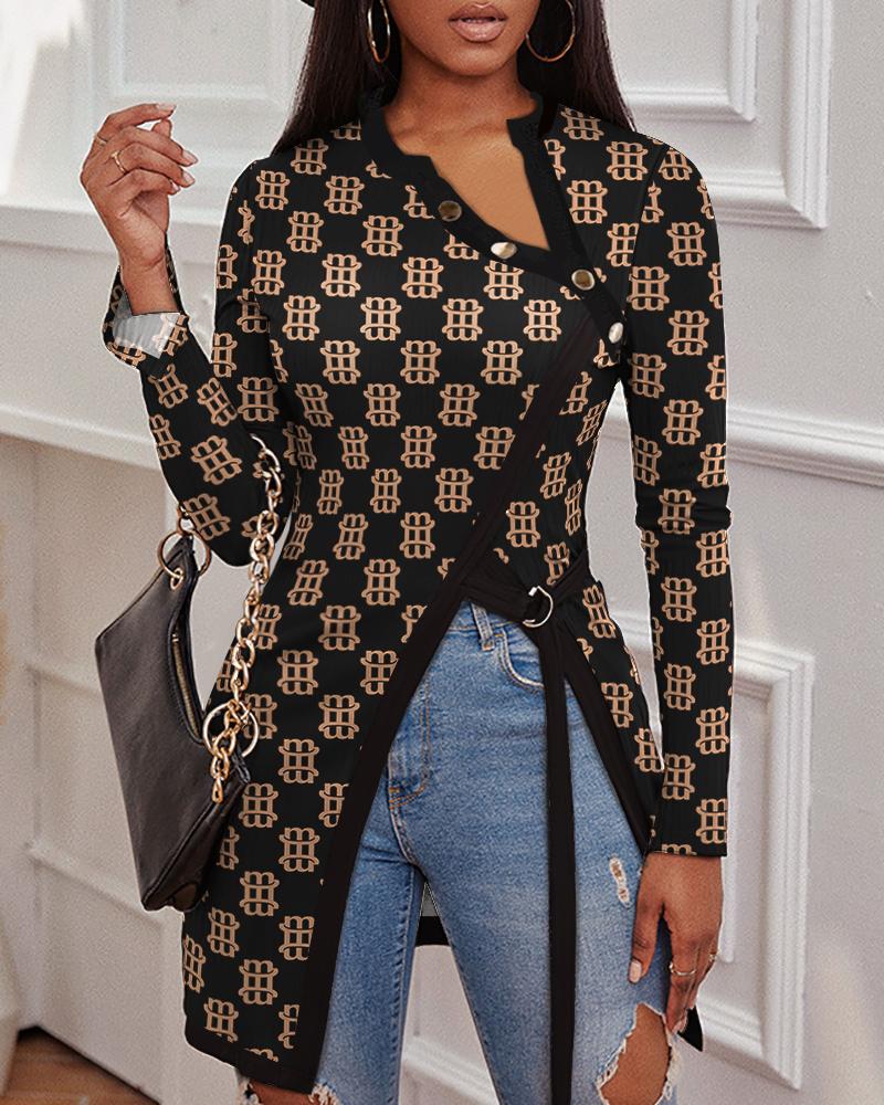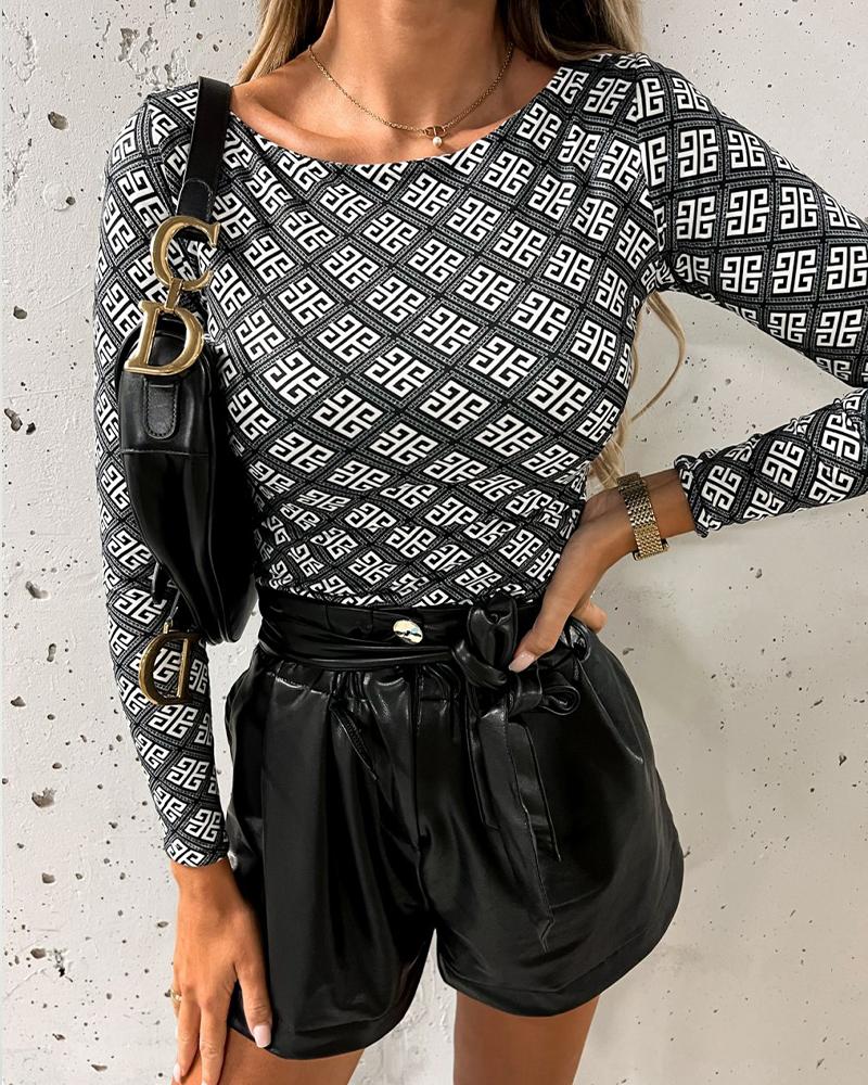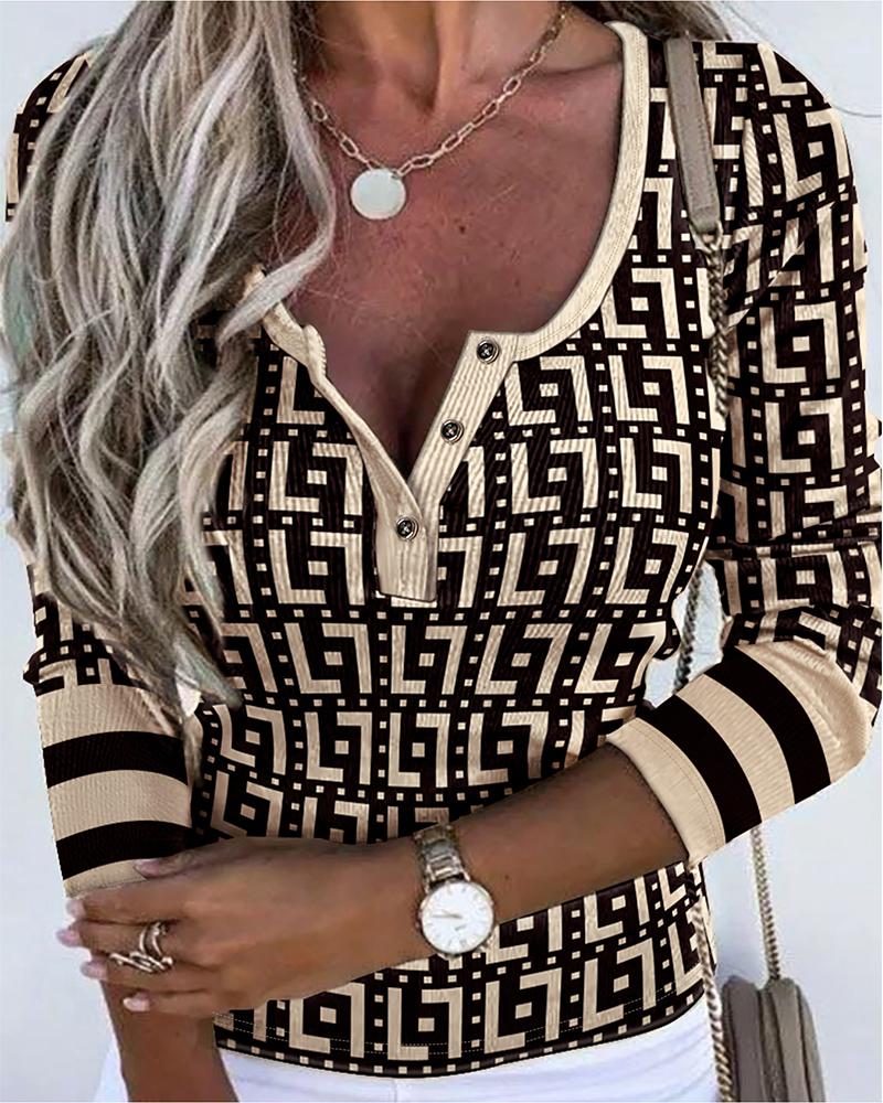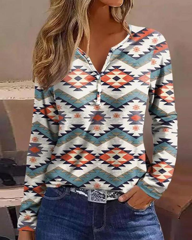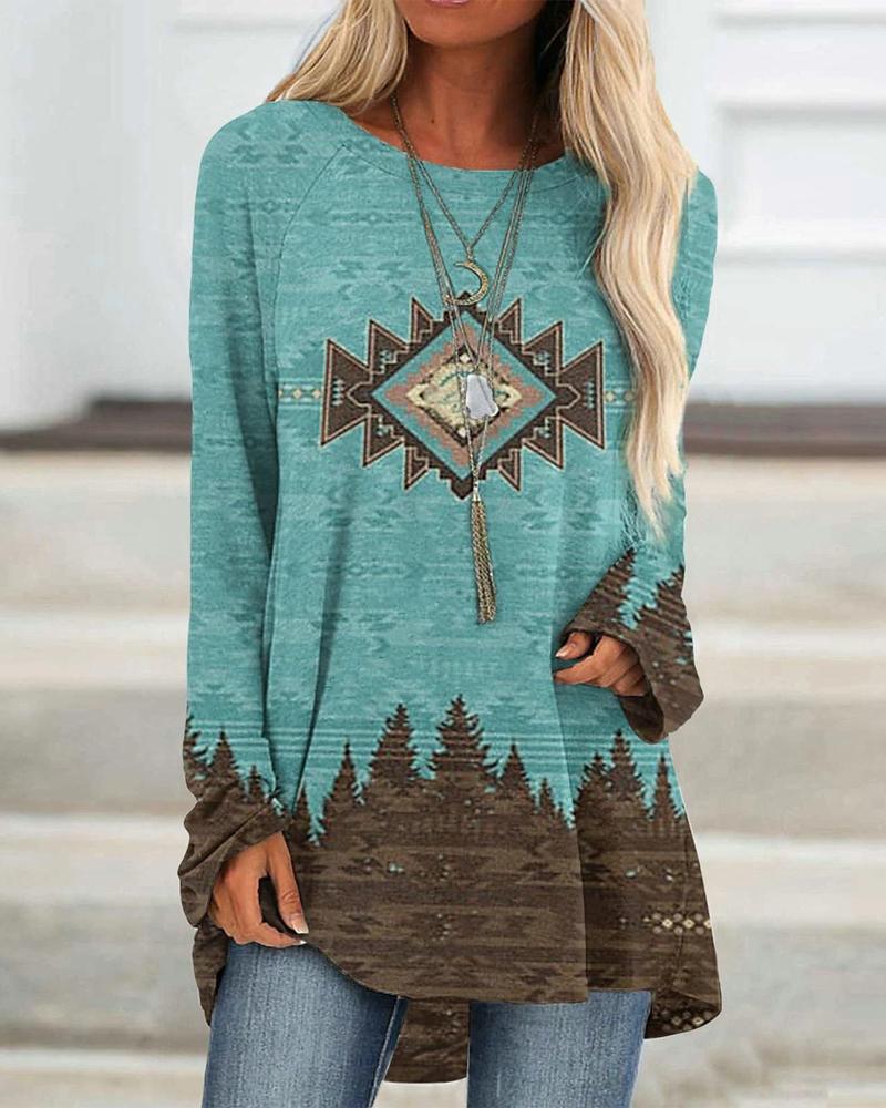 Aztec Geometric Letter Print Long Sleeve Top |