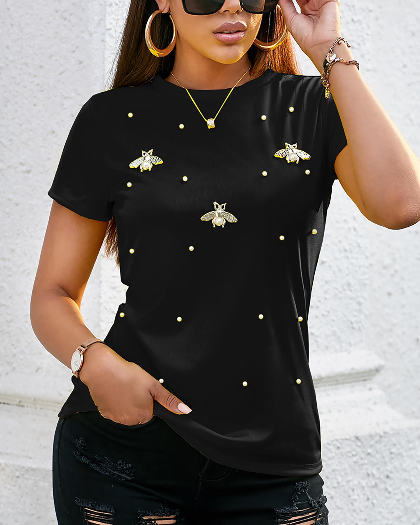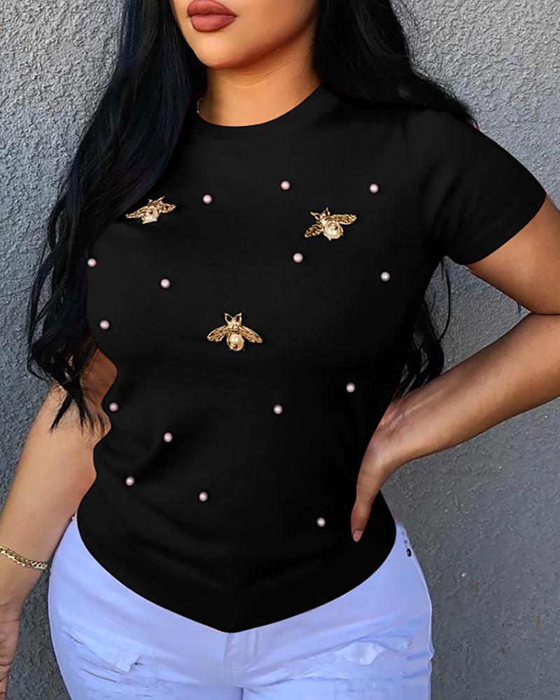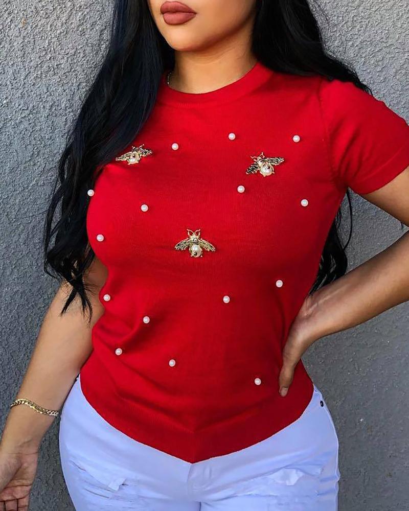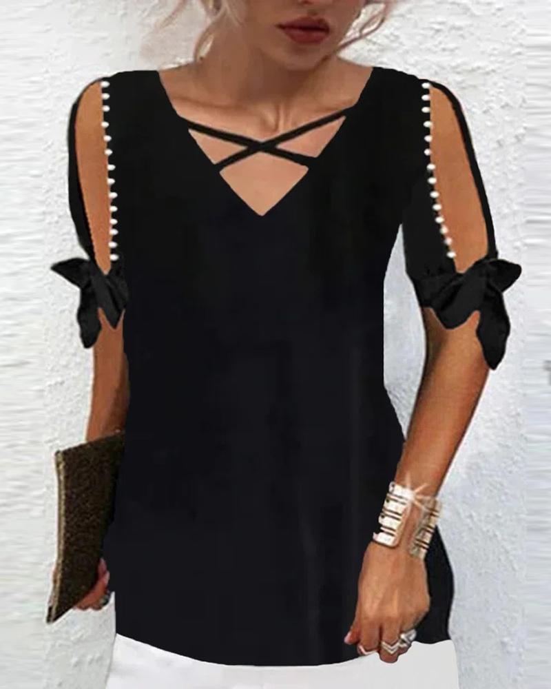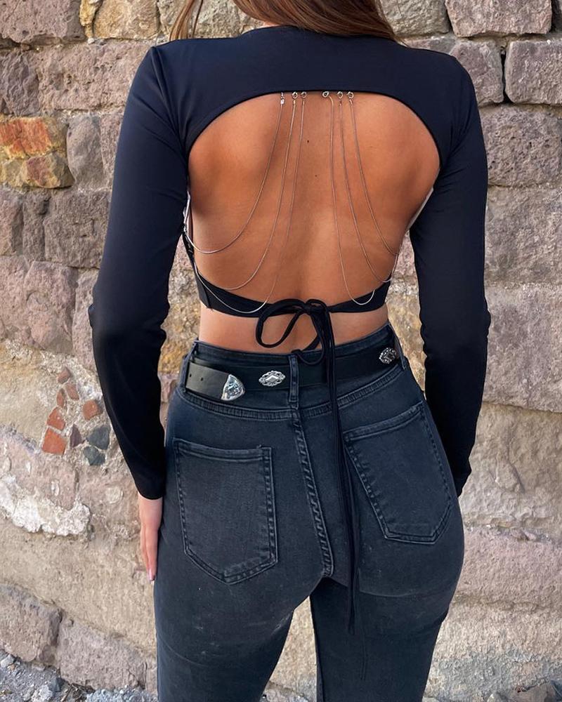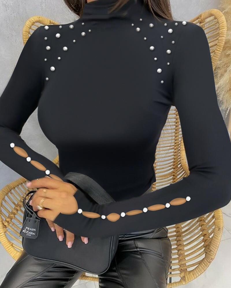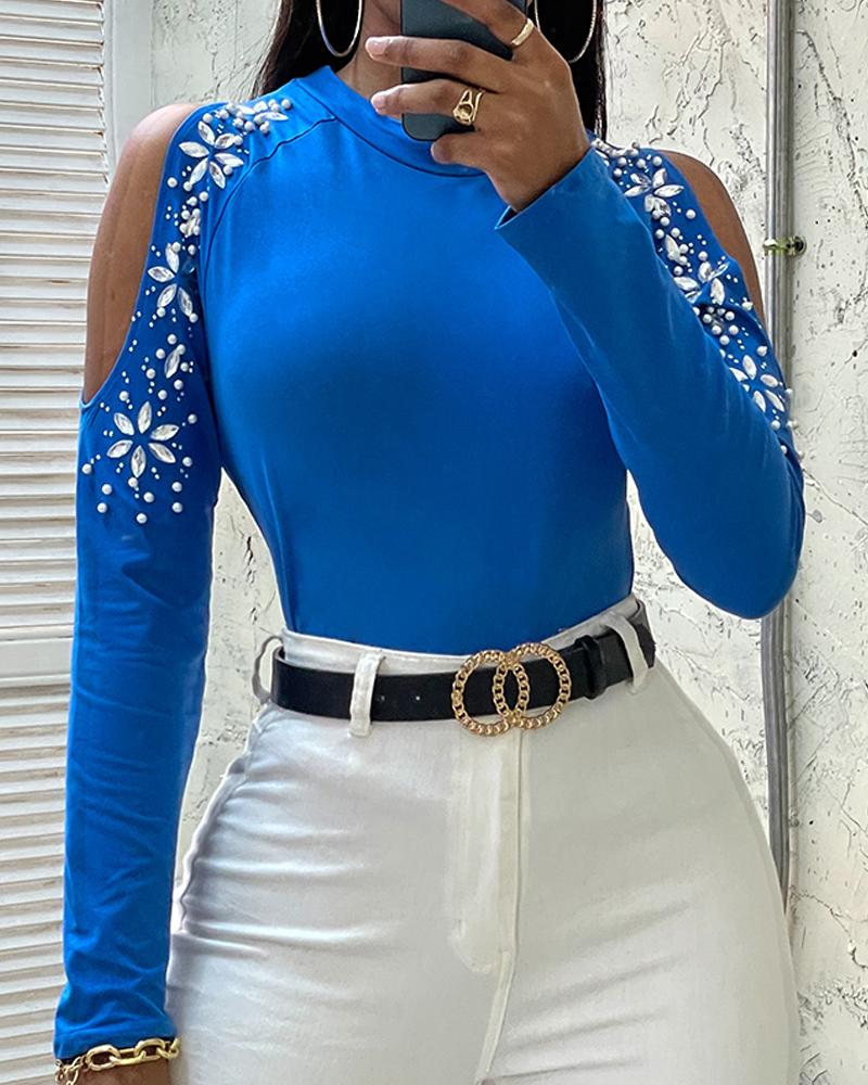 Beaded Decor Cutout Long Sleeve Top |