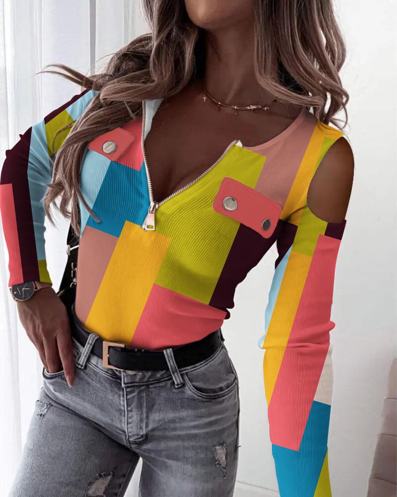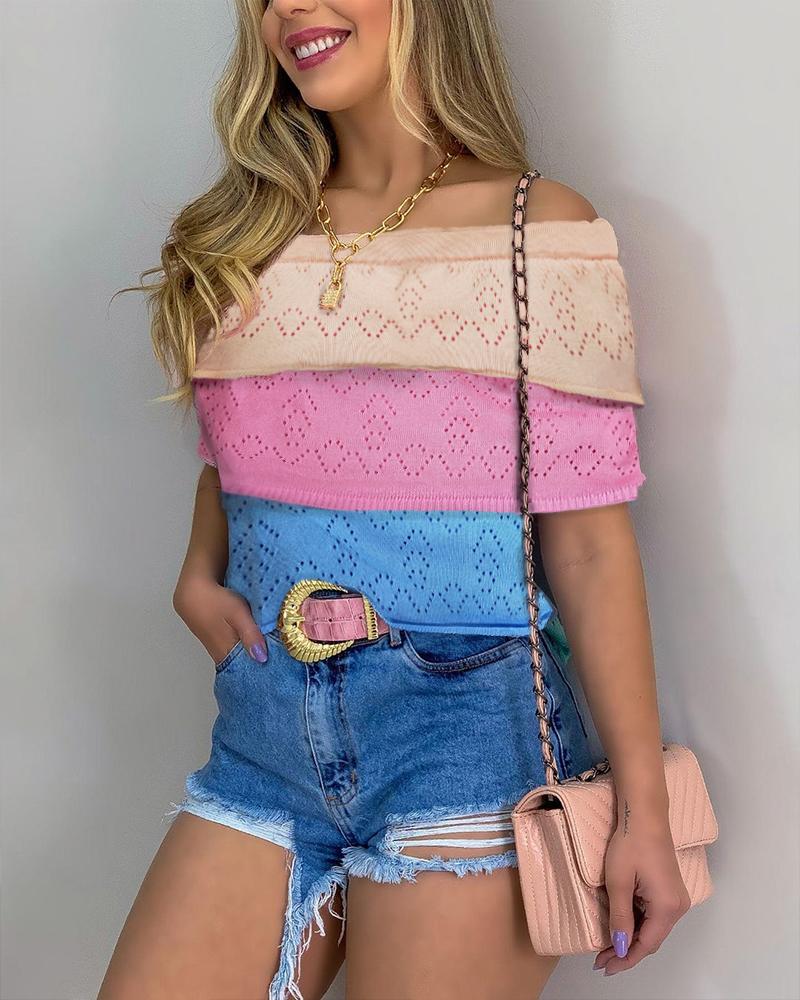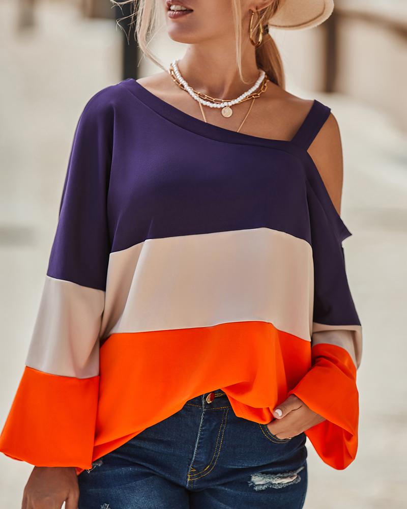 Colorblock Striped Print Cold Shoulder Top |