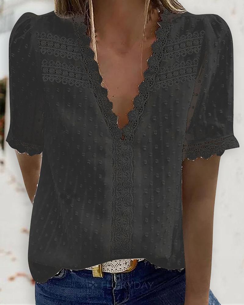 Contrast Lace Lantern Sleeve Ribbed Top |