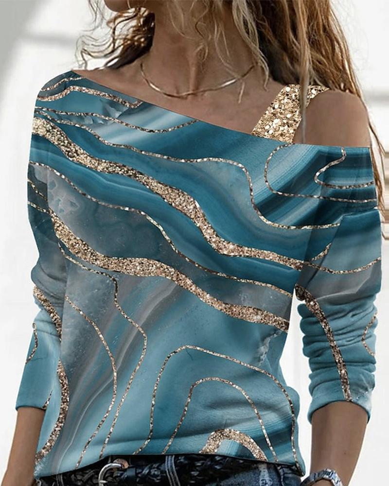 Marble Print Cold Shoulder Top |