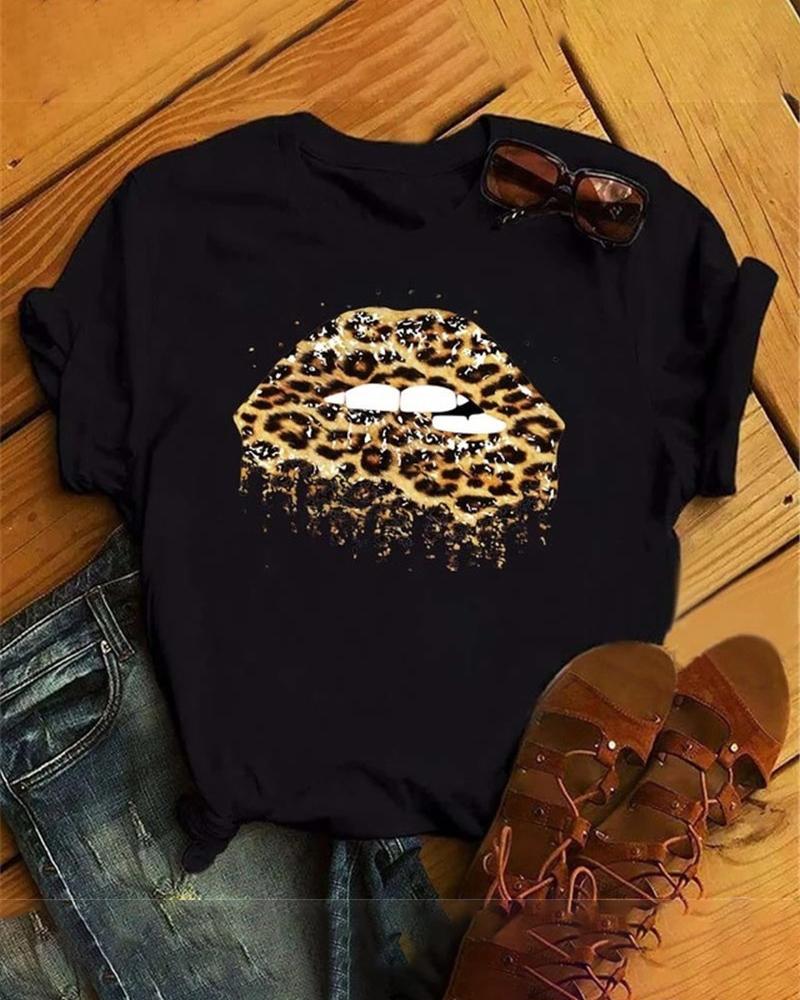 Short Sleeve Cheetah Print Ombre Top |