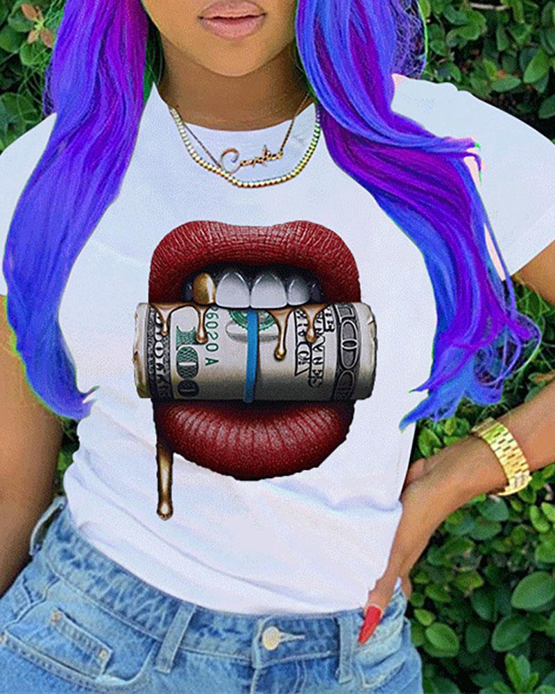 Sunflower Print Round Neck Casual T-shirt |
